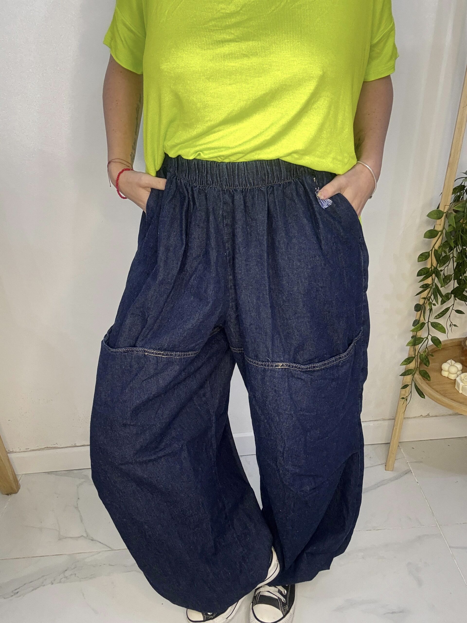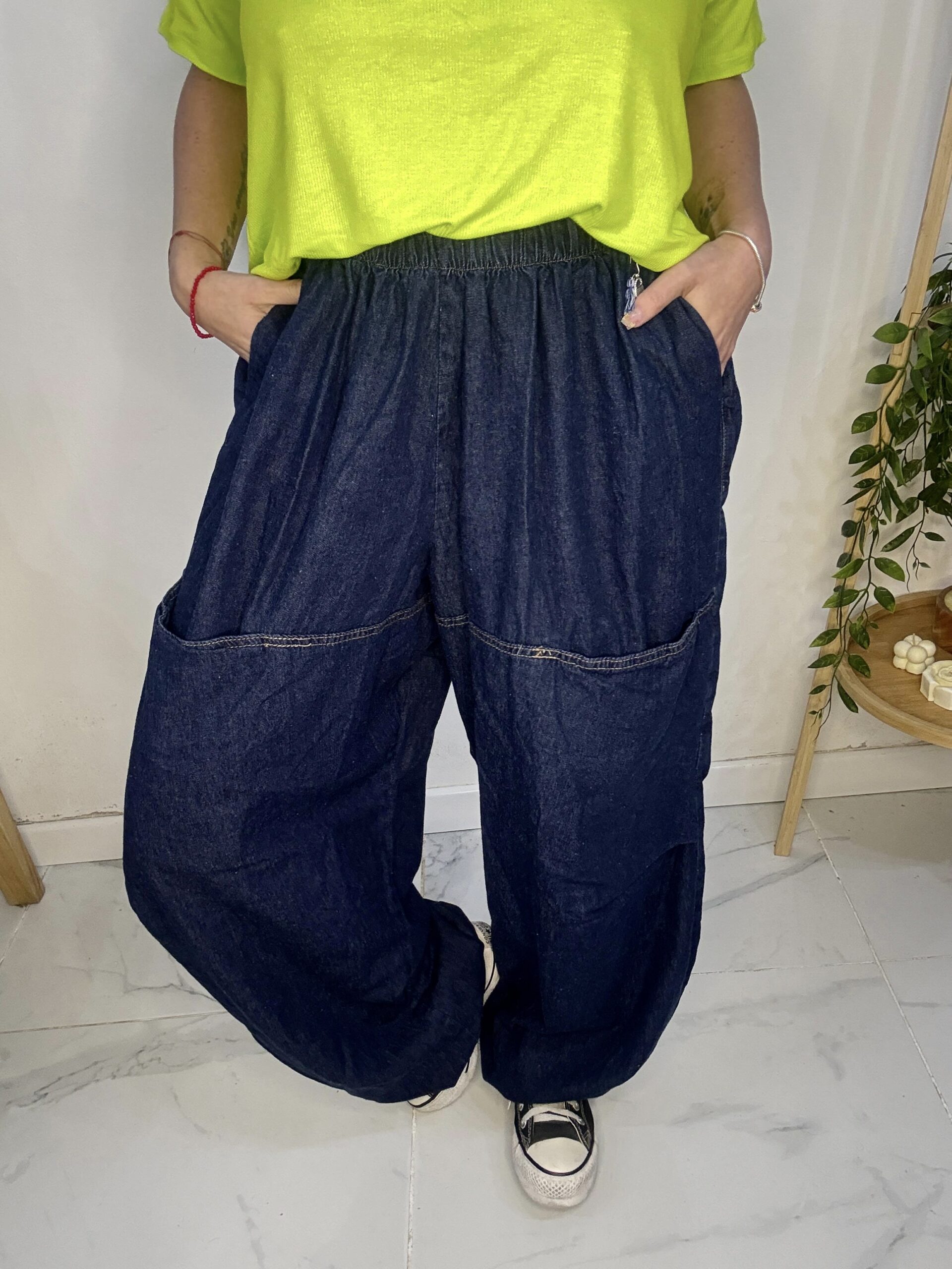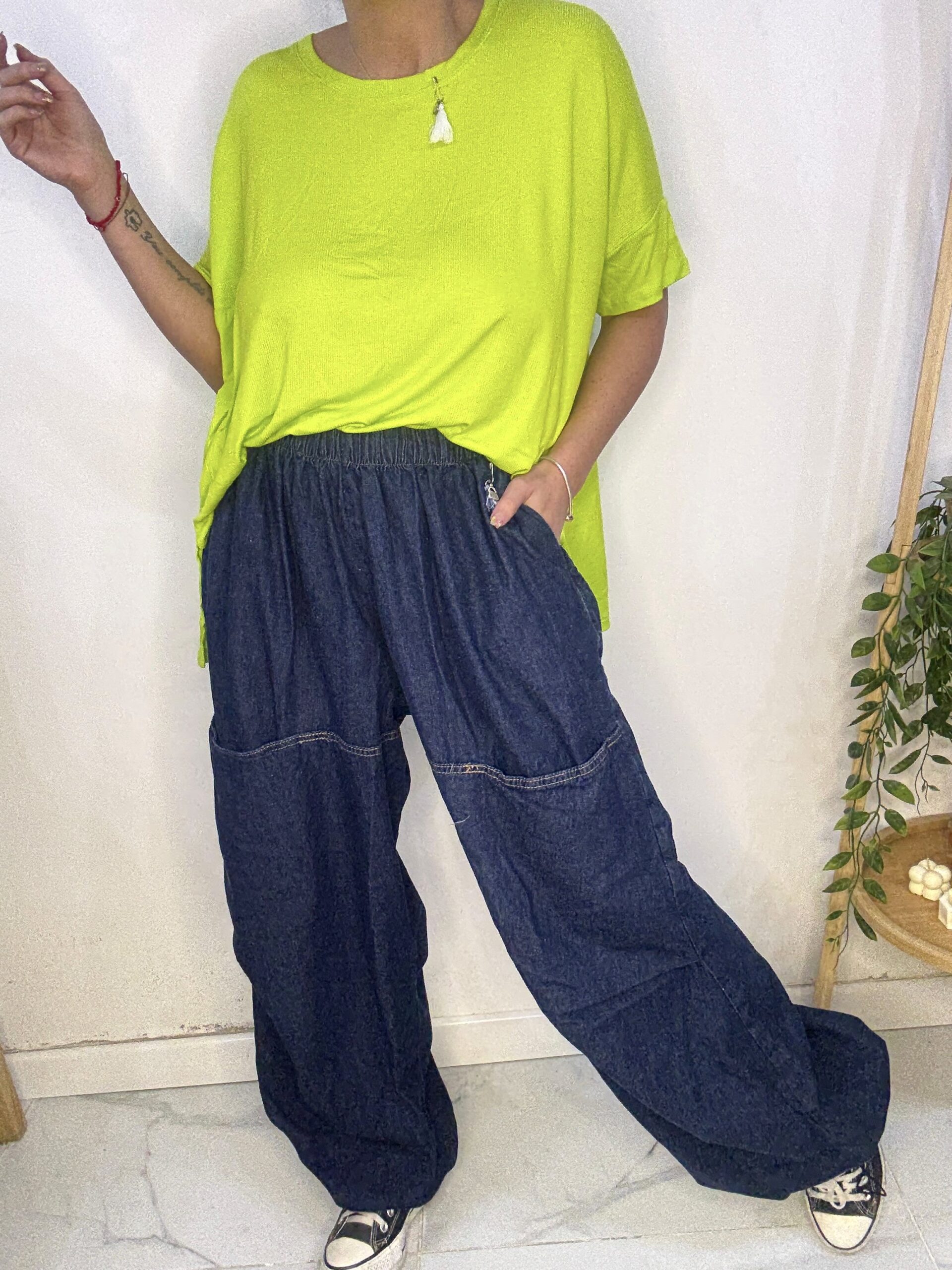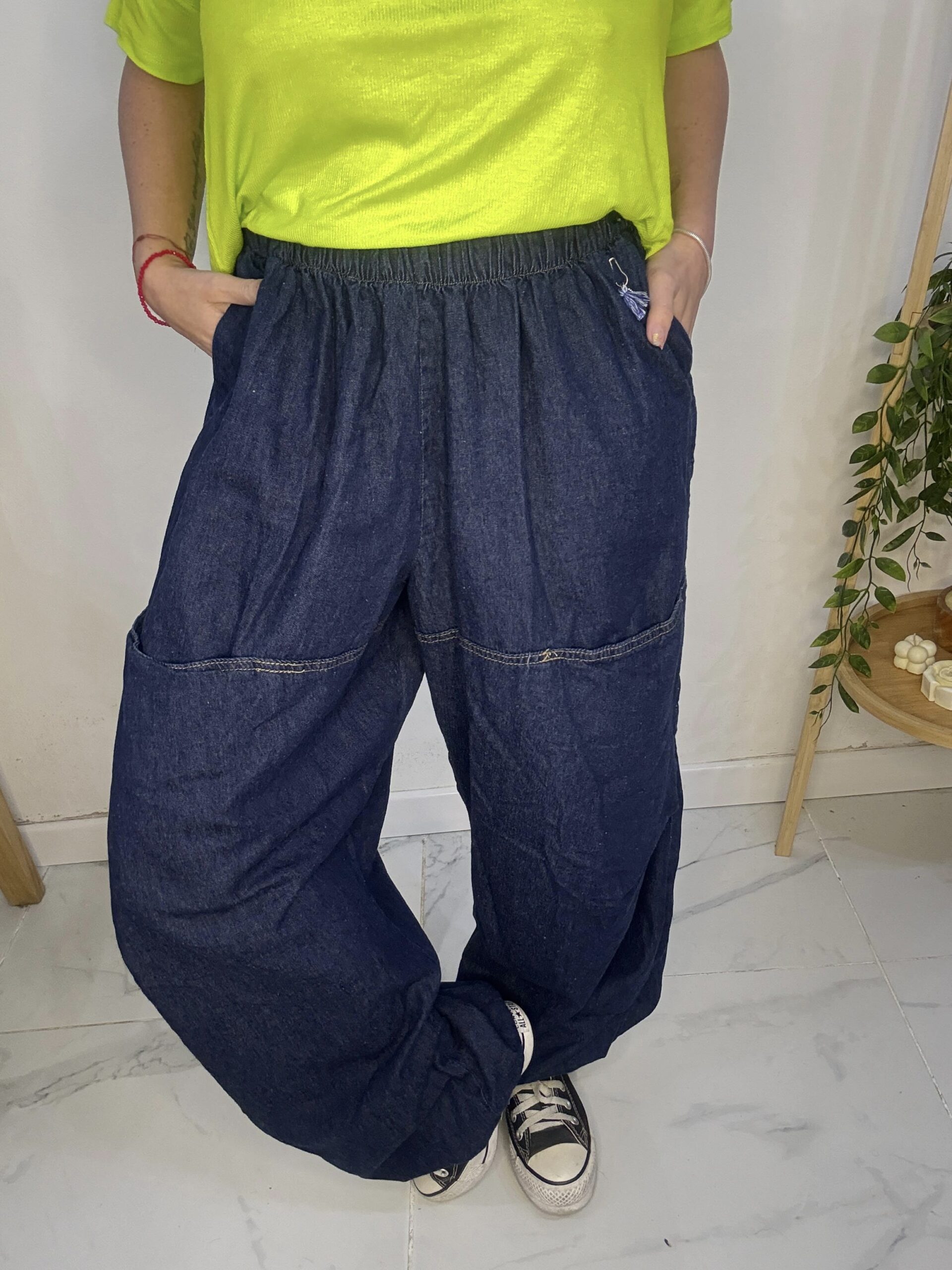 babucha de JEAN 😍 súper amplia con una caida que la rompe, son AMPLIAS es un babuchon 🤍son sueltas de por sí por ende los talles no son tan Exactos♥️ más el elástico q cede y la hace aún más cómoda y grande ⭐️