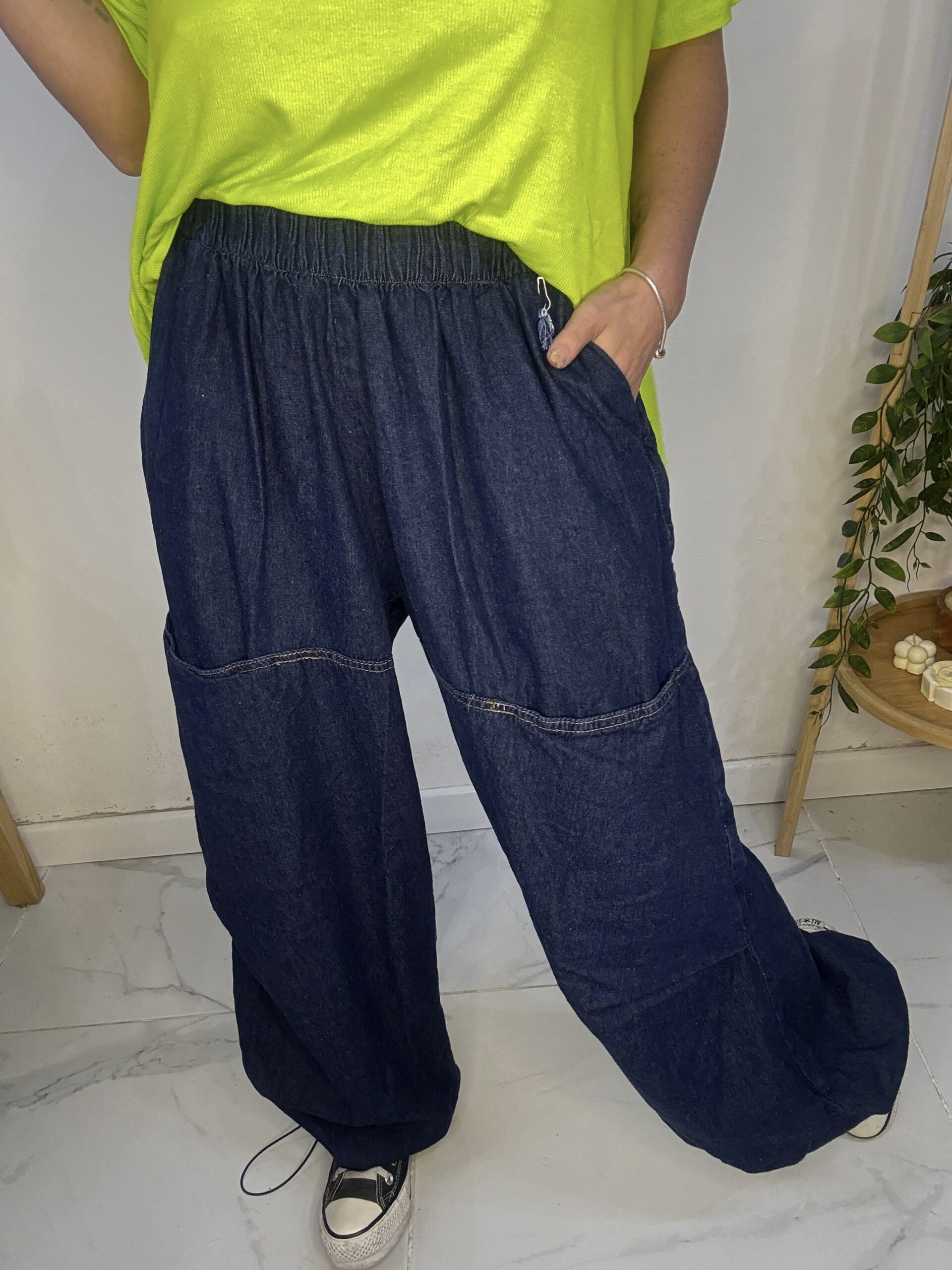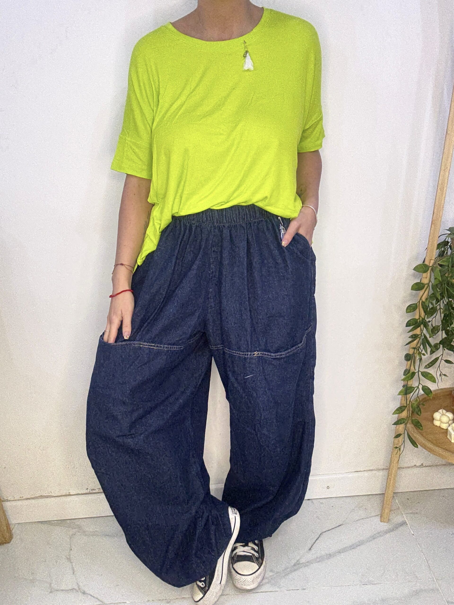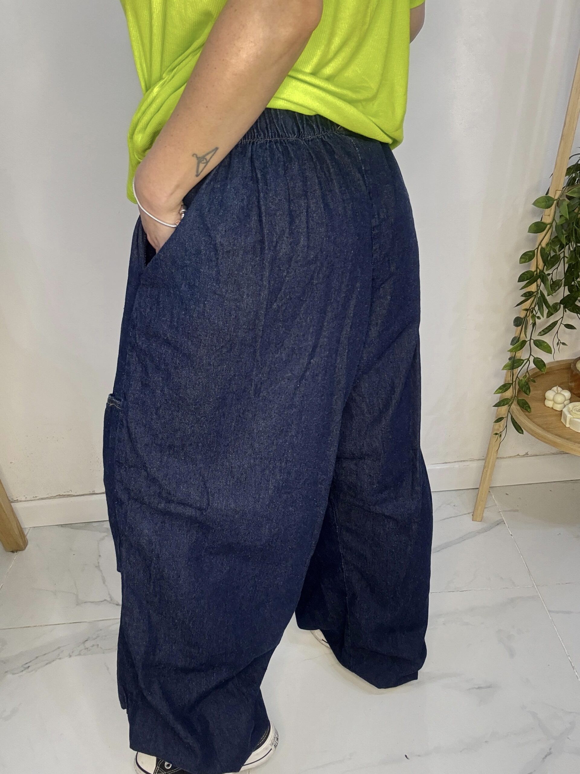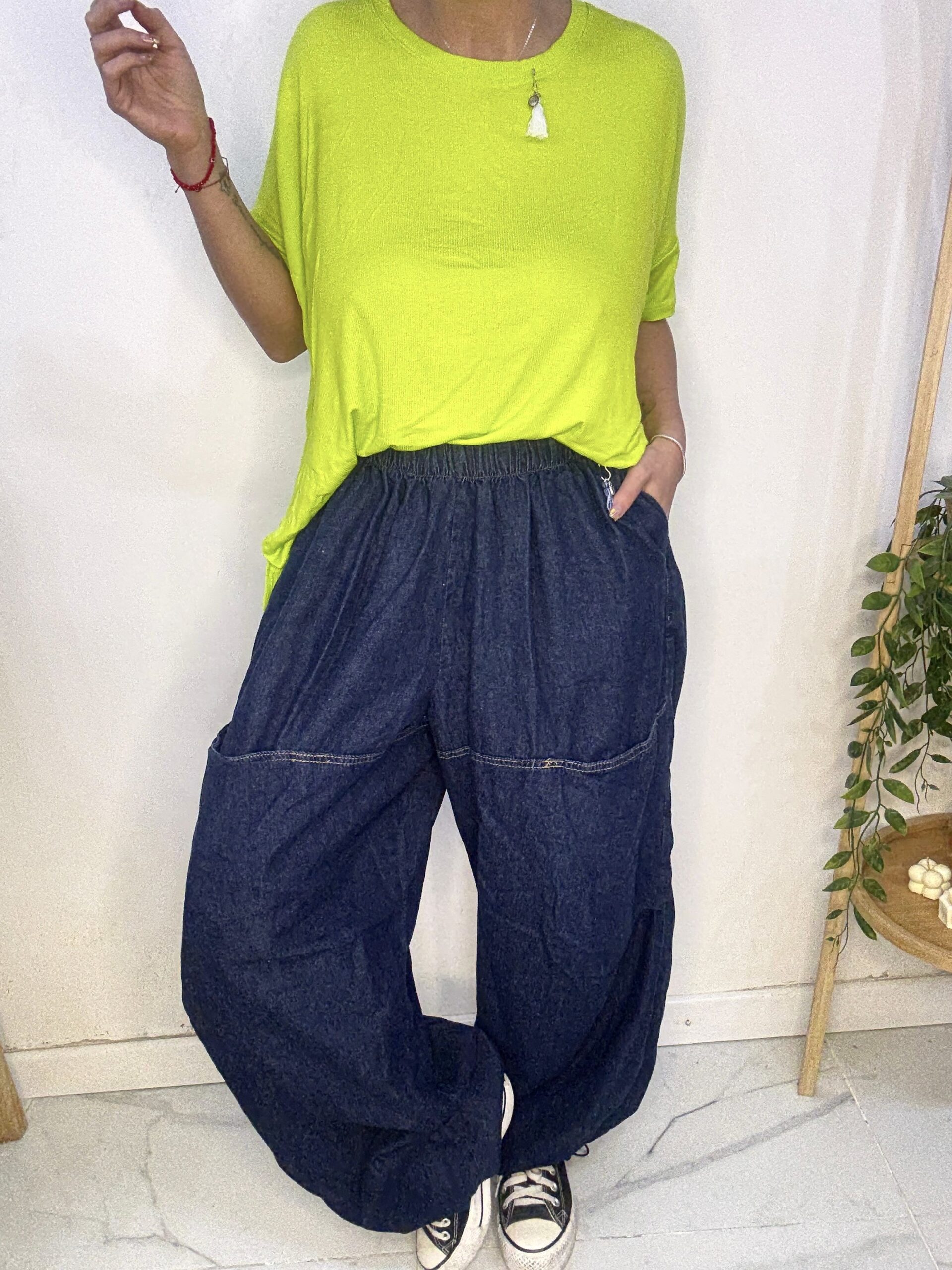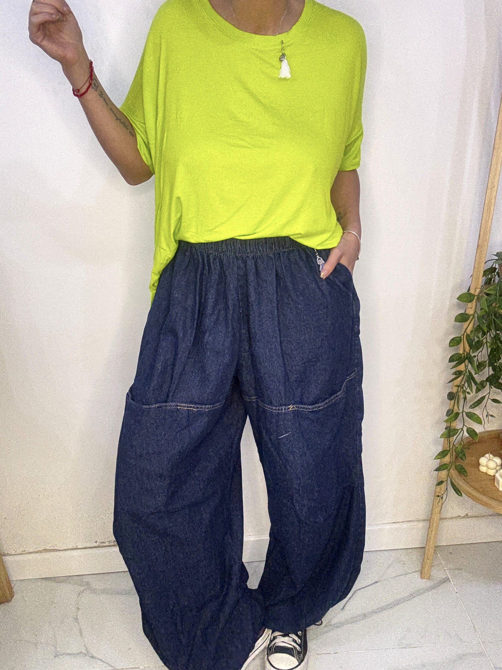 babucha de JEAN 😍 súper amplia con una caida que la rompe, son AMPLIAS es un babuchon 🤍son sueltas de por sí por ende los talles no son tan Exactos♥️ más el elástico q cede y la hace aún más cómoda y grande ⭐️