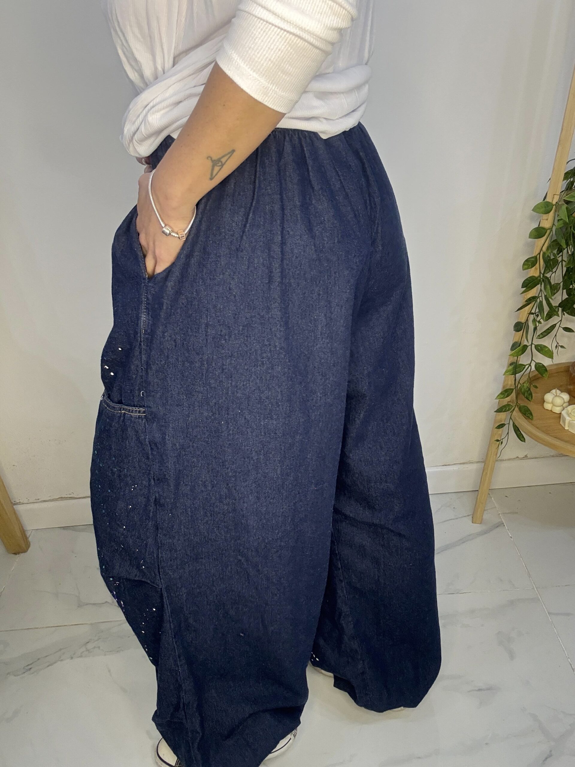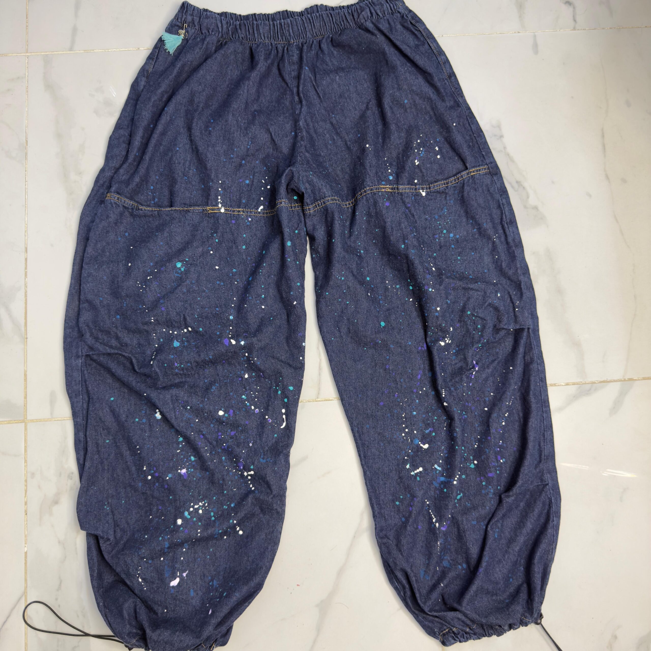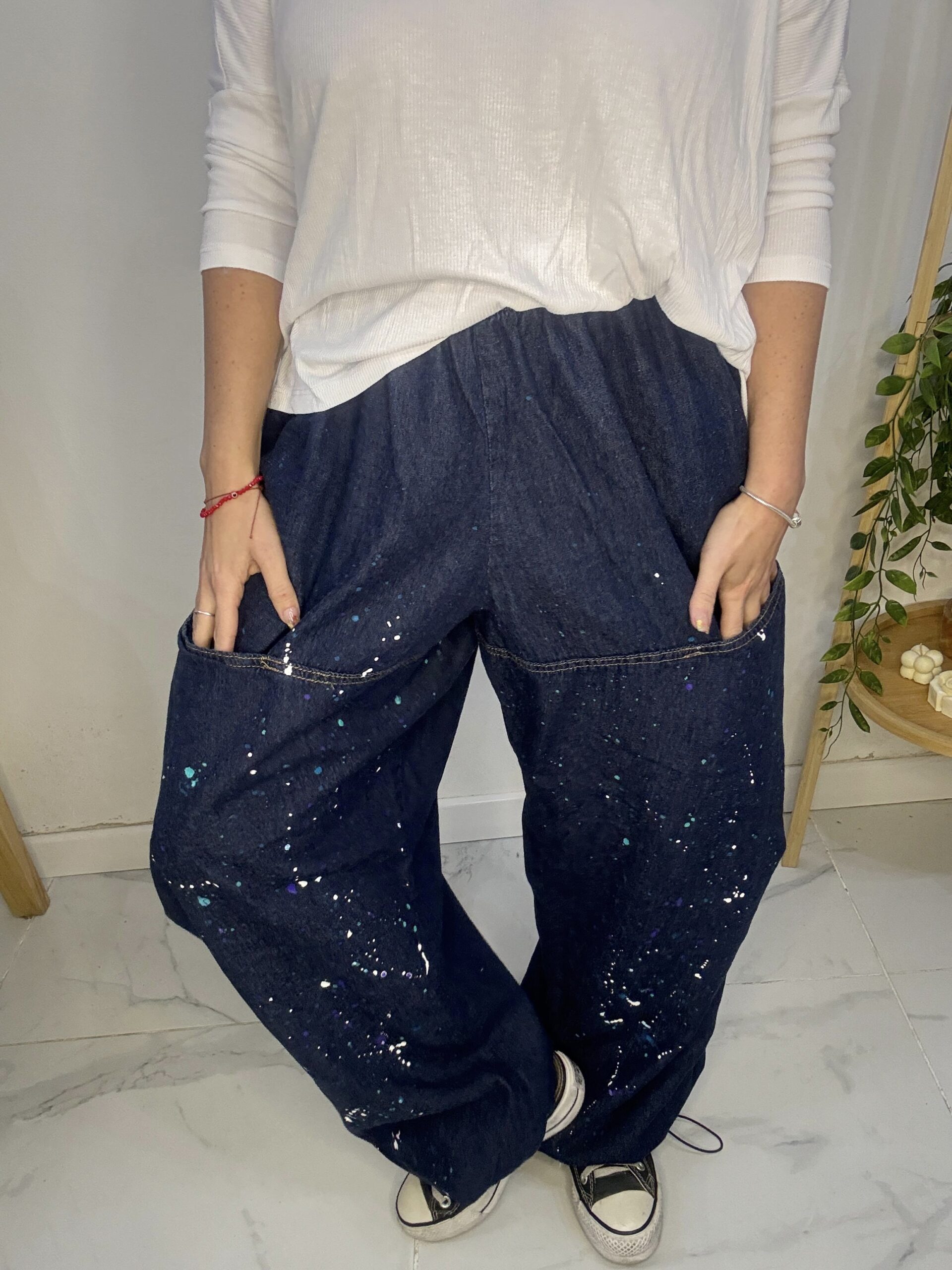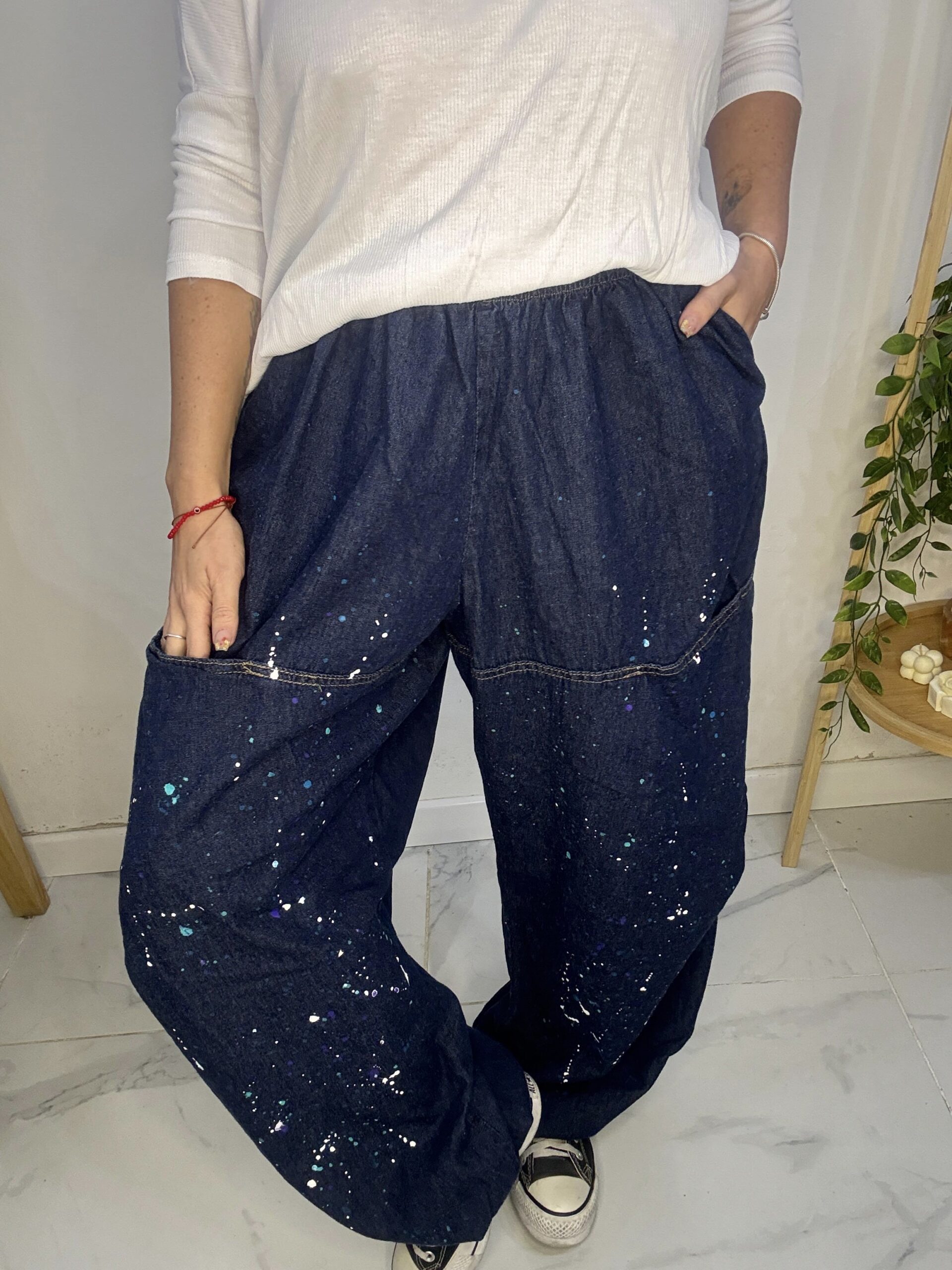 babucha de JEAN 😍 súper amplia con una caida que la rompe, son pintadas a mano, lo cual le da una exclusividad y un toque único a la prenda son artesanales y súper diferentes♥️