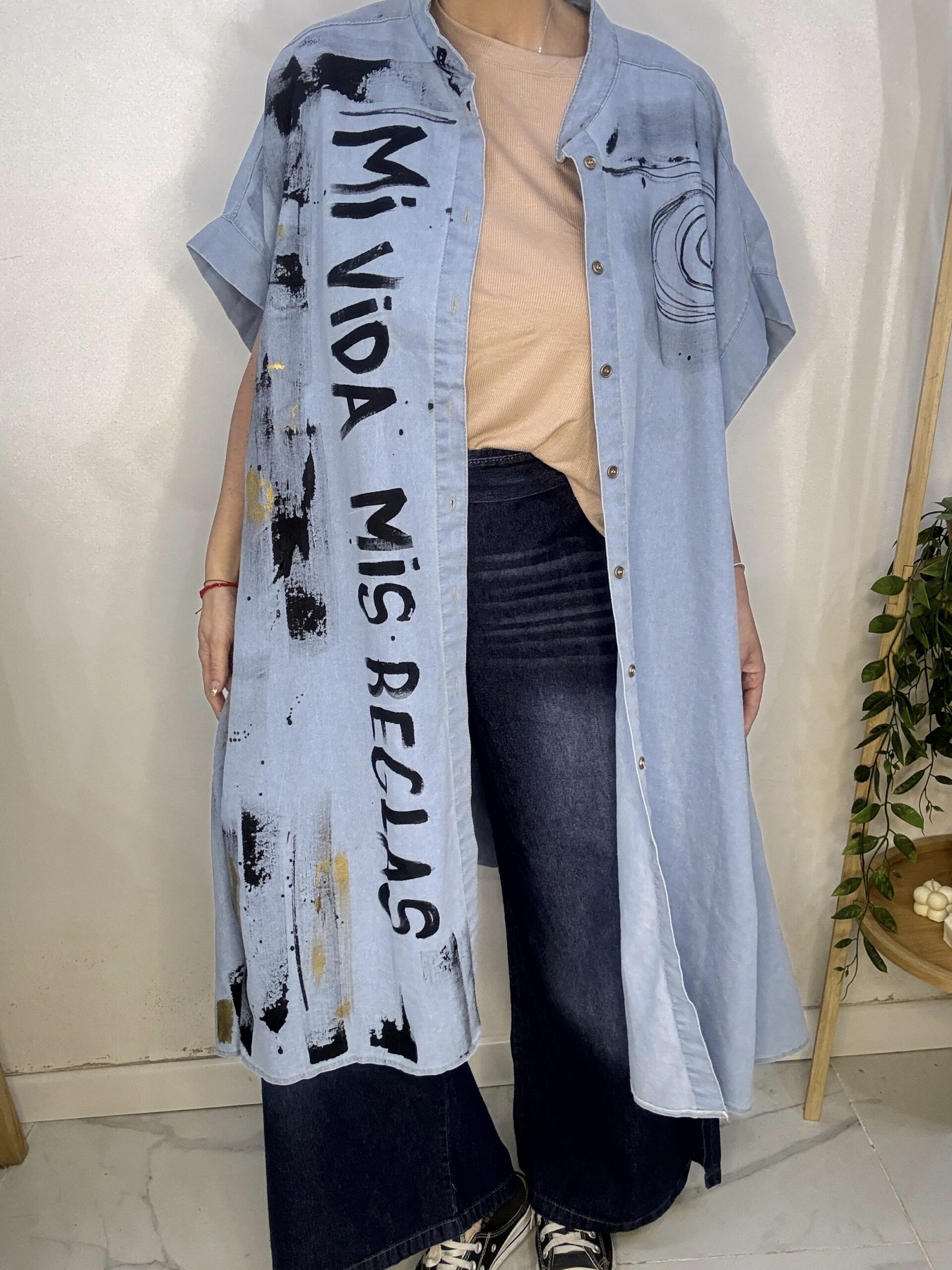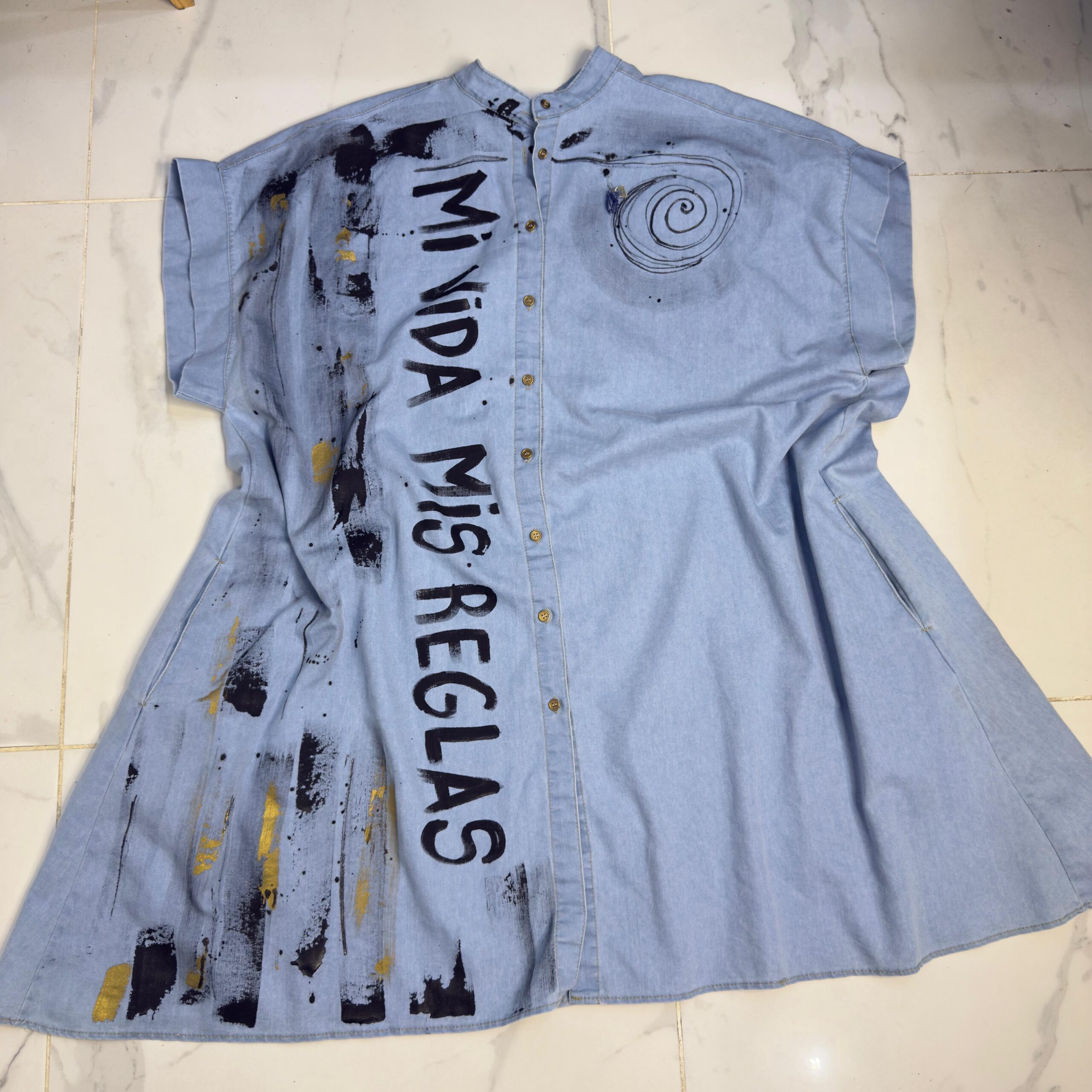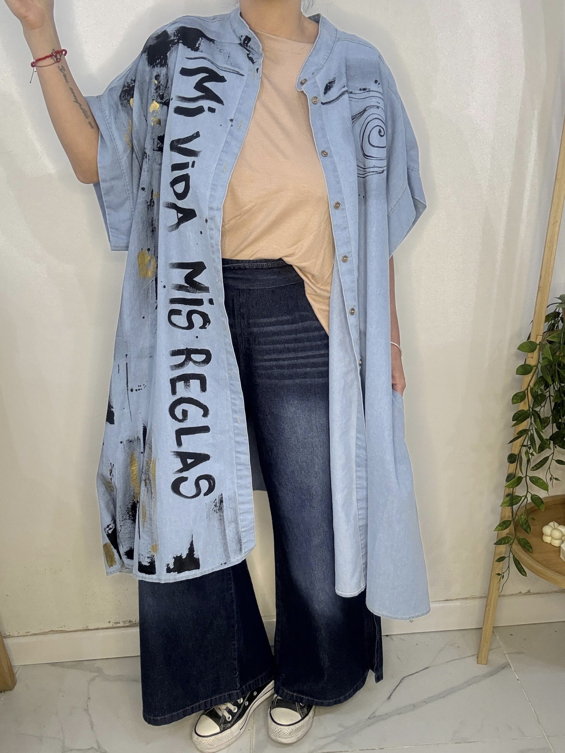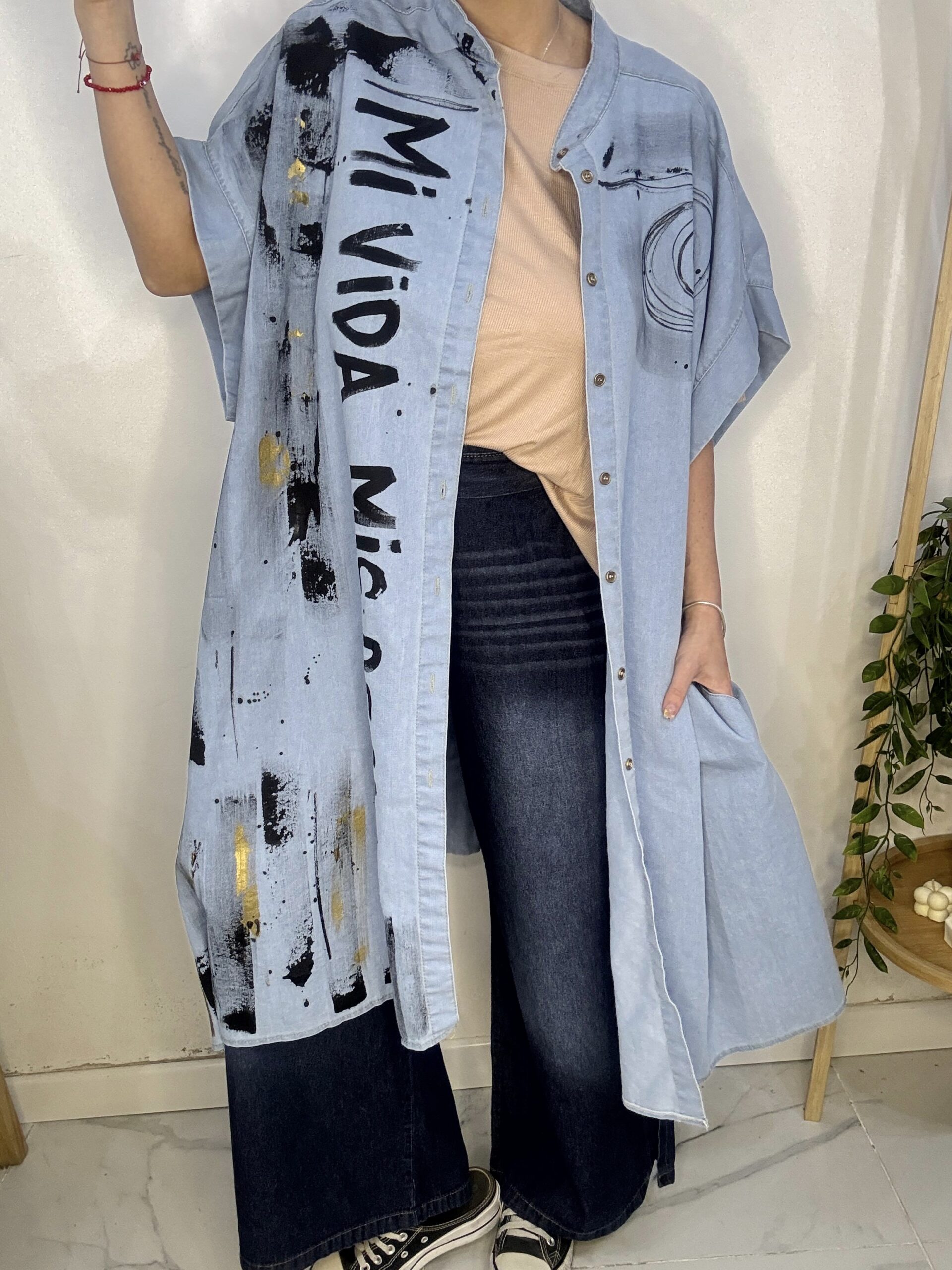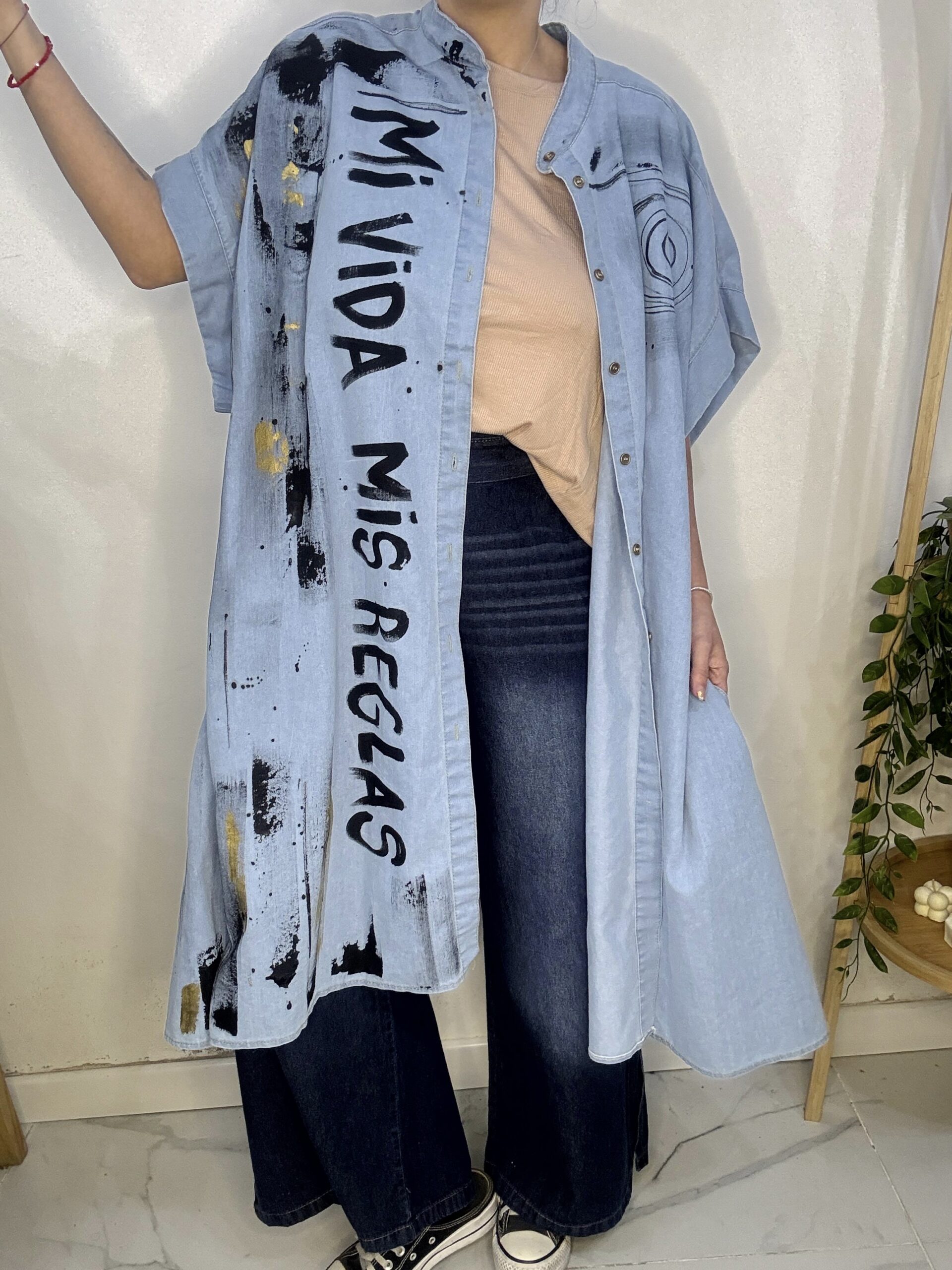 La podes usar cerrada o como complemento de un outfit 💙 tipo camisa cortando con LA PRENDA!! 💙el STOCK LIMITADO 🫢  Son prendas de diseño 💙no se hacen en cantidades industriales 🇦🇷🫶 es súper hermoso y diferente es amplio como se ve en las fotitos✔️  ES GRANDE AMPLIO Y LES VA A TODAS 🥰 la pintura le da un toque estético, diferente, acercándose a la exclusividad de la prenda en sí misma, y está hecha con colores que puedan ser combinados con diferentes prendas, tanto para usarla, como vestido o como camisola♥️