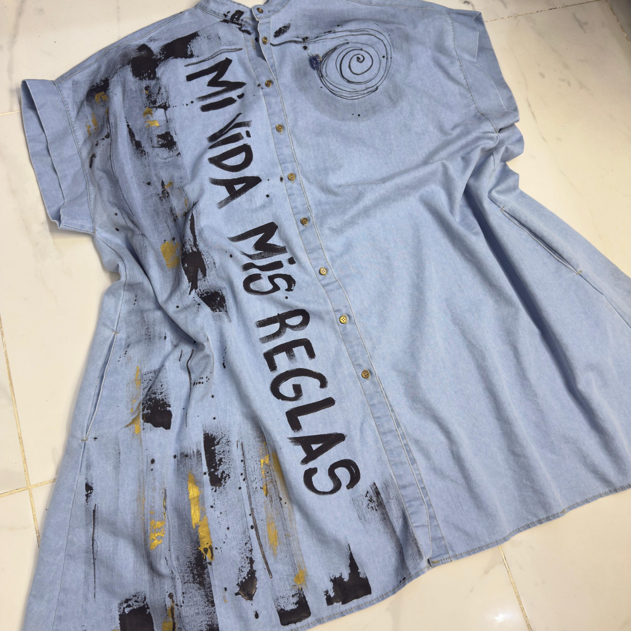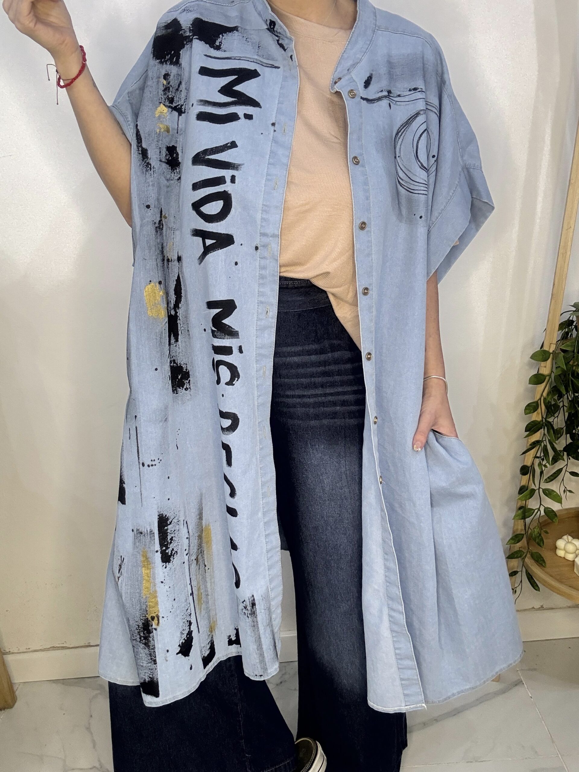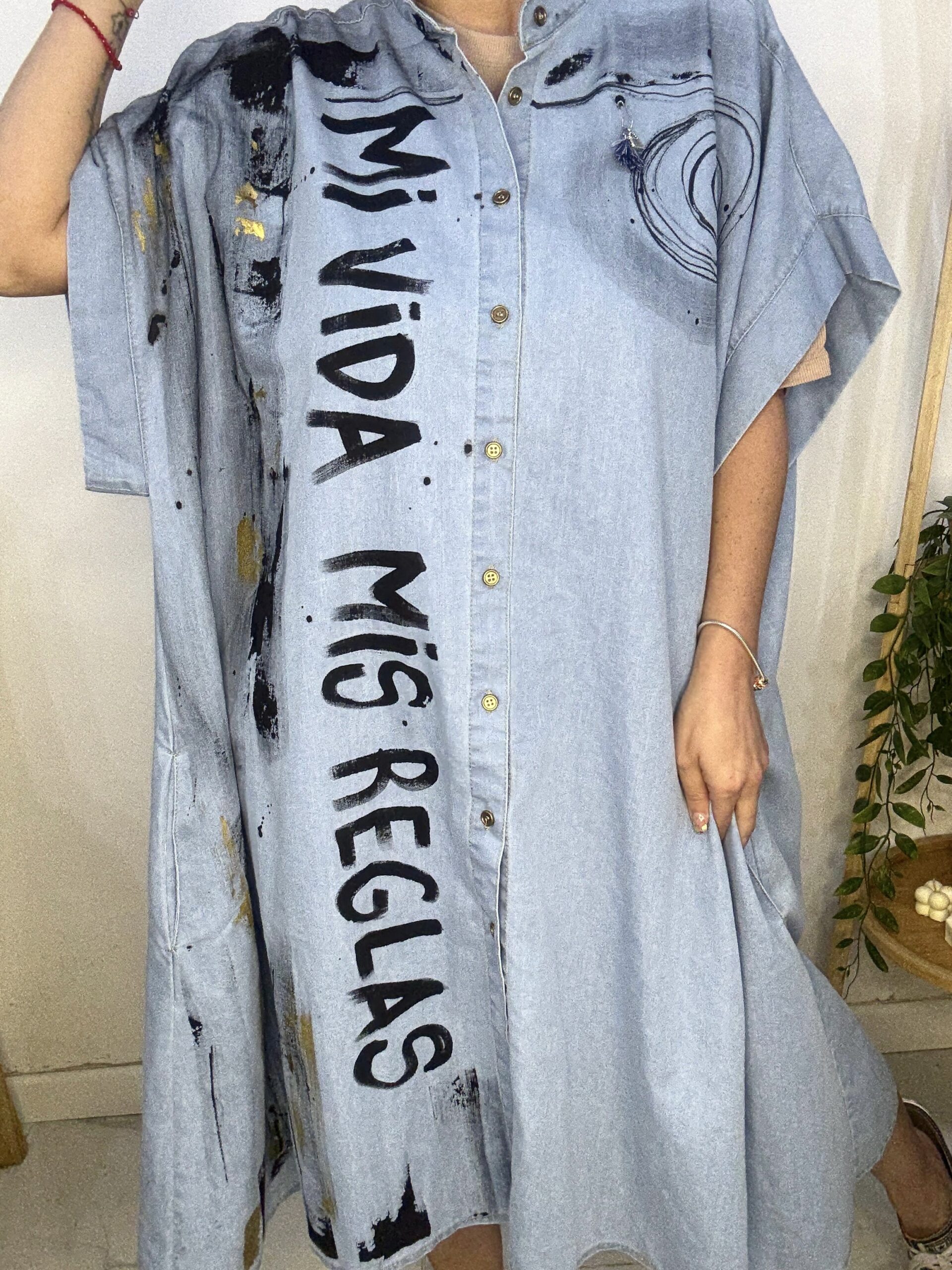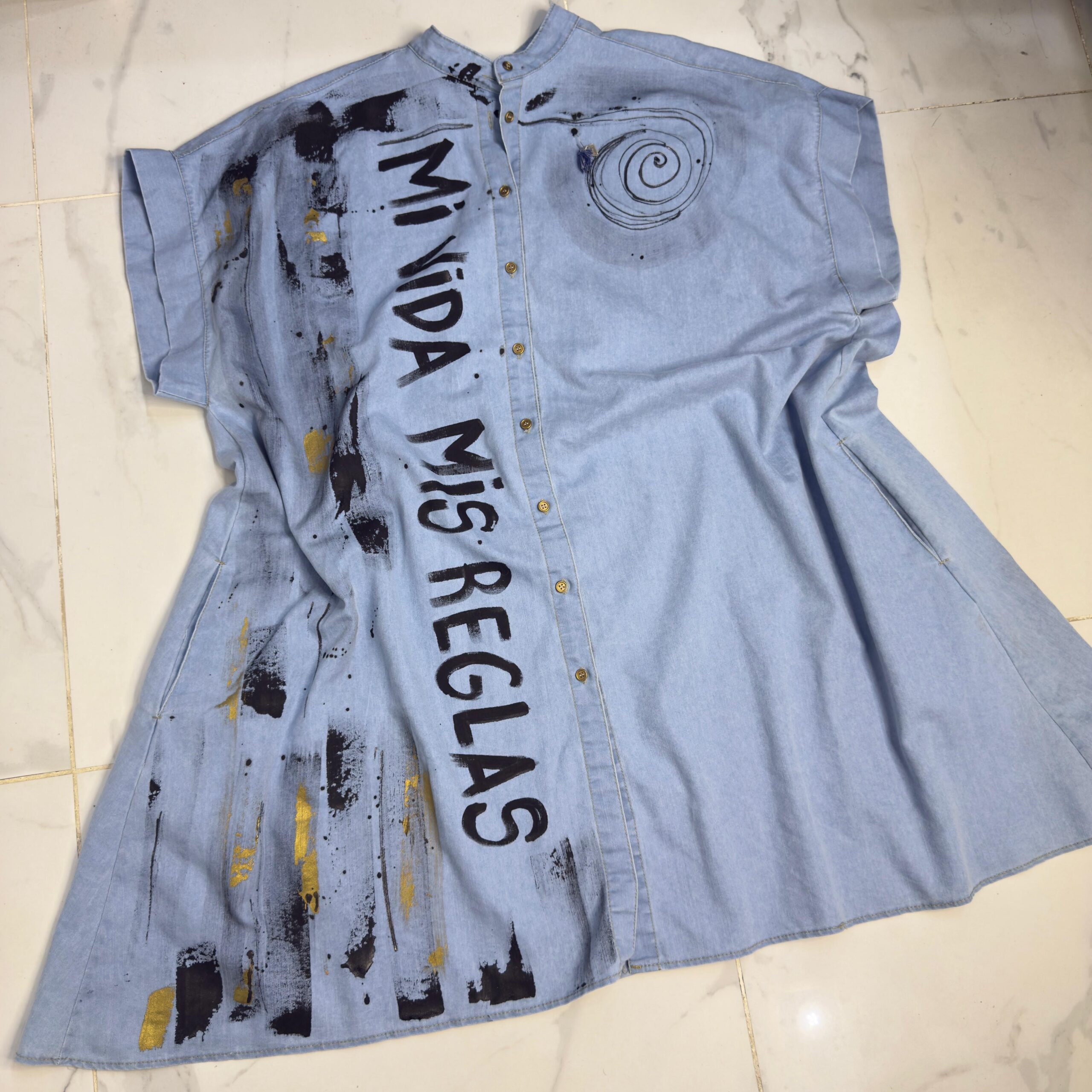 La podes usar cerrada o como complemento de un outfit 💙 tipo camisa cortando con LA PRENDA!! 💙el STOCK LIMITADO 🫢  Son prendas de diseño 💙no se hacen en cantidades industriales 🇦🇷🫶 es súper hermoso y diferente es amplio como se ve en las fotitos✔️  ES GRANDE AMPLIO Y LES VA A TODAS 🥰 la pintura le da un toque estético, diferente, acercándose a la exclusividad de la prenda en sí misma, y está hecha con colores que puedan ser combinados con diferentes prendas, tanto para usarla, como vestido o como camisola♥️