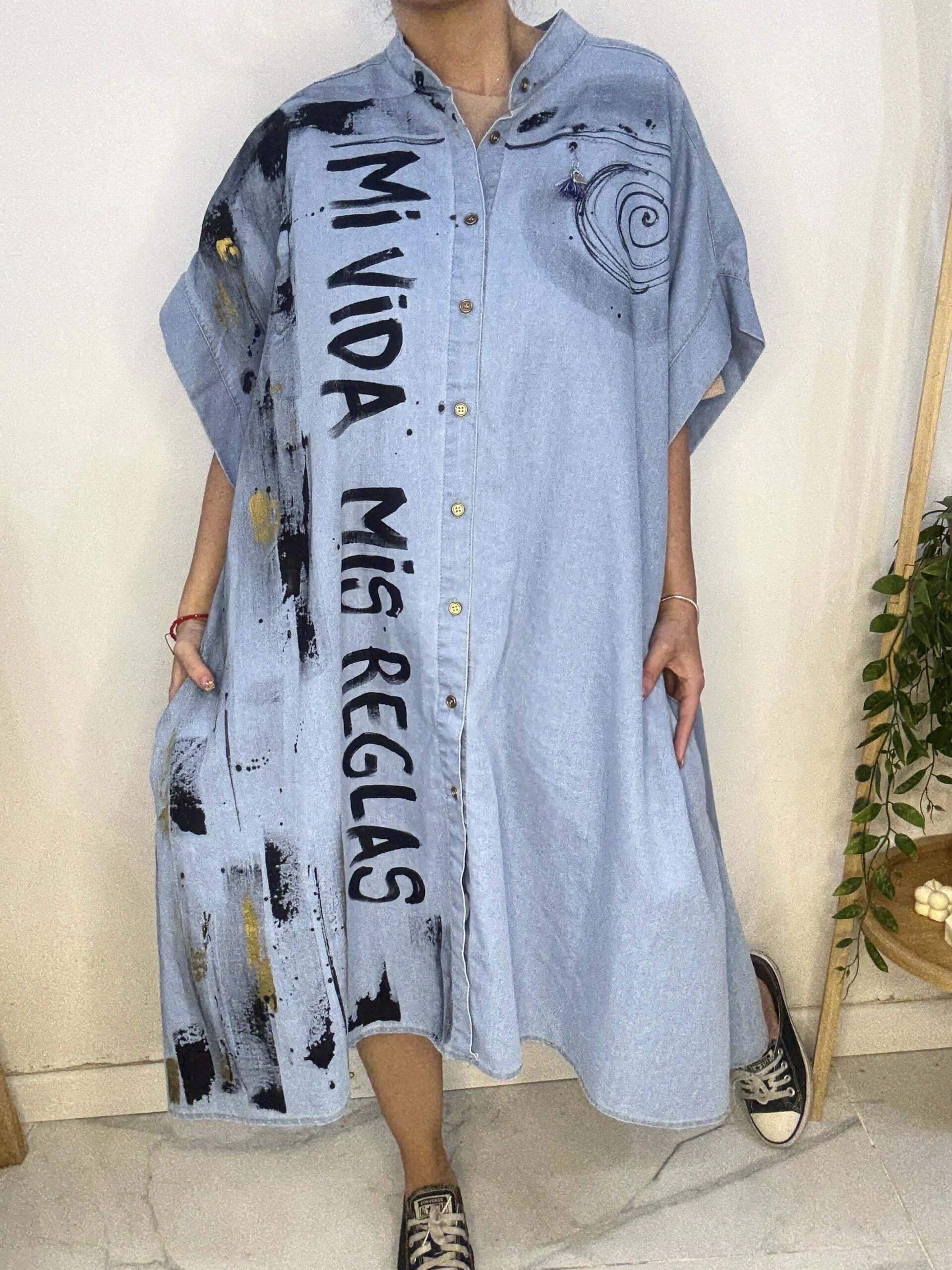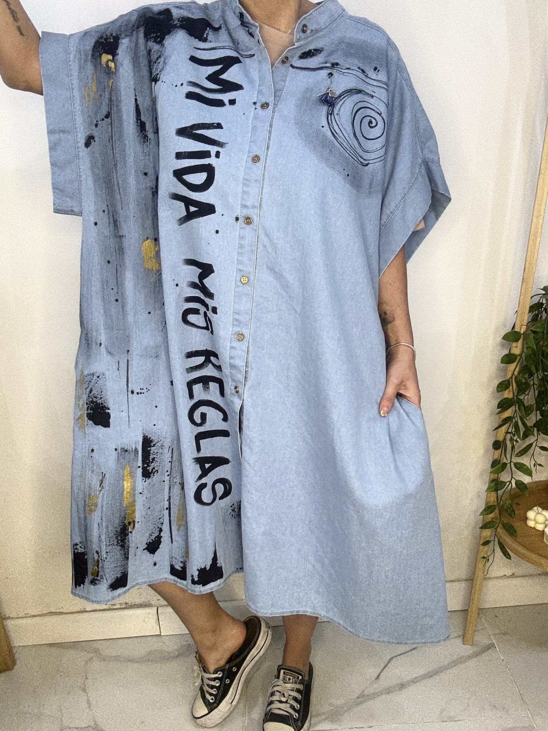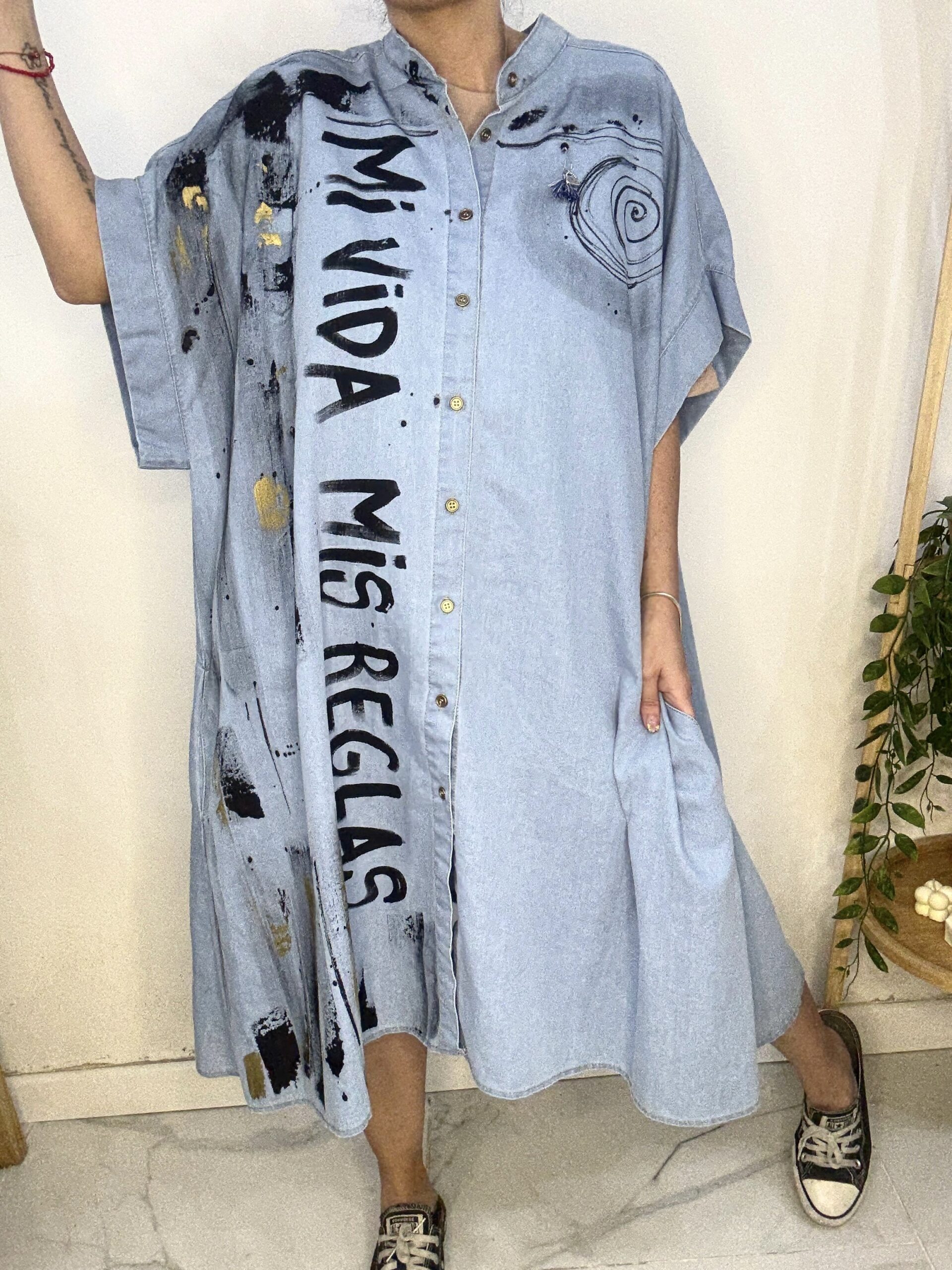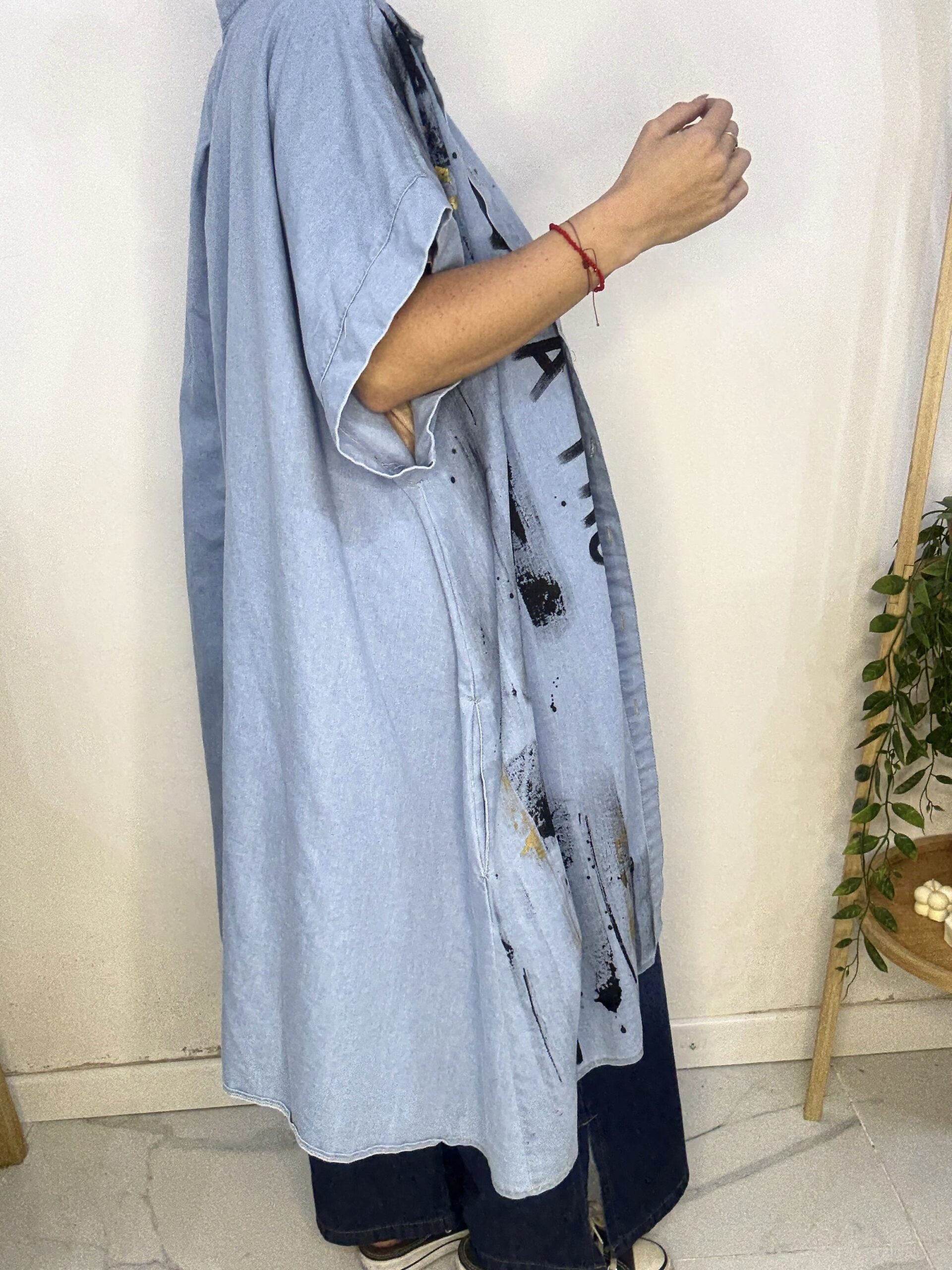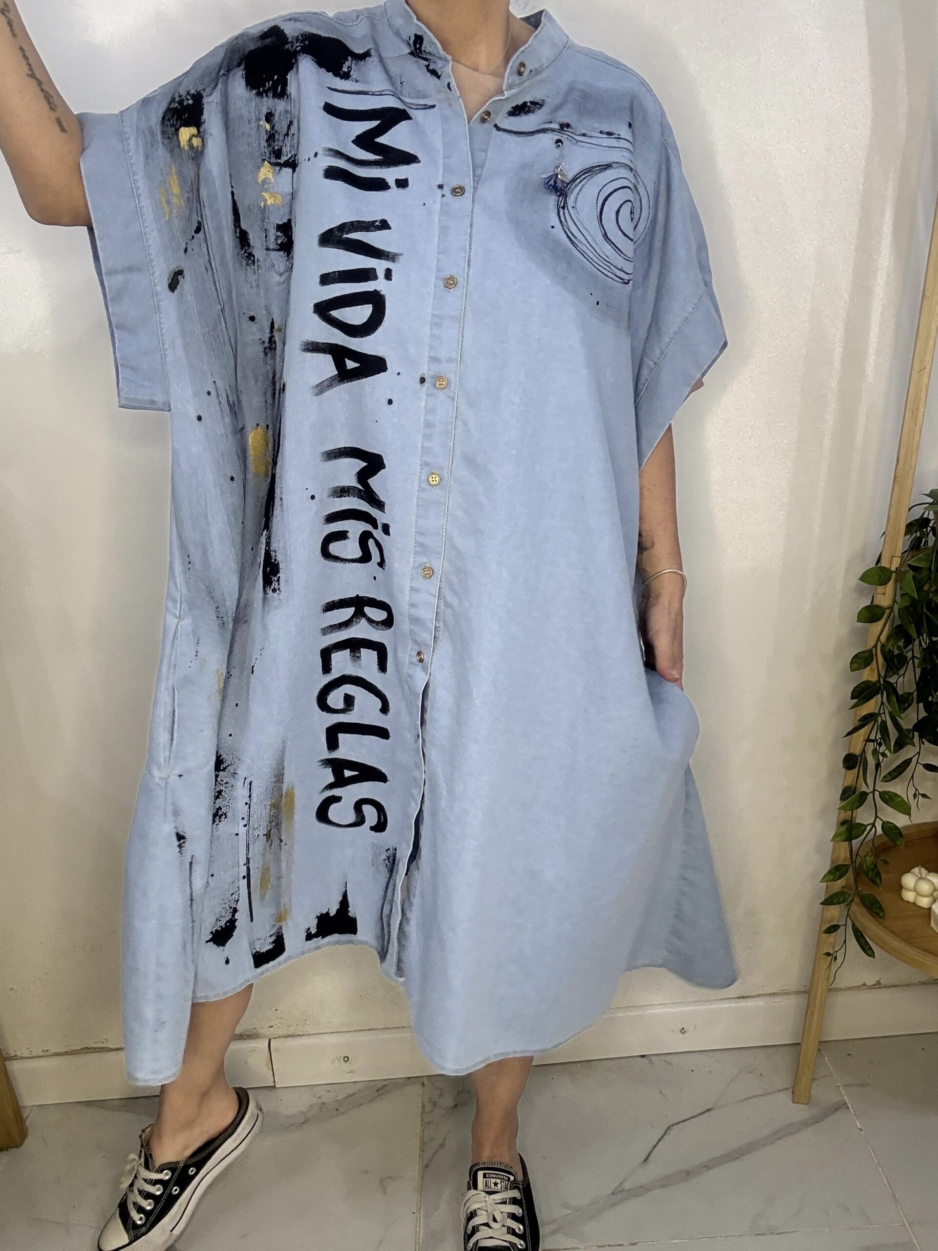 La podes usar cerrada o como complemento de un outfit 💙 tipo camisa cortando con LA PRENDA!! 💙el STOCK LIMITADO 🫢  Son prendas de diseño 💙no se hacen en cantidades industriales 🇦🇷🫶 es súper hermoso y diferente es amplio como se ve en las fotitos✔️  ES GRANDE AMPLIO Y LES VA A TODAS 🥰 la pintura le da un toque estético, diferente, acercándose a la exclusividad de la prenda en sí misma, y está hecha con colores que puedan ser combinados con diferentes prendas, tanto para usarla, como vestido o como camisola♥️