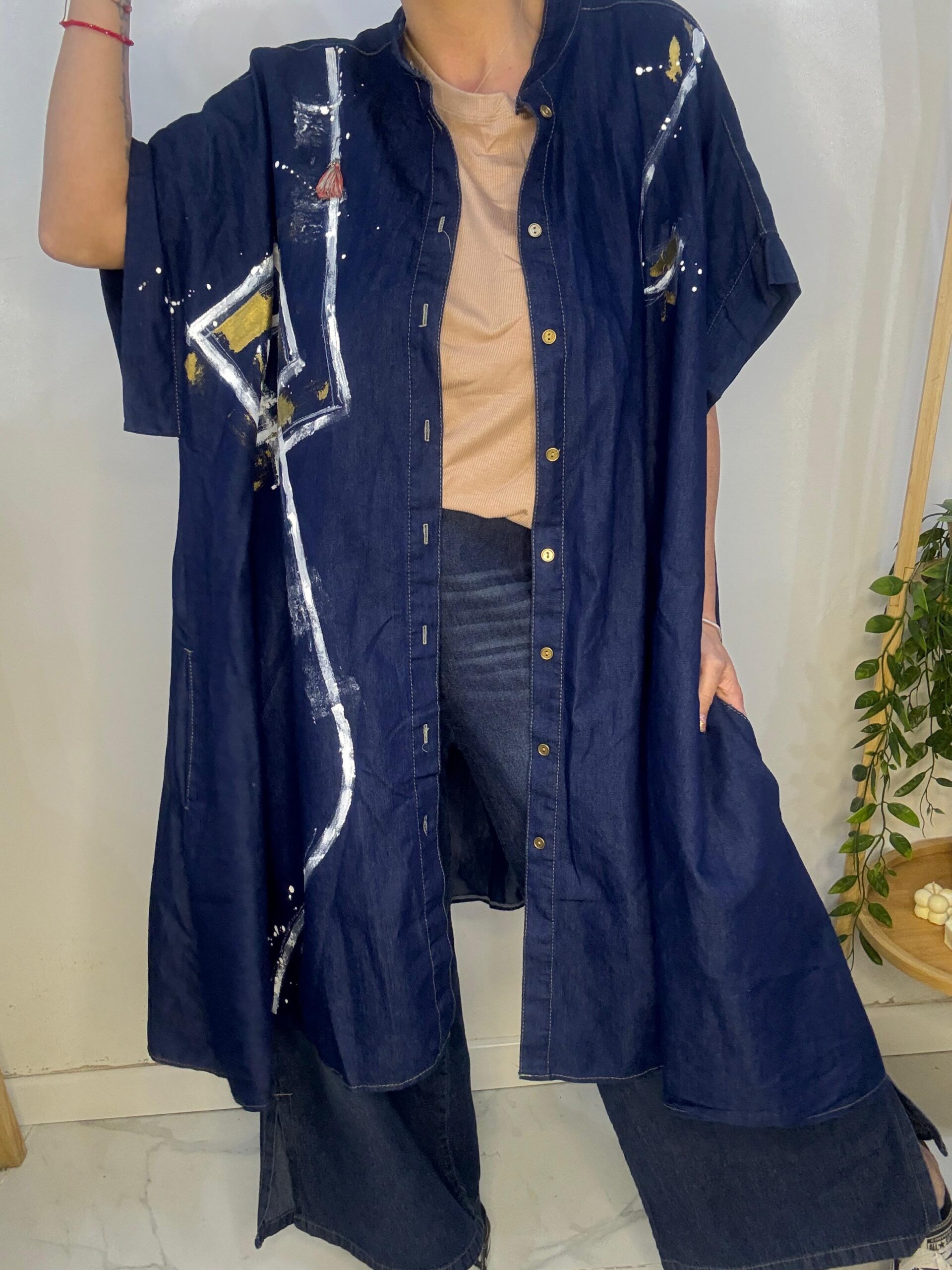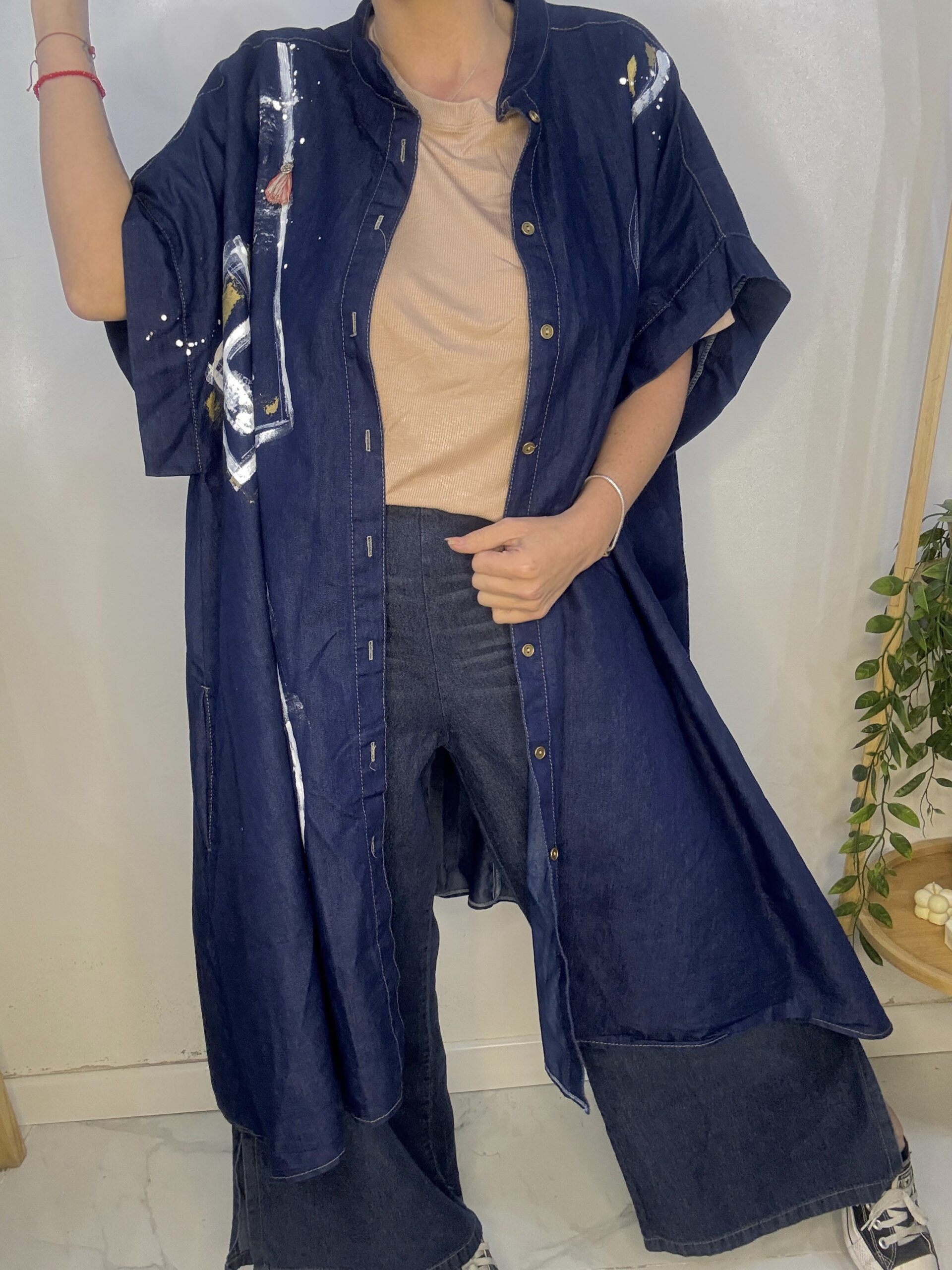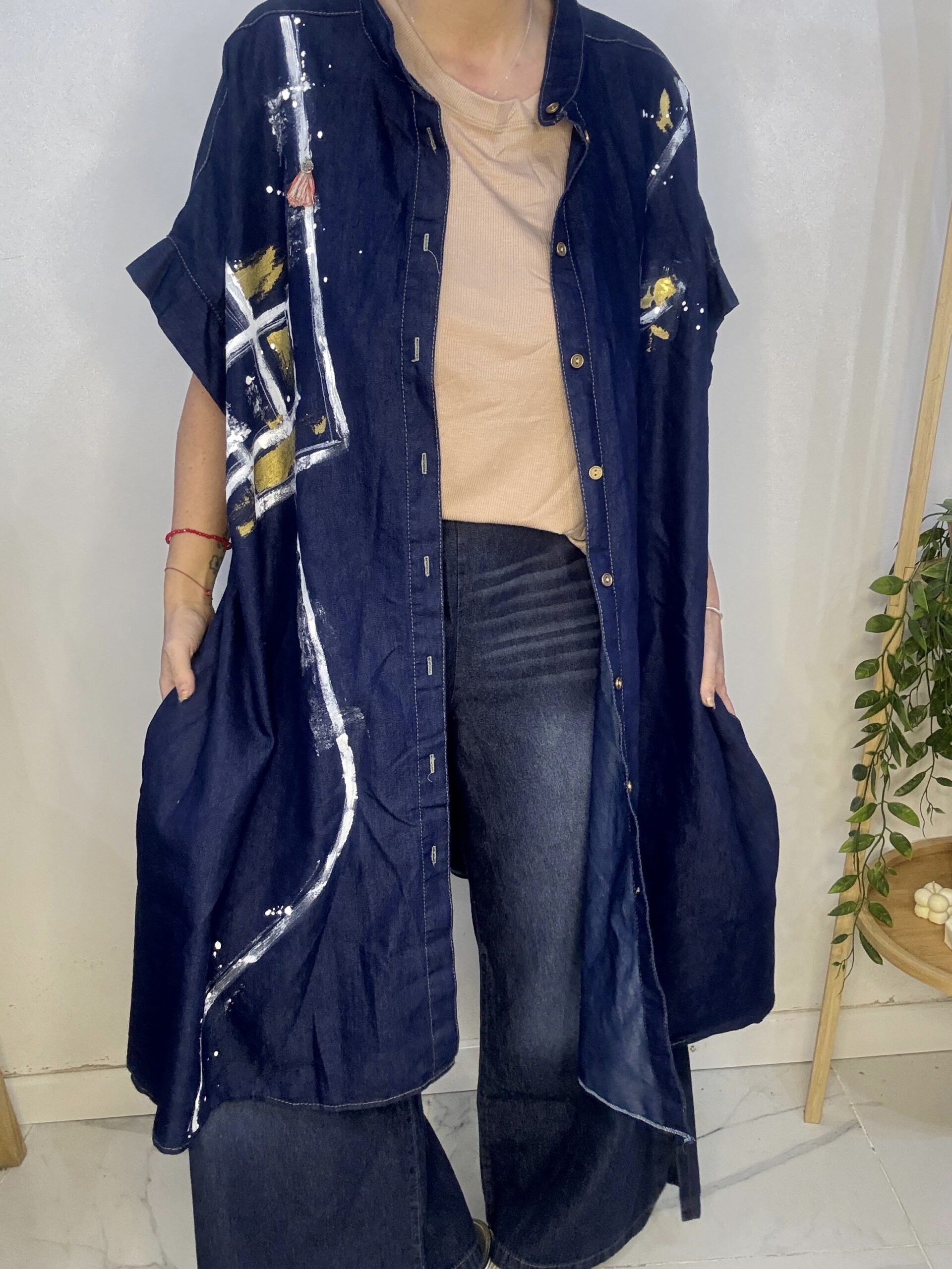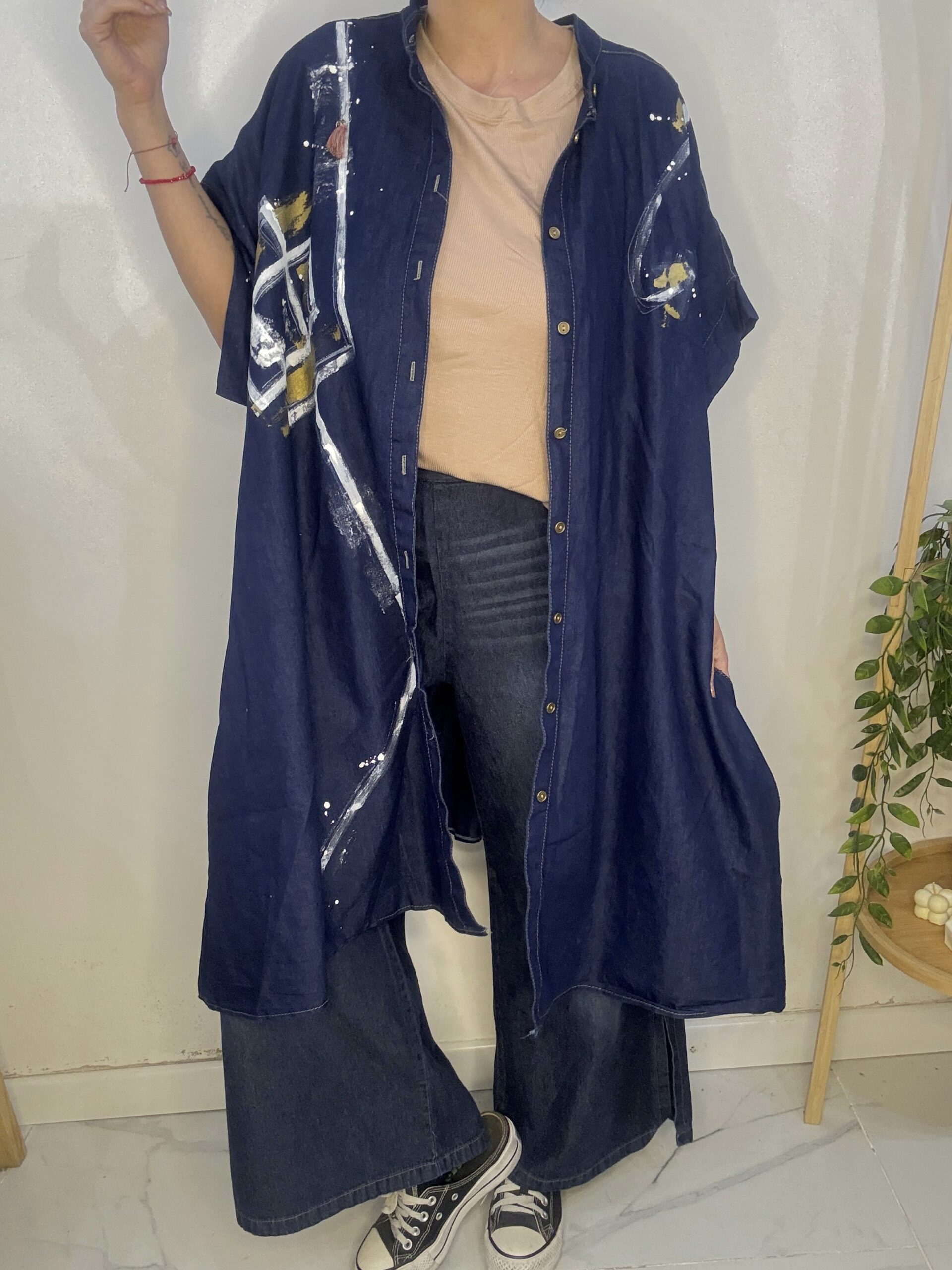 La podes usar cerrada o como complemento de un outfit 💙 tipo camisa cortando con LA PRENDA!! 💙el STOCK LIMITADO 🫢 Son prendas de diseño 💙no se hacen en cantidades industriales 🇦🇷🫶 es súper hermoso y diferente es amplio como se ve en las fotitos✔️ ES GRANDE AMPLIO Y LES VA A TODAS 🥰 la pintura le da un toque estético, diferente, acercándose a la exclusividad de la prenda en sí misma, y está hecha con colores que puedan ser combinados con diferentes prendas, tanto para usarla, como vestido o como camisola♥️