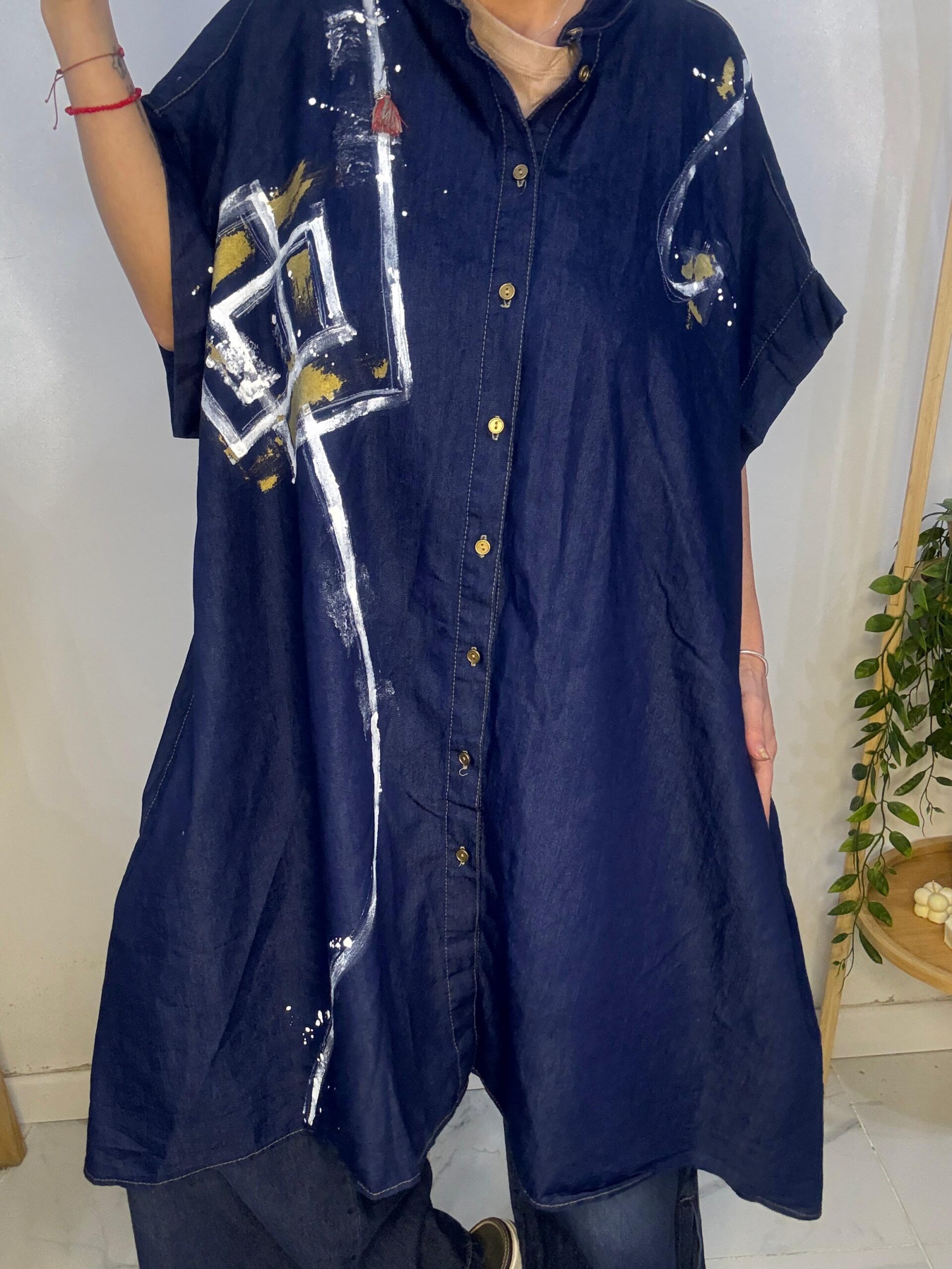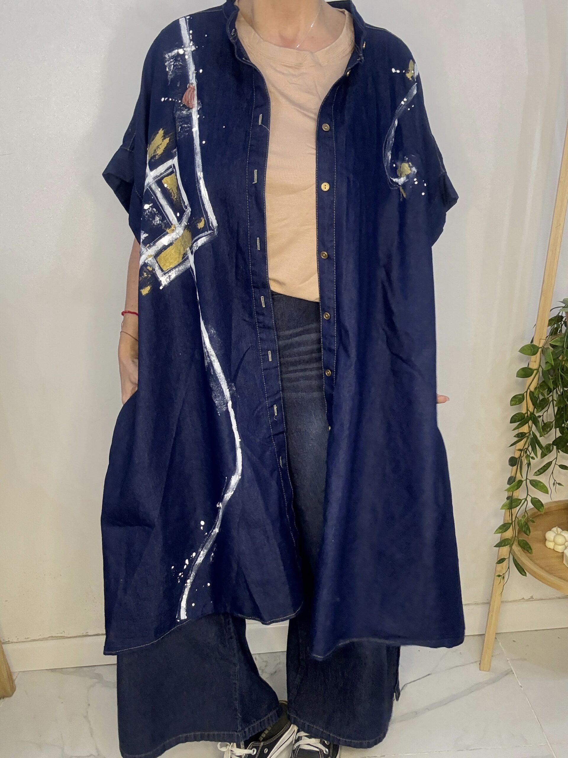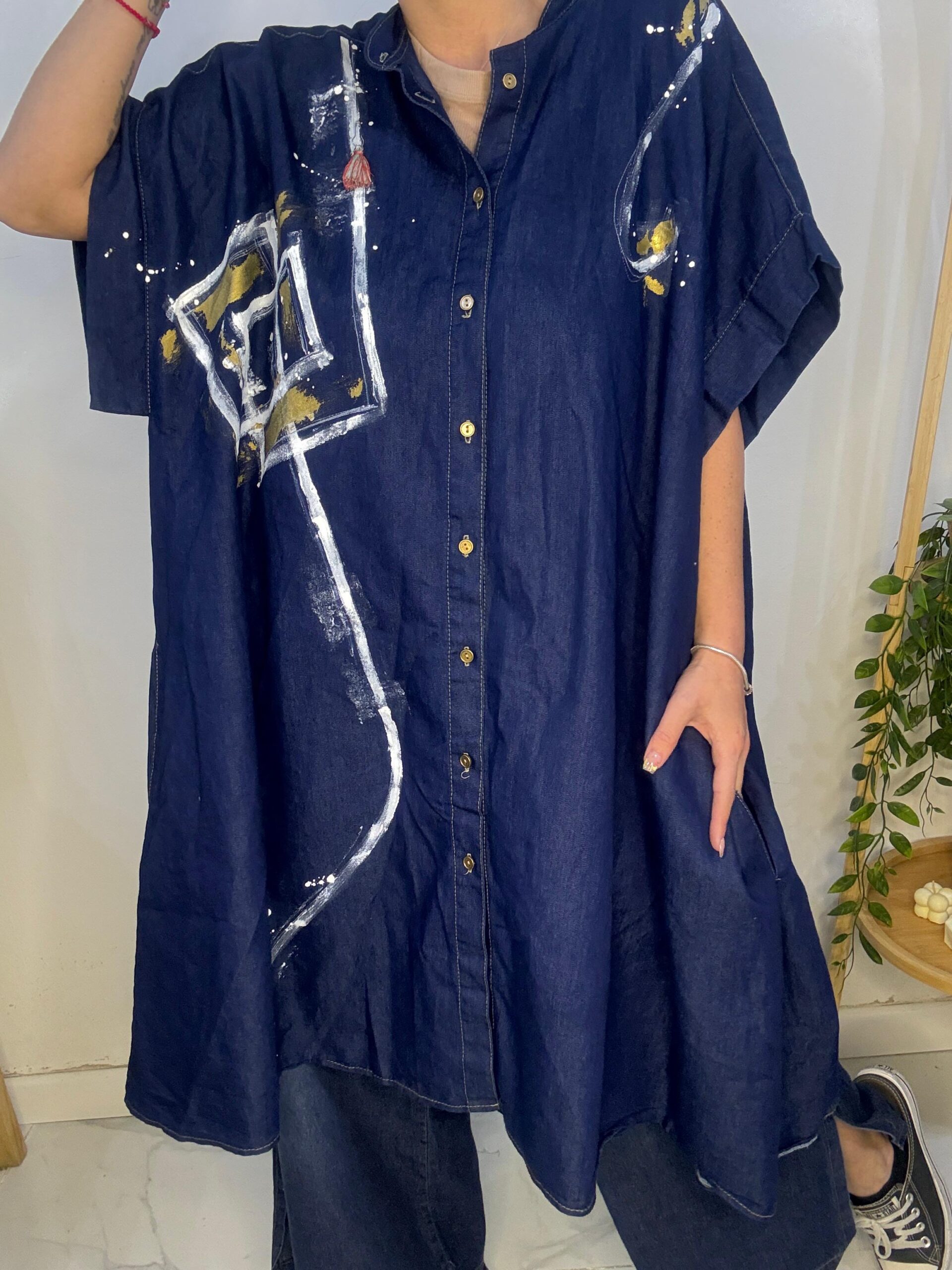 La podes usar cerrada o como complemento de un outfit 💙 tipo camisa cortando con LA PRENDA!! 💙el STOCK LIMITADO 🫢 Son prendas de diseño 💙no se hacen en cantidades industriales 🇦🇷🫶 es súper hermoso y diferente es amplio como se ve en las fotitos✔️ ES GRANDE AMPLIO Y LES VA A TODAS 🥰 la pintura le da un toque estético, diferente, acercándose a la exclusividad de la prenda en sí misma, y está hecha con colores que puedan ser combinados con diferentes prendas, tanto para usarla, como vestido o como camisola♥️