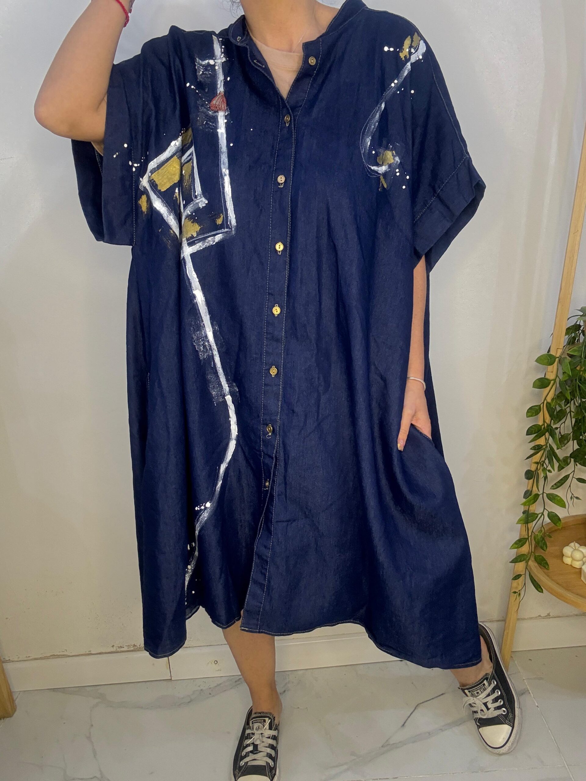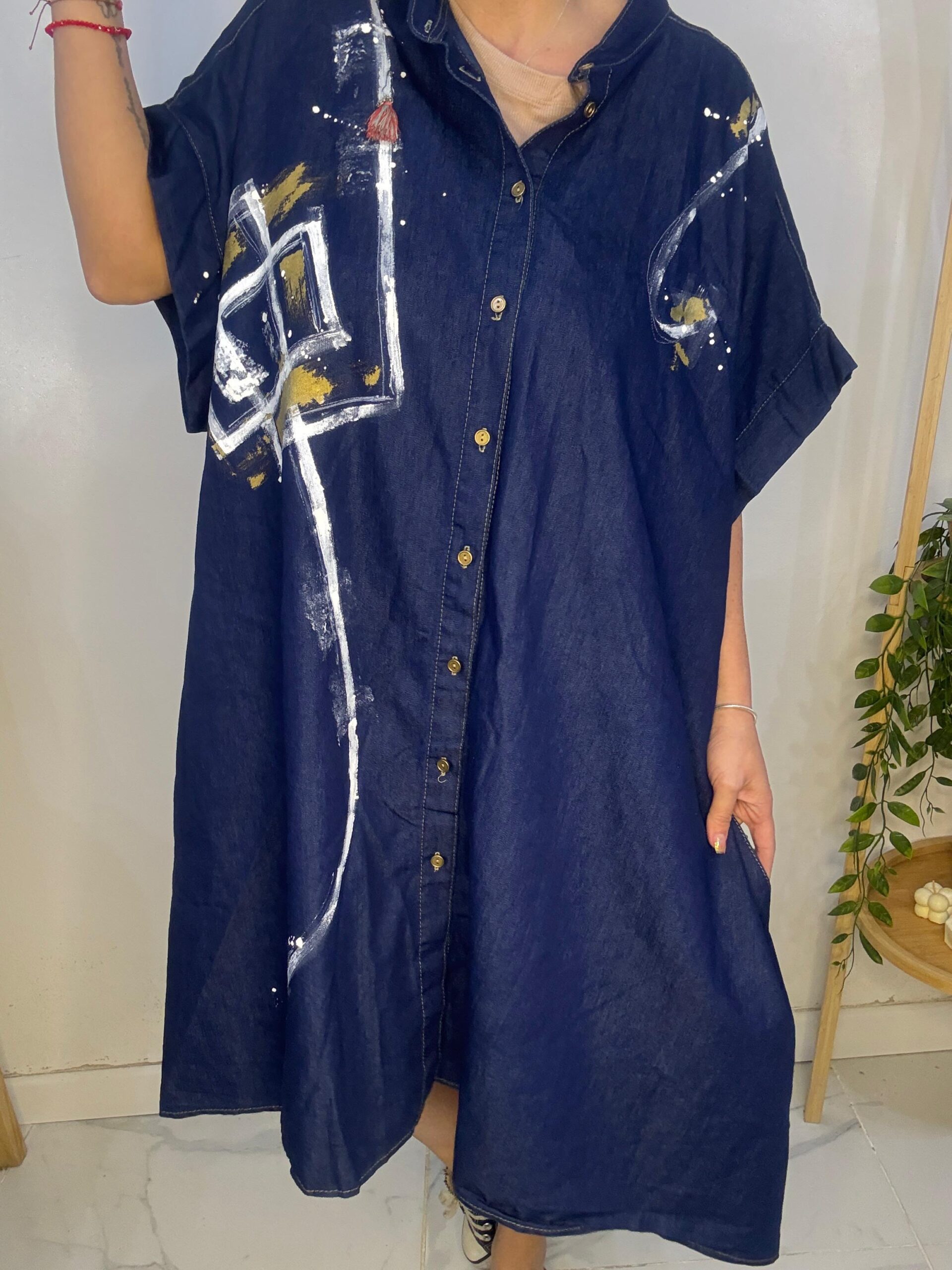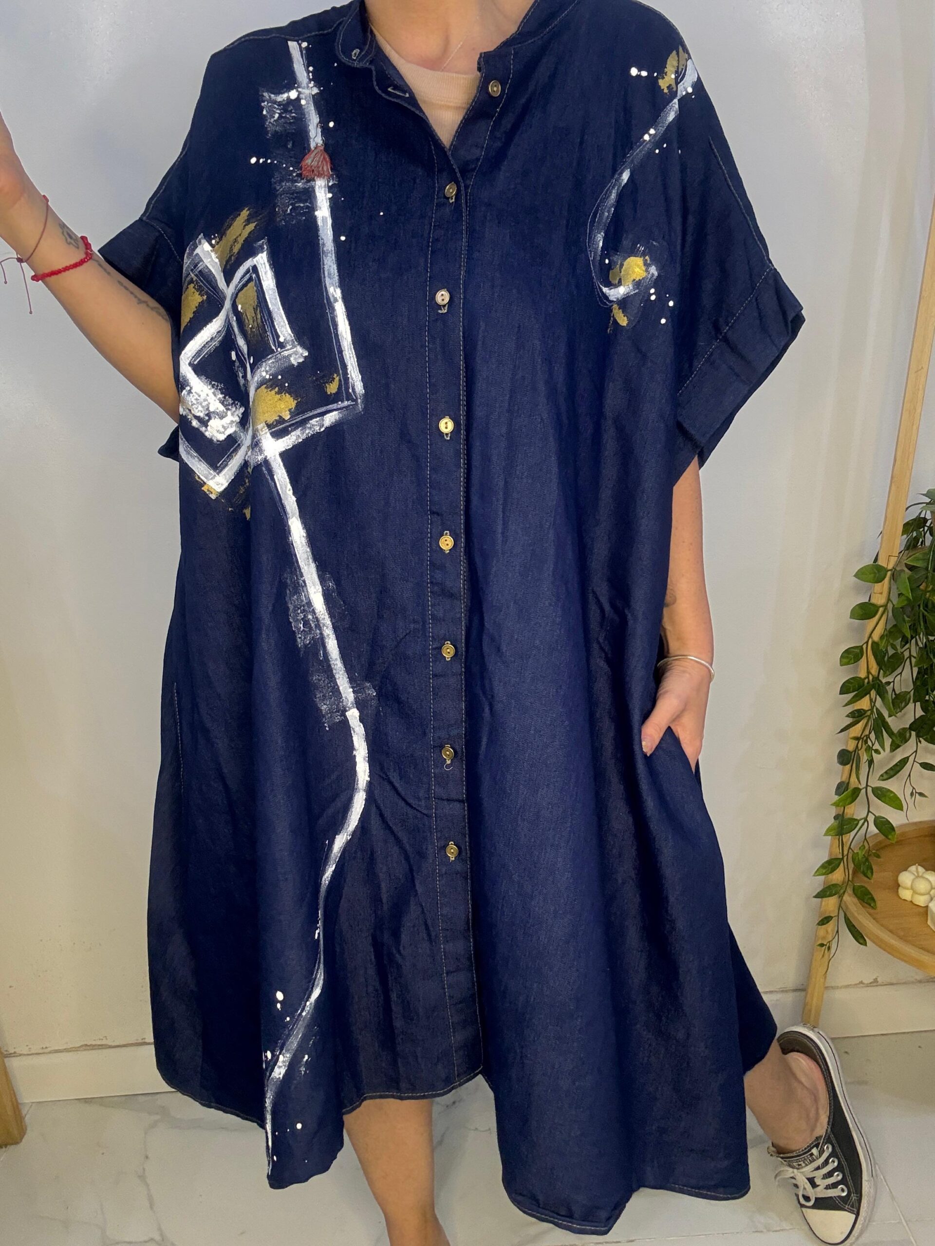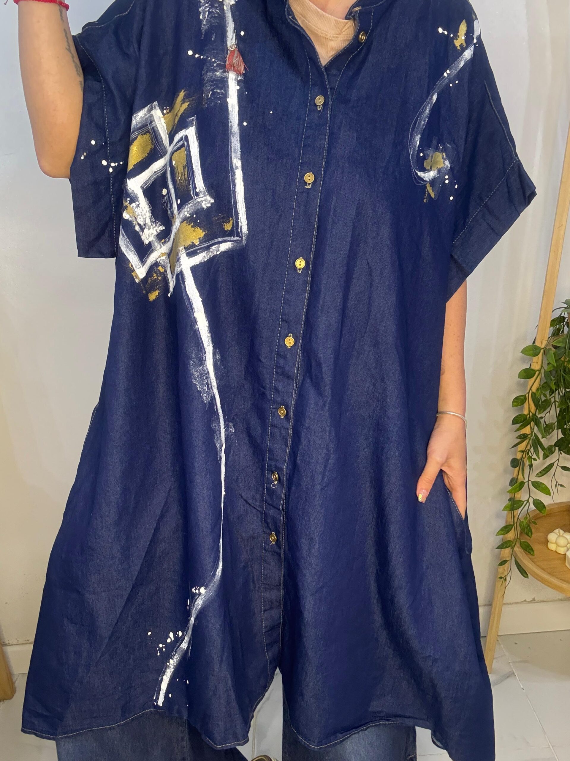 La podes usar cerrada o como complemento de un outfit 💙 tipo camisa cortando con LA PRENDA!! 💙el STOCK LIMITADO 🫢 Son prendas de diseño 💙no se hacen en cantidades industriales 🇦🇷🫶 es súper hermoso y diferente es amplio como se ve en las fotitos✔️ ES GRANDE AMPLIO Y LES VA A TODAS 🥰 la pintura le da un toque estético, diferente, acercándose a la exclusividad de la prenda en sí misma, y está hecha con colores que puedan ser combinados con diferentes prendas, tanto para usarla, como vestido o como camisola♥️