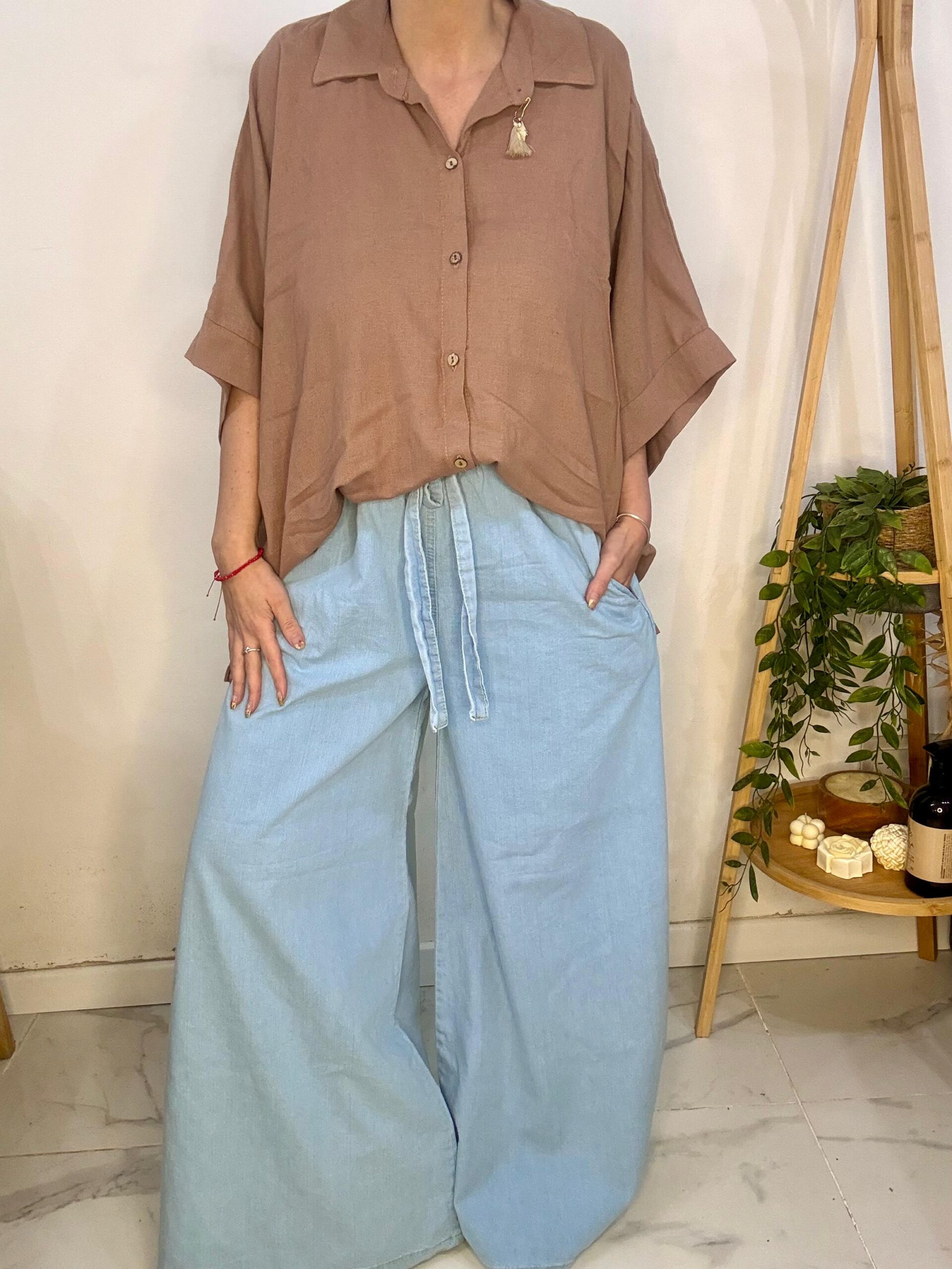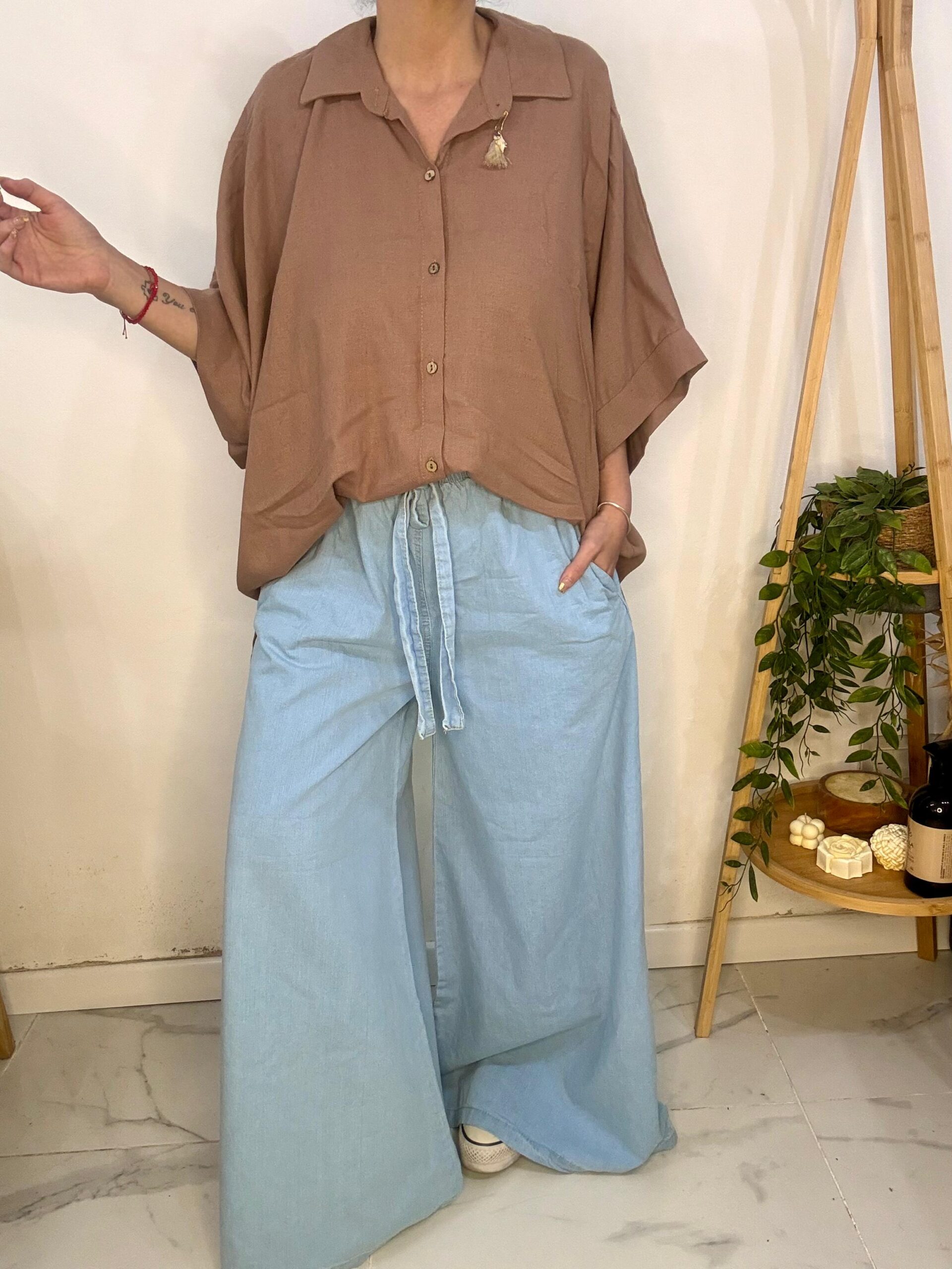 CAMISOLA de lino elasTizado (👉🏻es elastizada 💪🏻) tiene una caída tremenda 💪🏻 💜es súper súper amplia 💜 lo podes usar como camisa como kimono o como camisola 🔥🔥Nuestros talles son lo más anchos reales y súper copados con una caida que la rompe 🤍te contamos como DATO IMPORTANTE🫶 podes darle diferentes usos 🤍son sueltas por ende los talles no son tan Exactos♥️la tela no es dura por ende queda re lindo tiene linda caída y tiene bolsillos🌈💜lo podes hacer monocromo 🤍o mandarle algún color que corte🤍 se puede combinar con el color abajo podes combinarla con otras prendas 👉🏻en liso 🤍 tene en cuenta el Bello detalle de su tela es lo más 🔥sirve para darle loockete de día y de noche 🙏🏼♥️ es una camisola con caída no duro por ende esta tremenda .