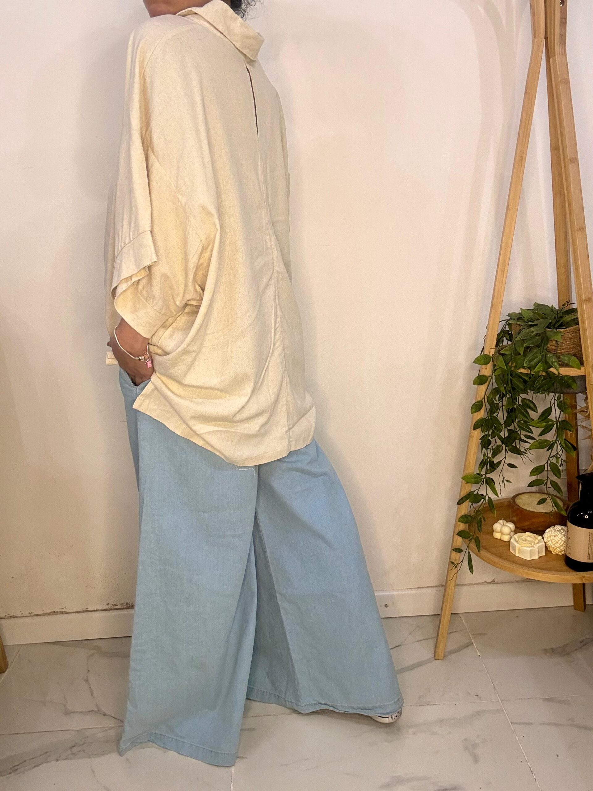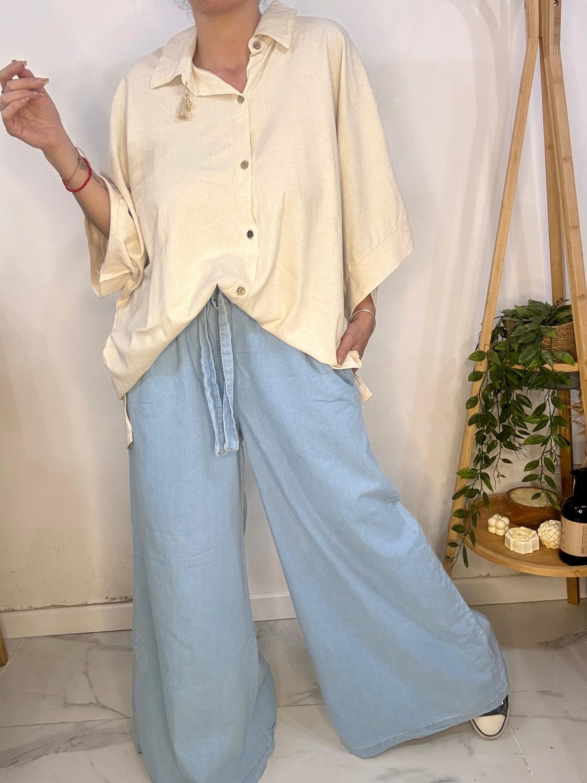 CAMISOLA de lino elasTizado (👉🏻es elastizada 💪🏻) tiene una caída tremenda 💪🏻 💜es súper súper amplia 💜 lo podes usar como camisa como kimono o como camisola 🔥🔥Nuestros talles son lo más anchos reales y súper copados con una caida que la rompe 🤍te contamos como DATO IMPORTANTE🫶 podes darle diferentes usos 🤍son sueltas por ende los talles no son tan Exactos♥️la tela no es dura por ende queda re lindo tiene linda caída y tiene bolsillos🌈💜lo podes hacer monocromo 🤍o mandarle algún color que corte🤍 se puede combinar con el color abajo podes combinarla con otras prendas 👉🏻en liso 🤍 tene en cuenta el Bello detalle de su tela es lo más 🔥sirve para darle loockete de día y de noche 🙏🏼♥️ es una camisola con caída no duro por ende esta tremenda .