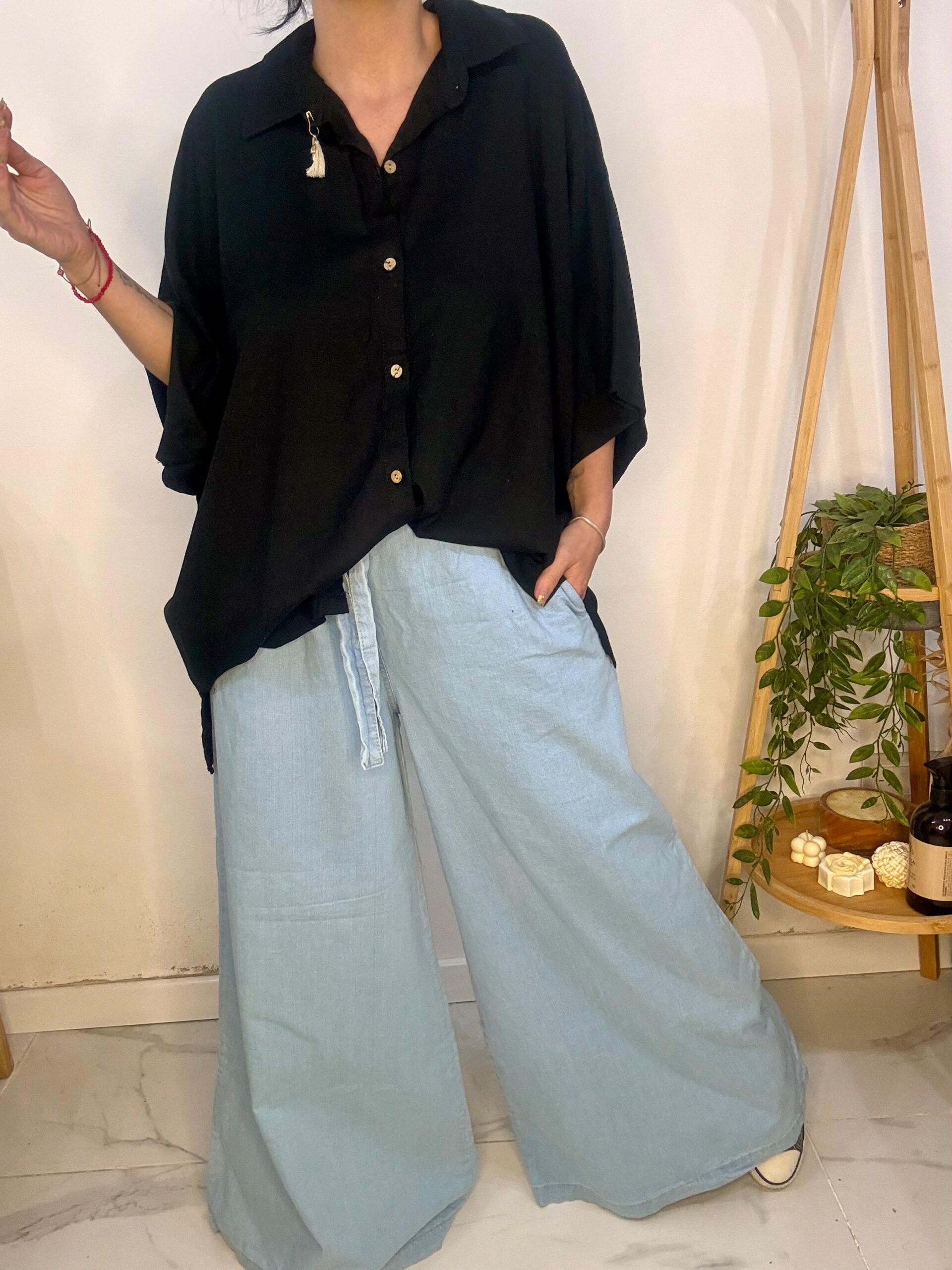 CAMISOLA de lino elasTizado (👉🏻es elastizada 💪🏻) tiene una caída tremenda 💪🏻 💜es súper súper amplia 💜 lo podes usar como camisa como kimono o como camisola 🔥🔥Nuestros talles son lo más anchos reales y súper copados con una caida que la rompe 🤍te contamos como DATO IMPORTANTE🫶 podes darle diferentes usos 🤍son sueltas por ende los talles no son tan Exactos♥️la tela no es dura por ende queda re lindo tiene linda caída y tiene bolsillos🌈💜lo podes hacer monocromo 🤍o mandarle algún color que corte🤍 se puede combinar con el color abajo podes combinarla con otras prendas 👉🏻en liso 🤍 tene en cuenta el Bello detalle de su tela es lo más 🔥sirve para darle loockete de día y de noche 🙏🏼♥️ es una camisola con caída no duro por ende esta tremenda .