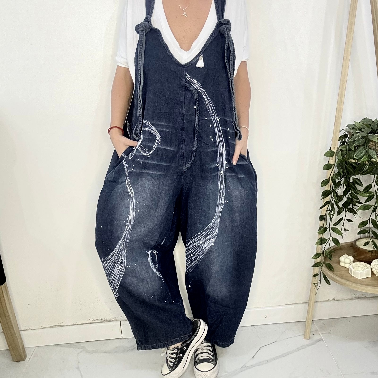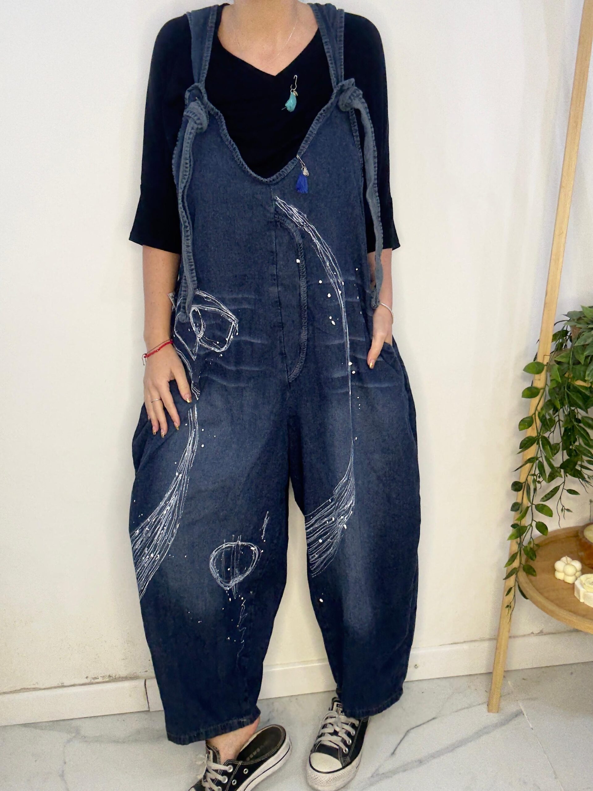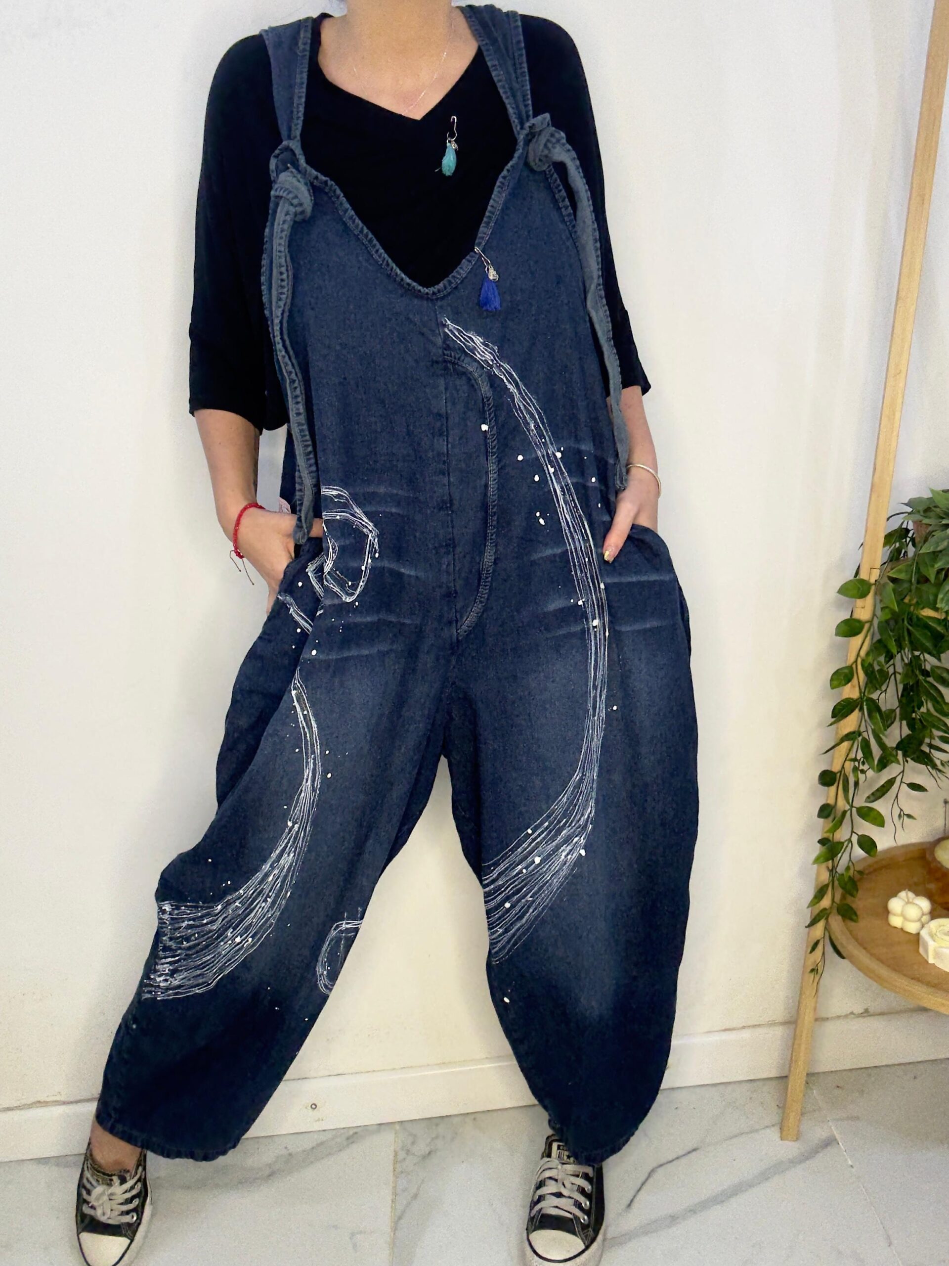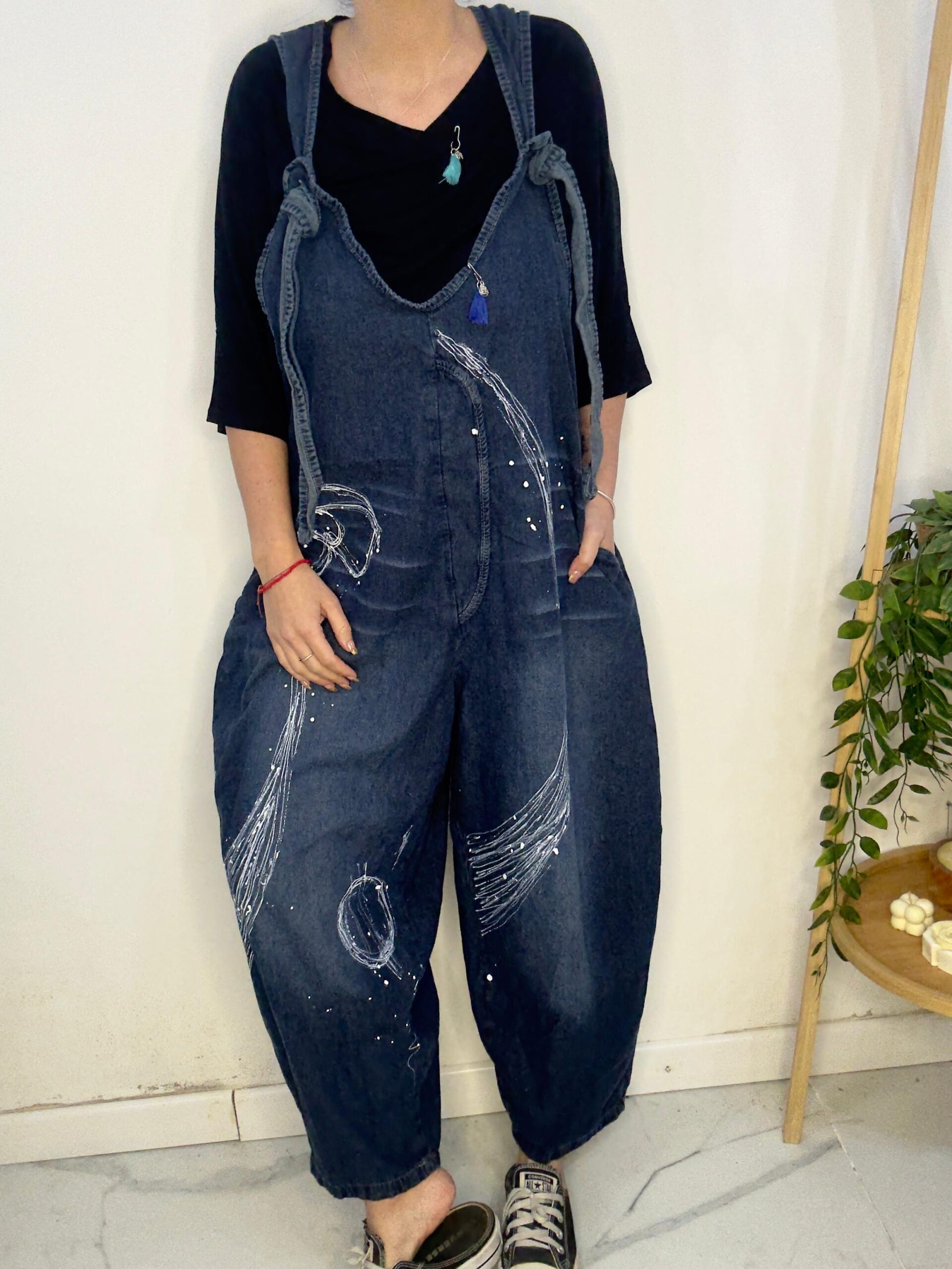 Mono PINTADO A MANO 🤍 diseño artesanal hecho uno por uno ☝🏼 🎨 es de Jean súper cómodo y canchero es un mono amplio y súper suelto 🐵tiene tiras regulables lo q permite regular el largo ♥️