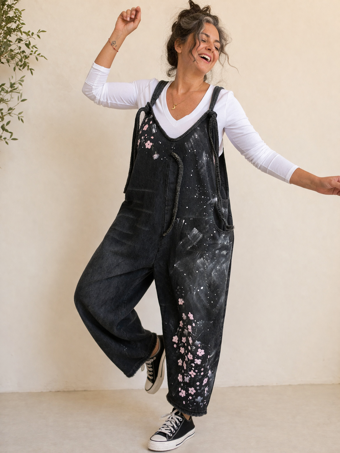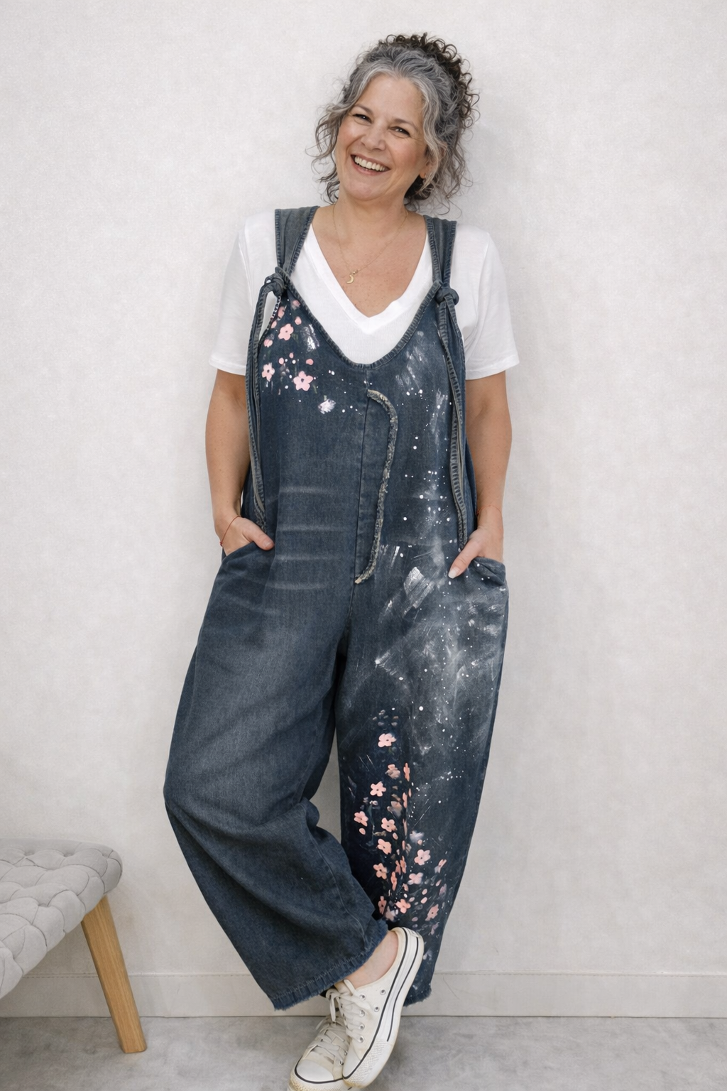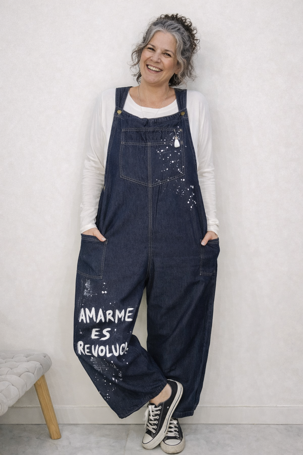 Mono PINTADO A MANO 🤍 diseño artesanal hecho uno por uno ☝🏼 🎨 es de Jean súper cómodo y canchero es un mono amplio y súper suelto 🐵tiene tiras regulables lo q permite regular el largo ♥️