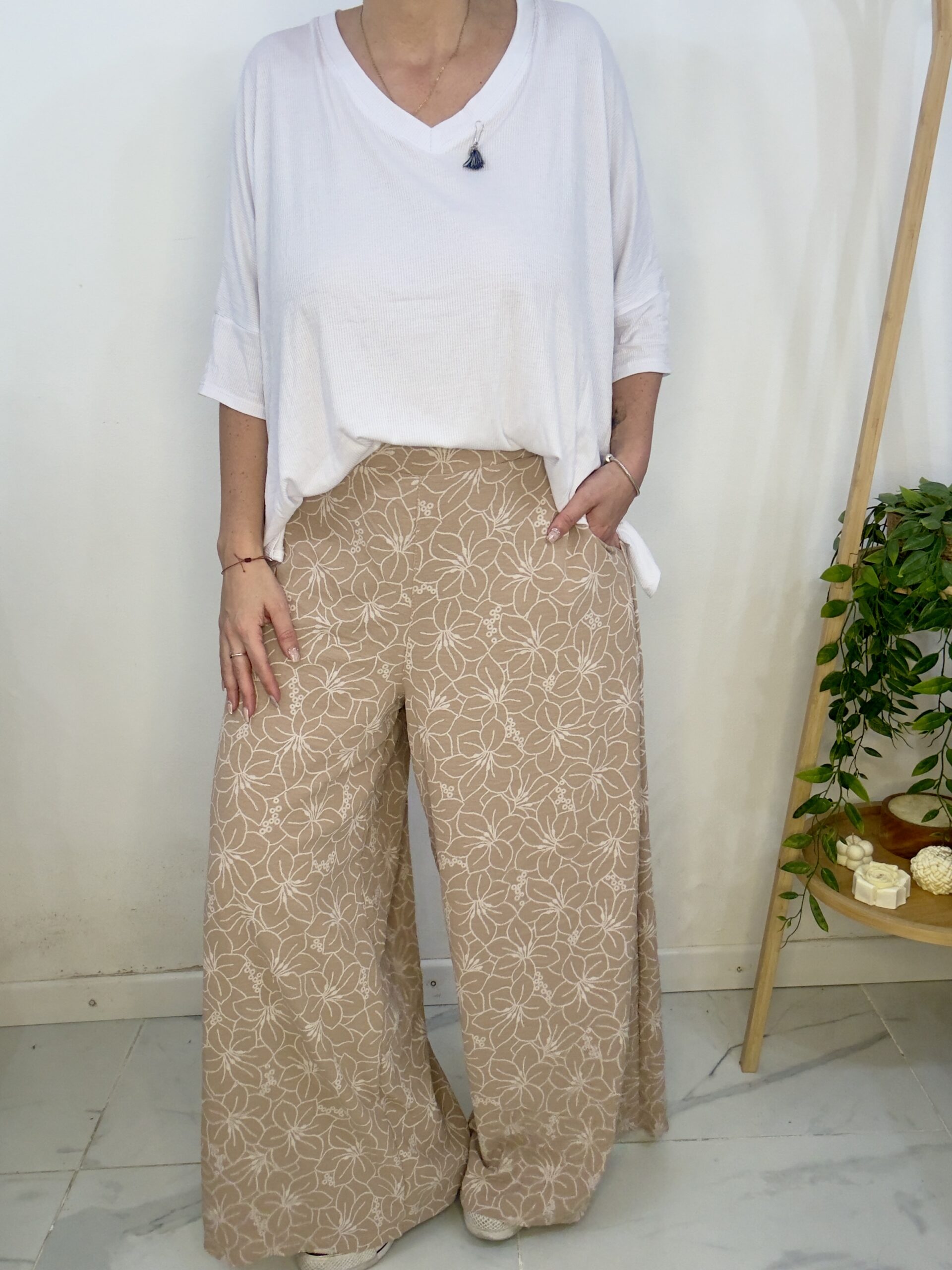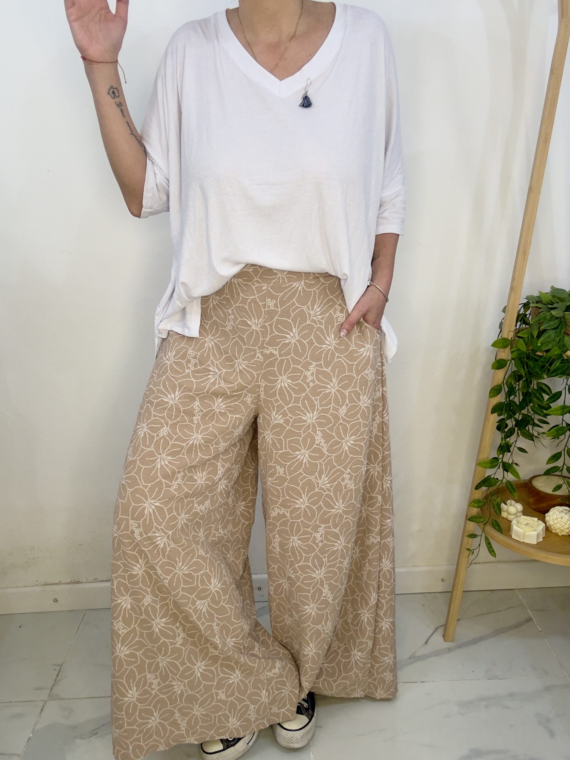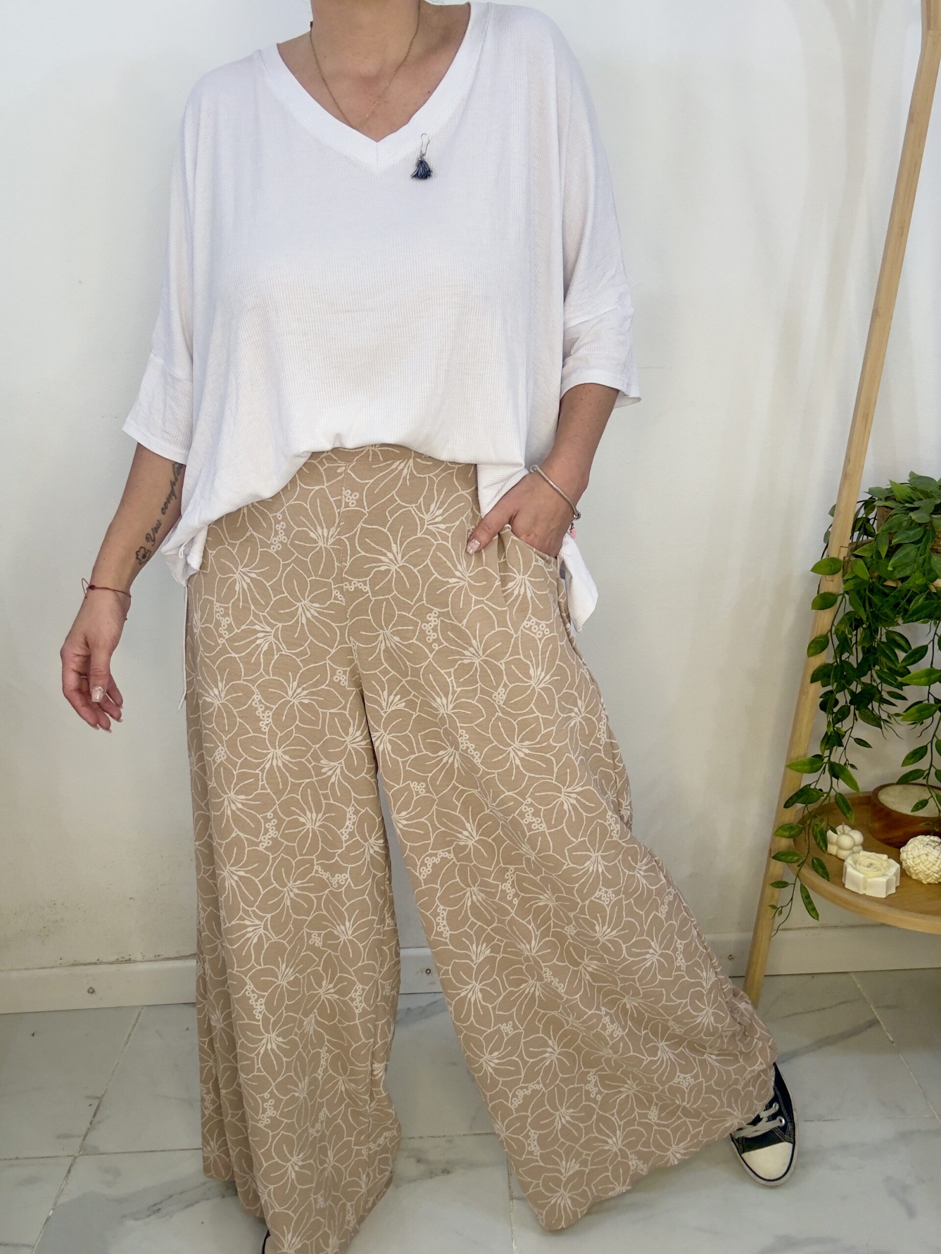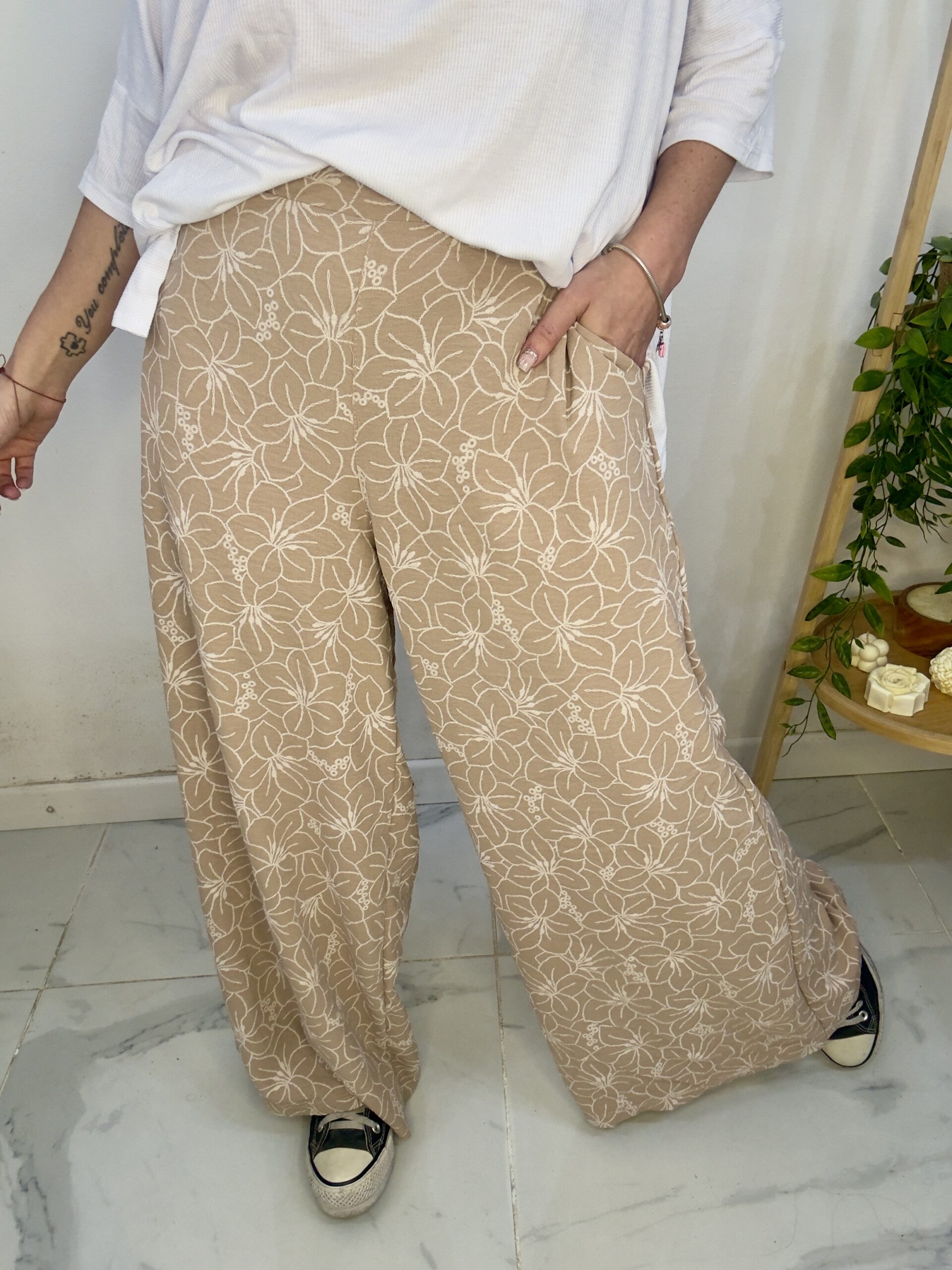 Pantalón palazo de tela cey estampado tiene una calidad tremenda 😍súper  amplio   con una caida que la rompe  🤍lo bueno es que el elástico no completa toda la cintura es solo en la parte de atrás lo que te da la posibilidad de amoldarse a más de un talle pero adelante no te ajusta la panza 🙏🏼