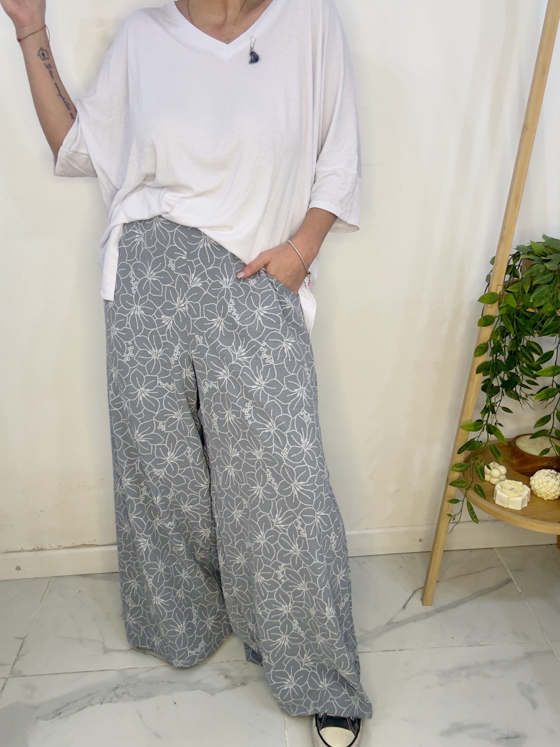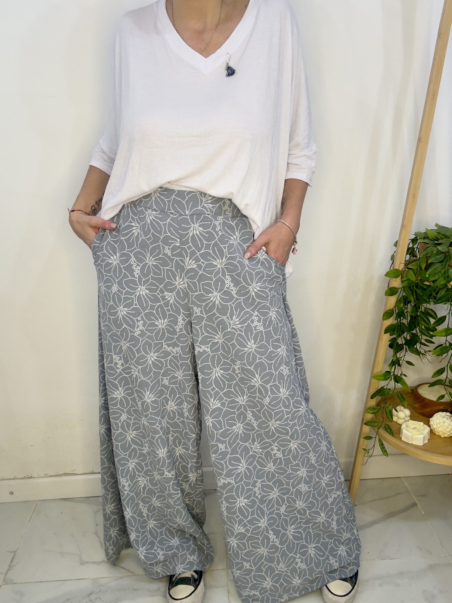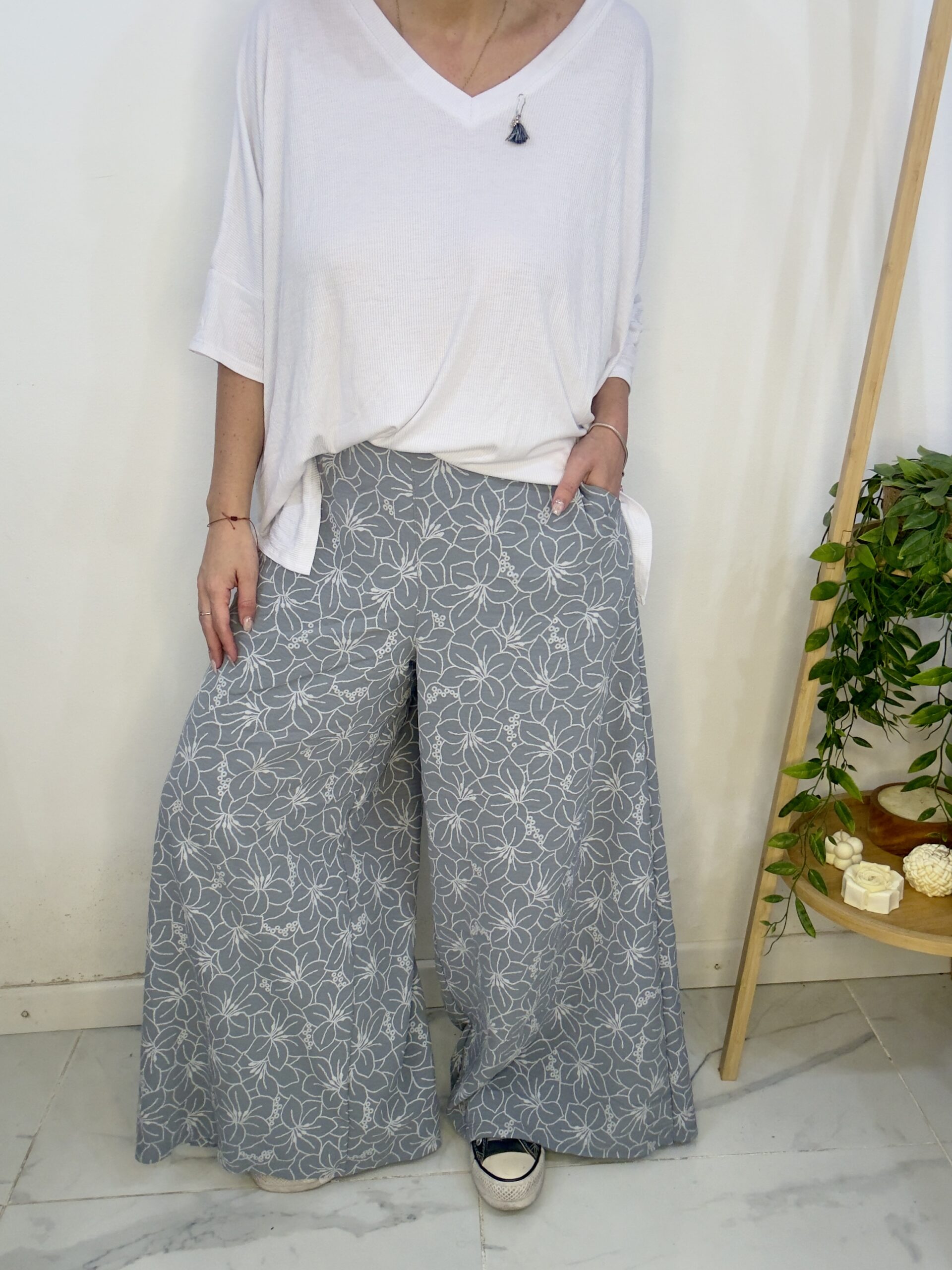 Pantalón palazo de tela cey estampado tiene una calidad tremenda 😍súper amplio con una caida que la rompe 🤍lo bueno es que el elástico no completa toda la cintura es solo en la parte de atrás lo que te da la posibilidad de amoldarse a más de un talle pero adelante no te ajusta la panza 🙏🏼