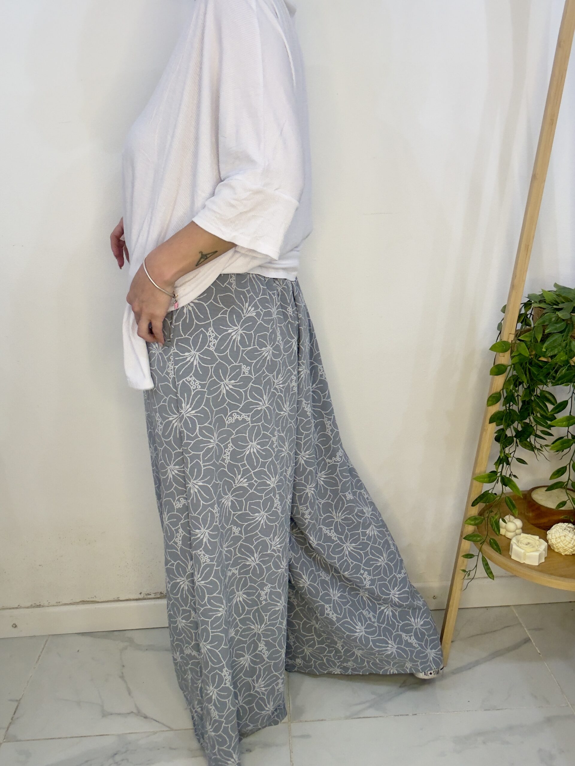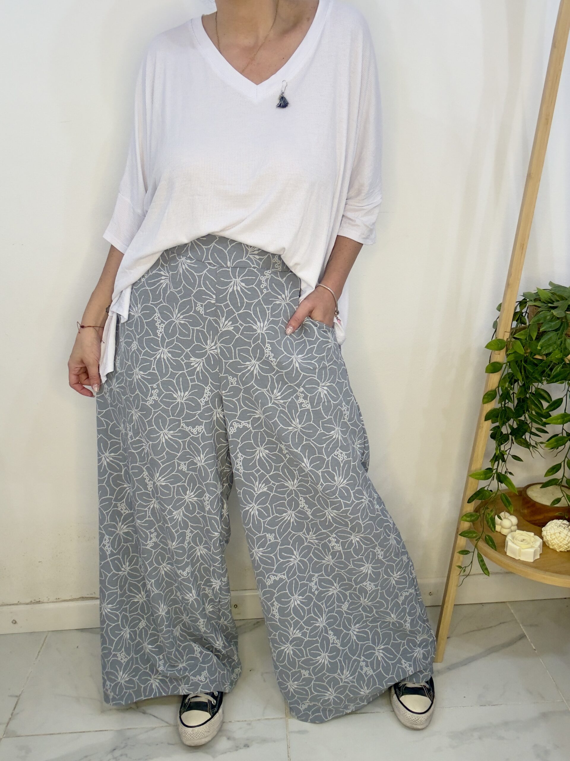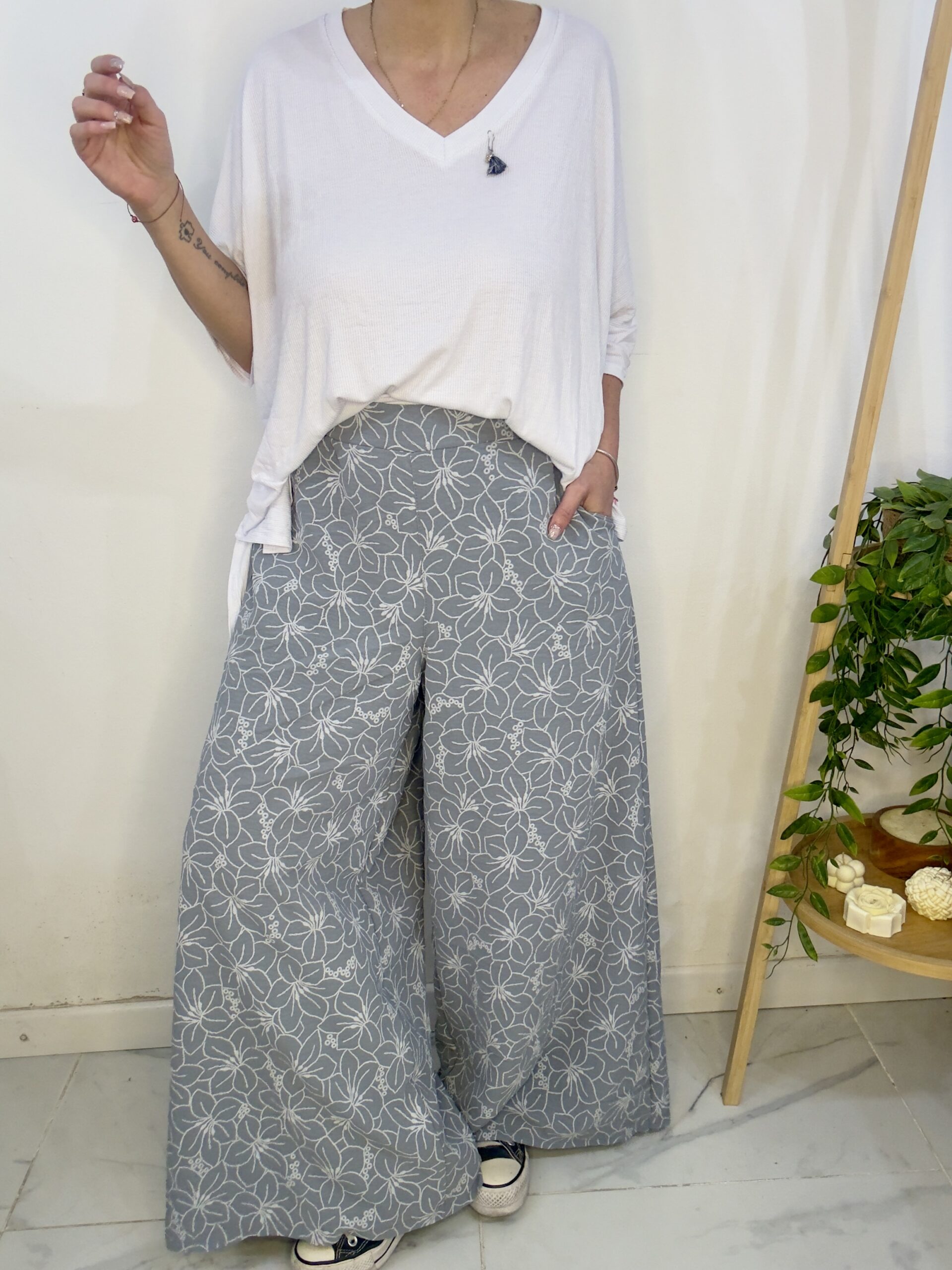 Pantalón palazo de tela cey estampado tiene una calidad tremenda 😍súper amplio con una caida que la rompe 🤍lo bueno es que el elástico no completa toda la cintura es solo en la parte de atrás lo que te da la posibilidad de amoldarse a más de un talle pero adelante no te ajusta la panza 🙏🏼