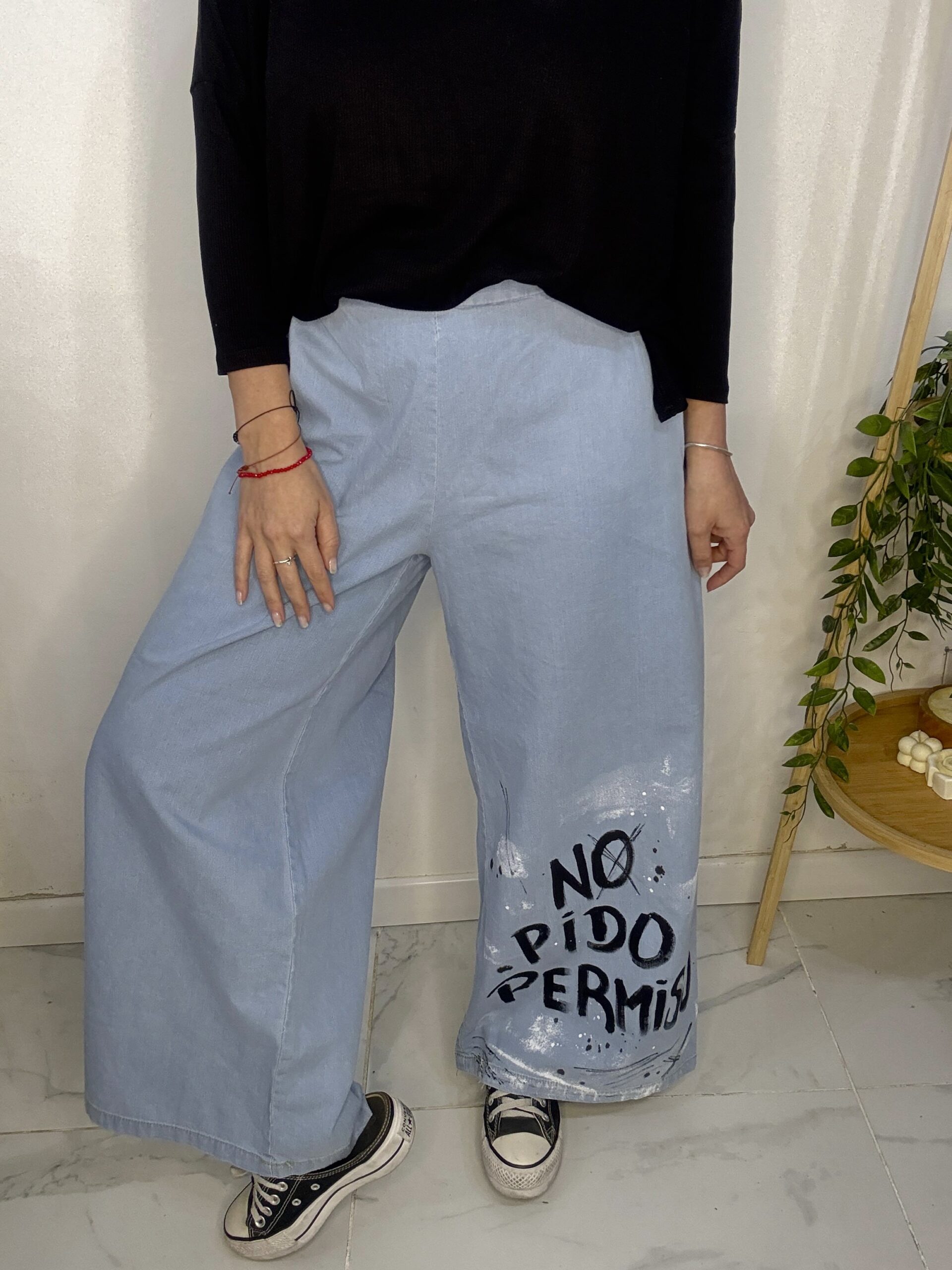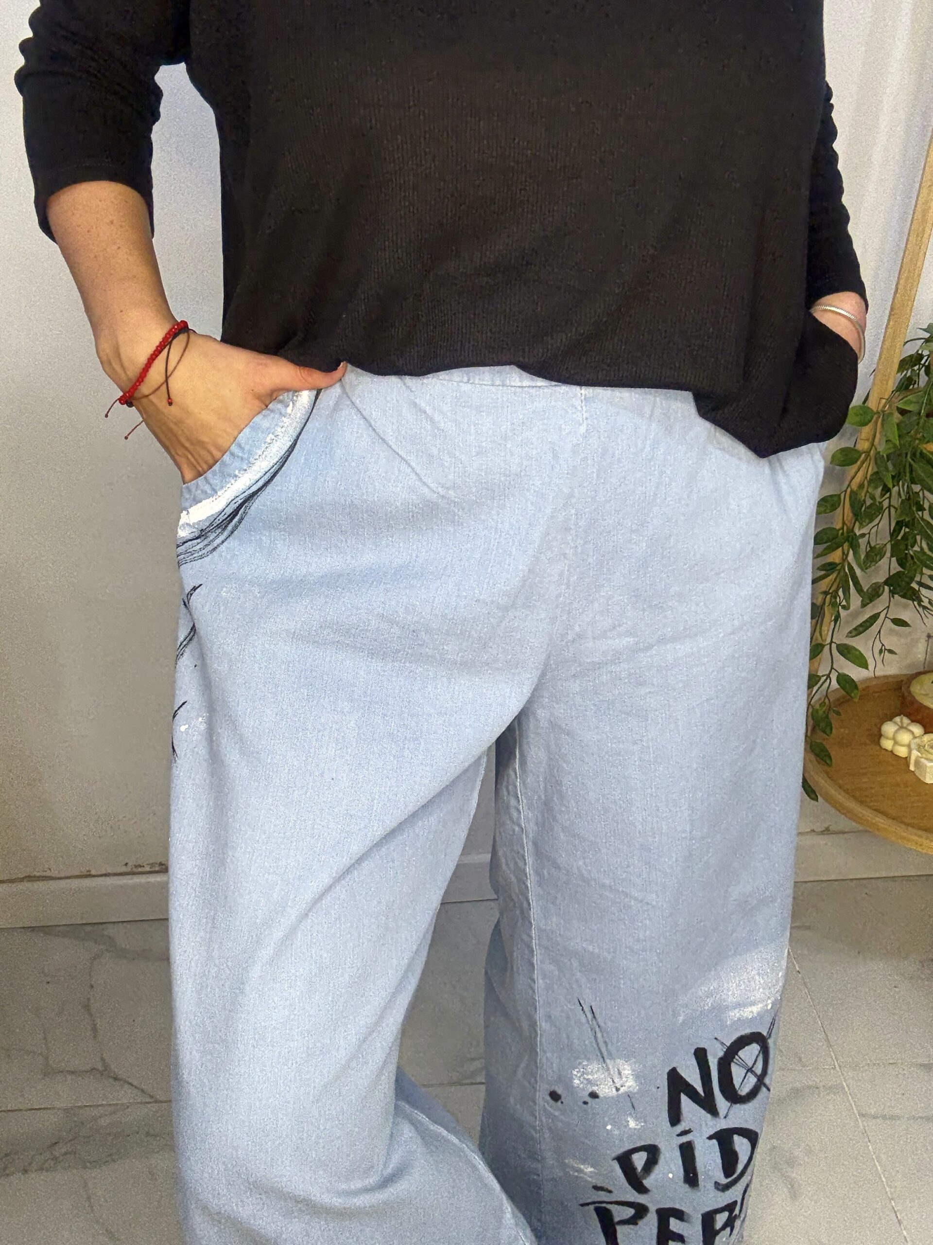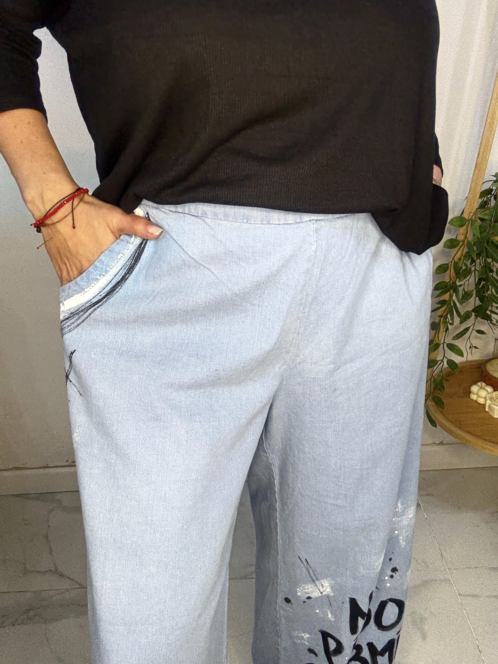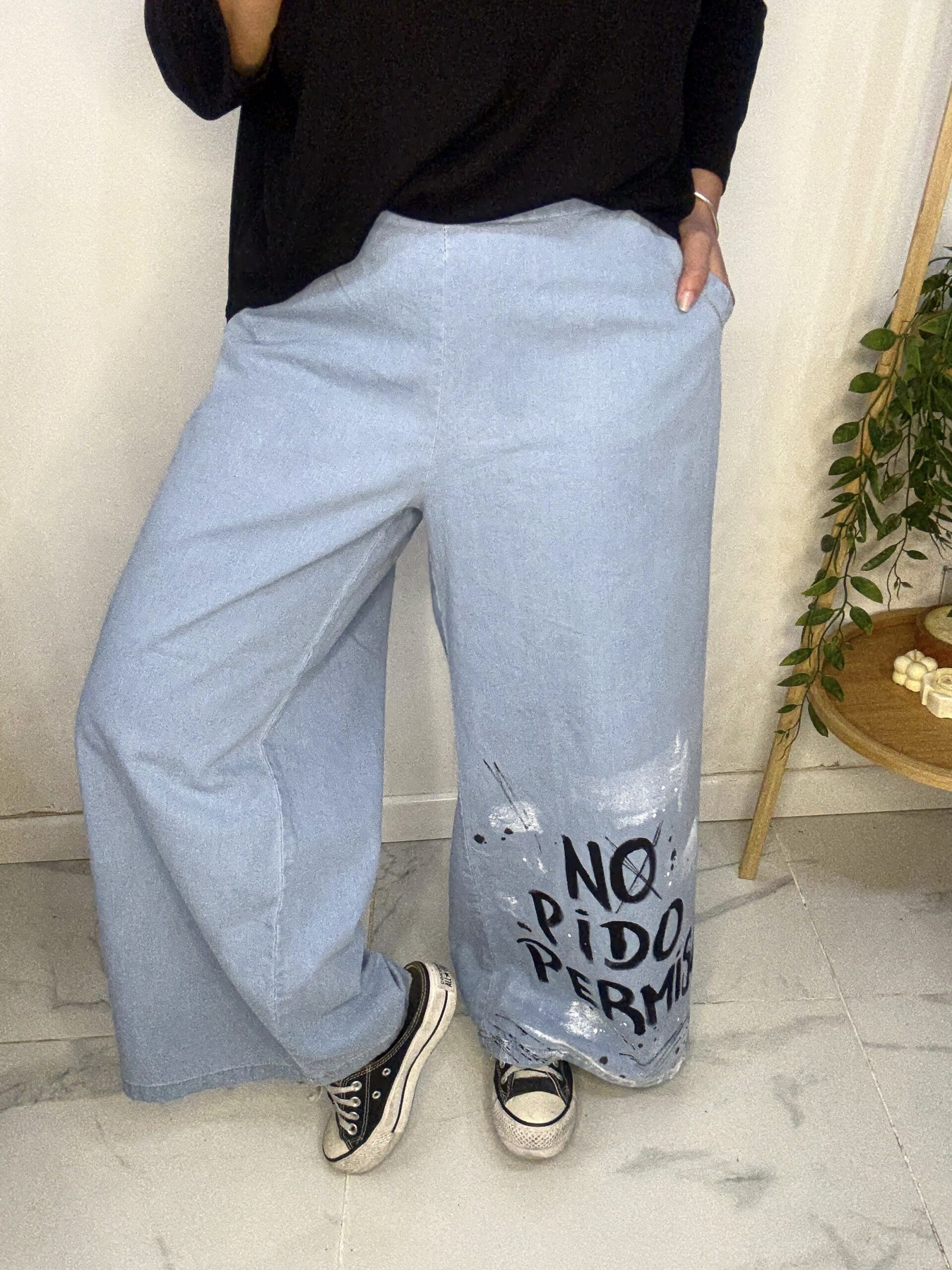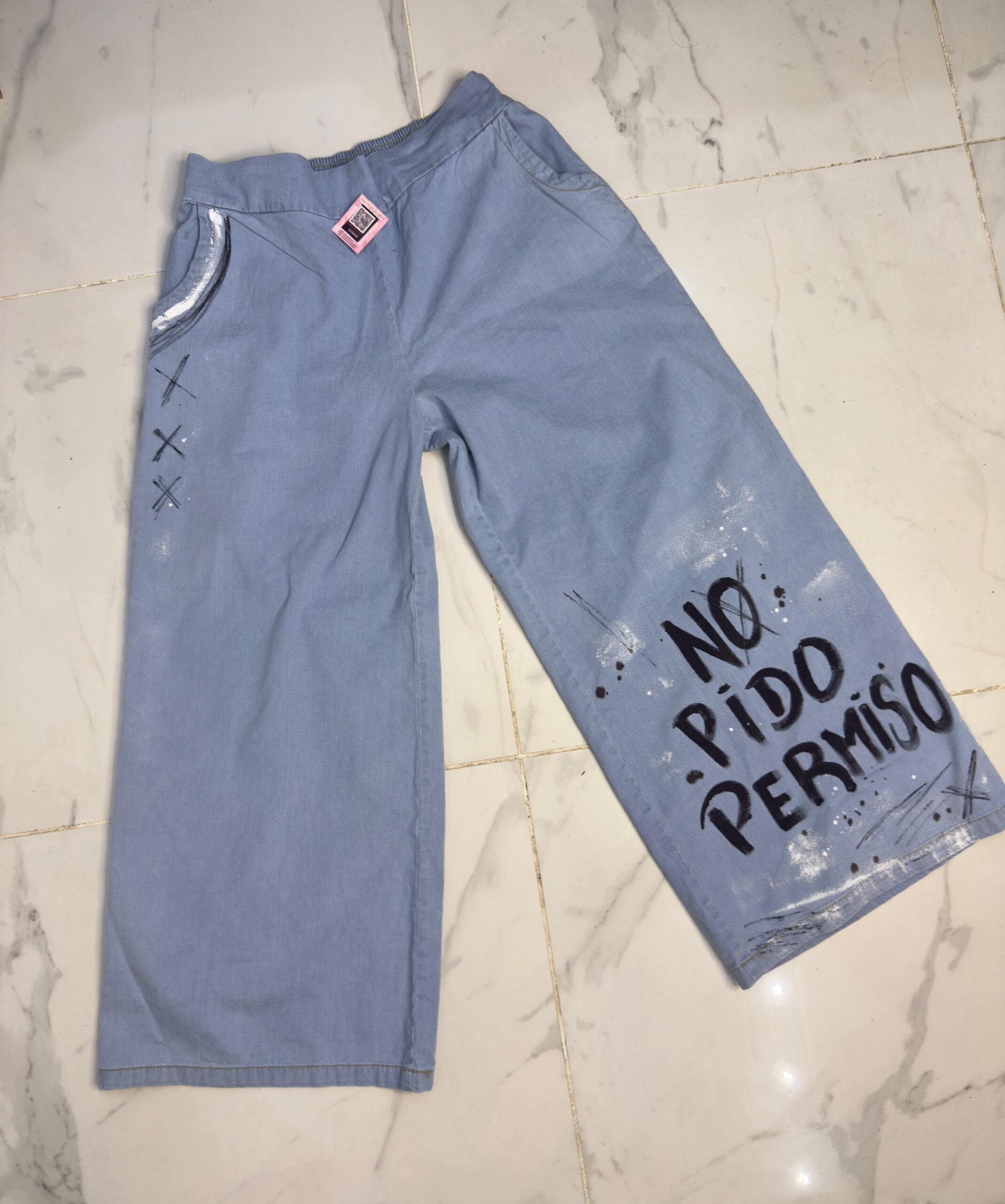 Pantalón de JEAN pintado a mano con un diseño que la rompe ♥️🥰súper amplio Son sueltos por ende los talles no son tan Exactos♥️♥️ tienen detalles súper hermosos como la parte inferior LE DA UNA ONDA DIVINA 🔥tiene bolsillos lo que siempre lo hace super canchero 🔥