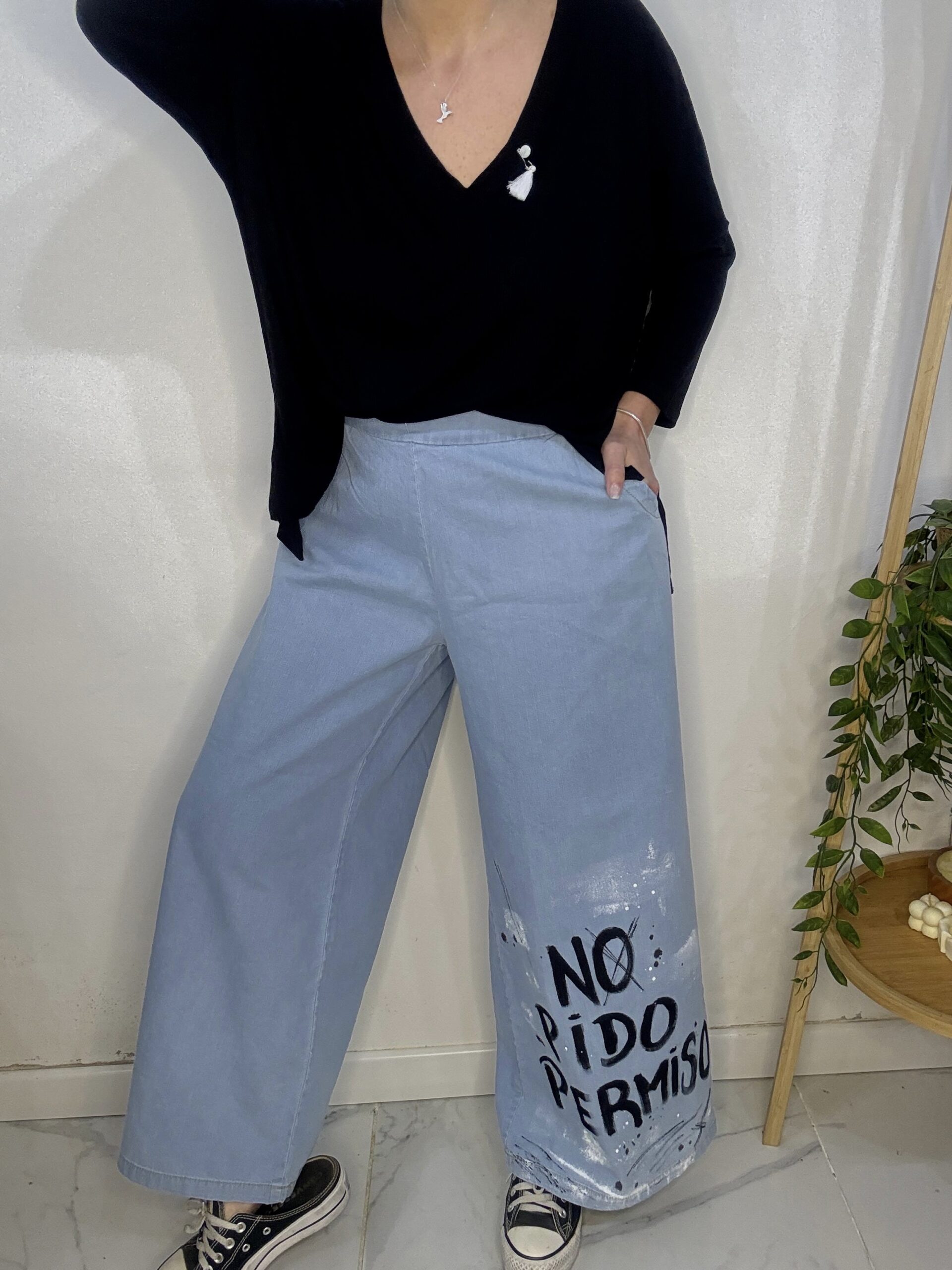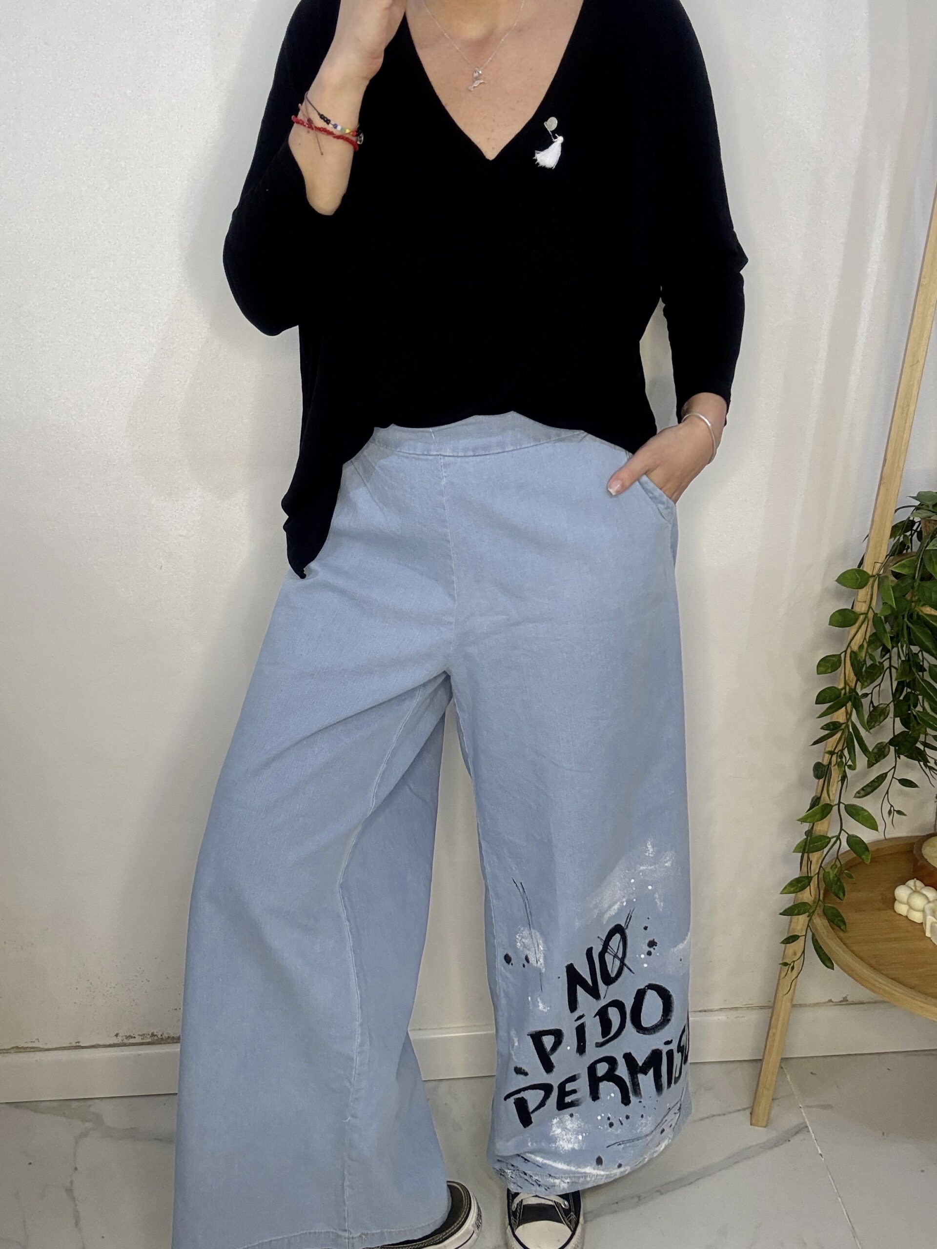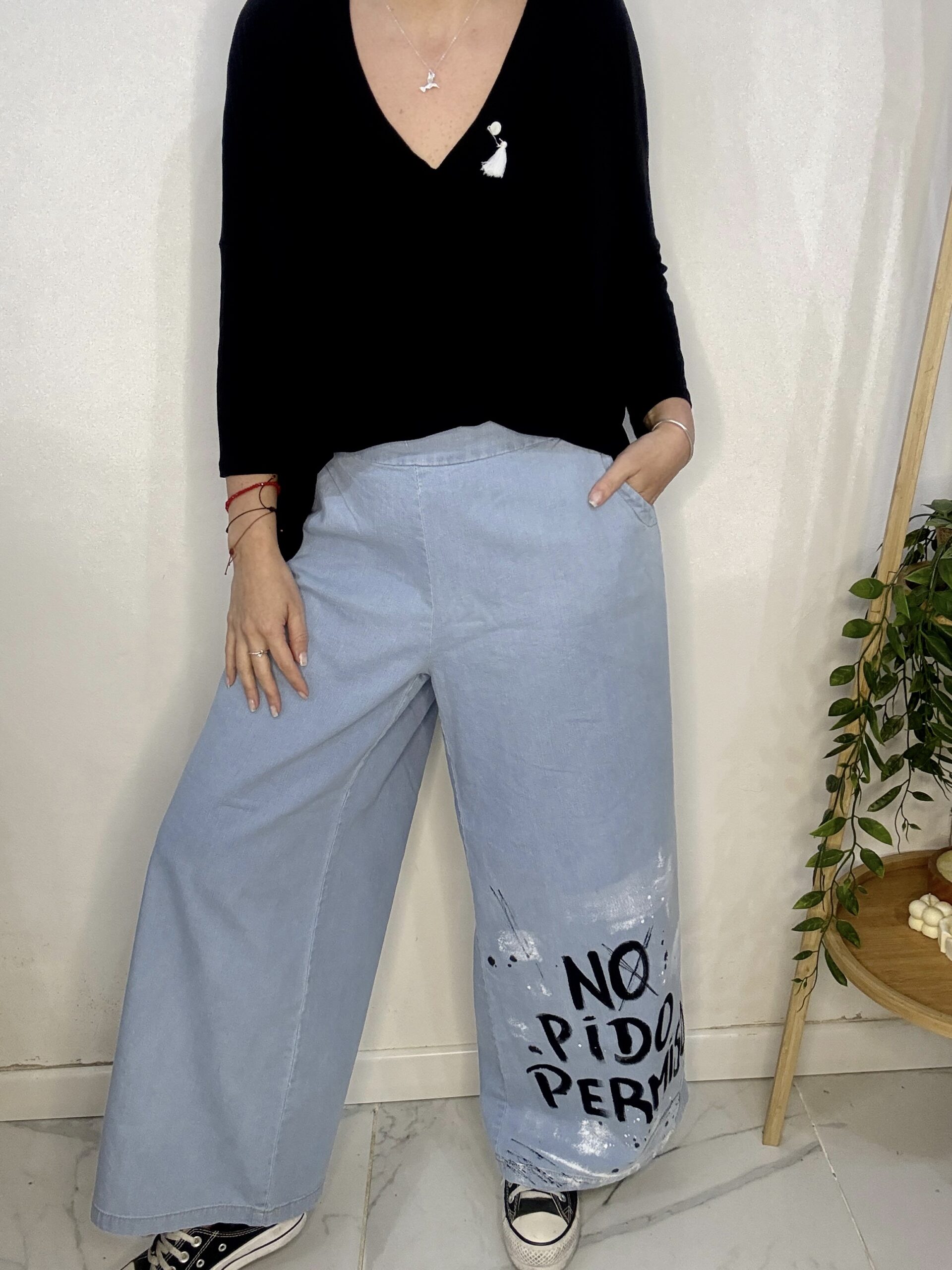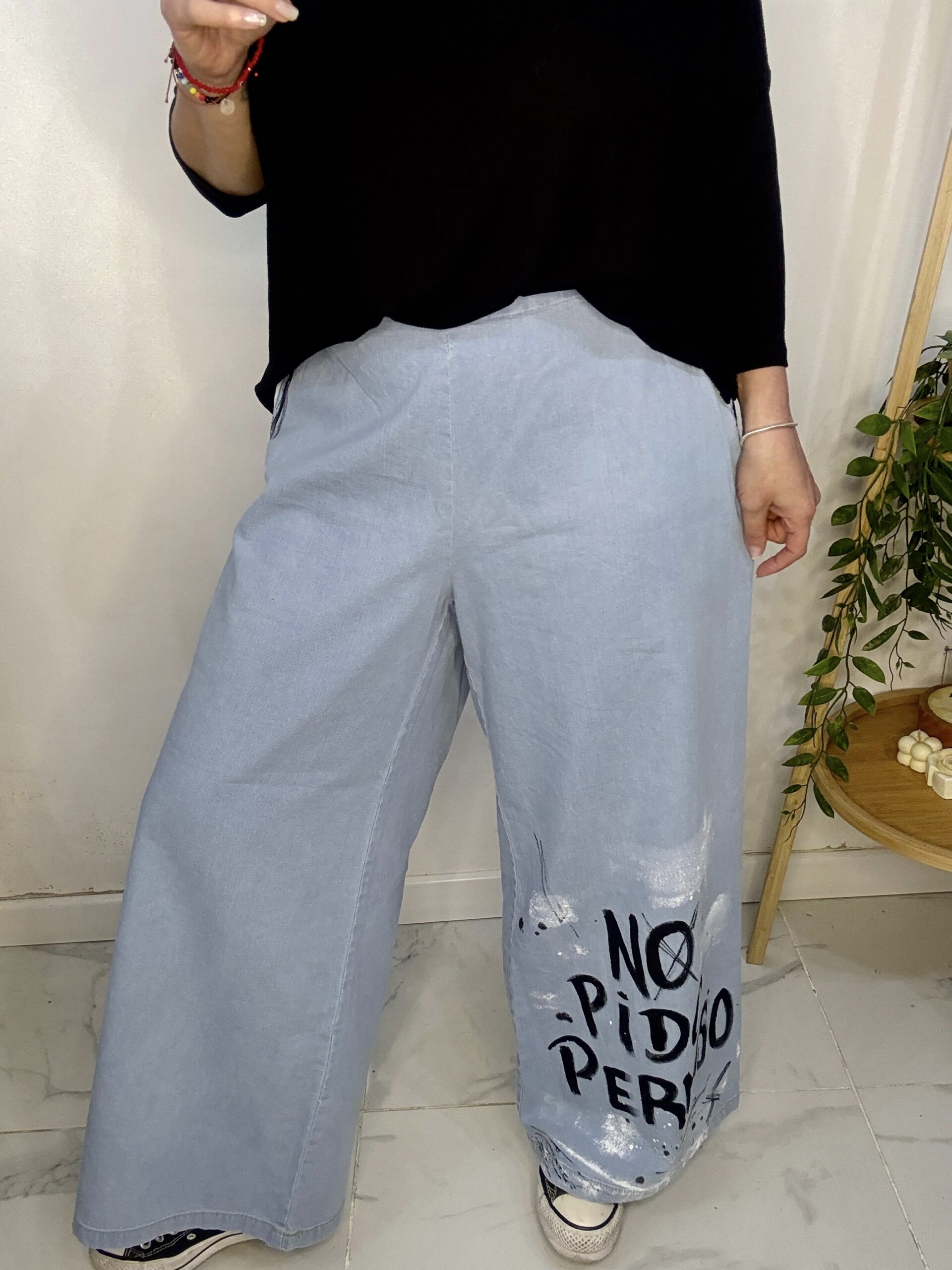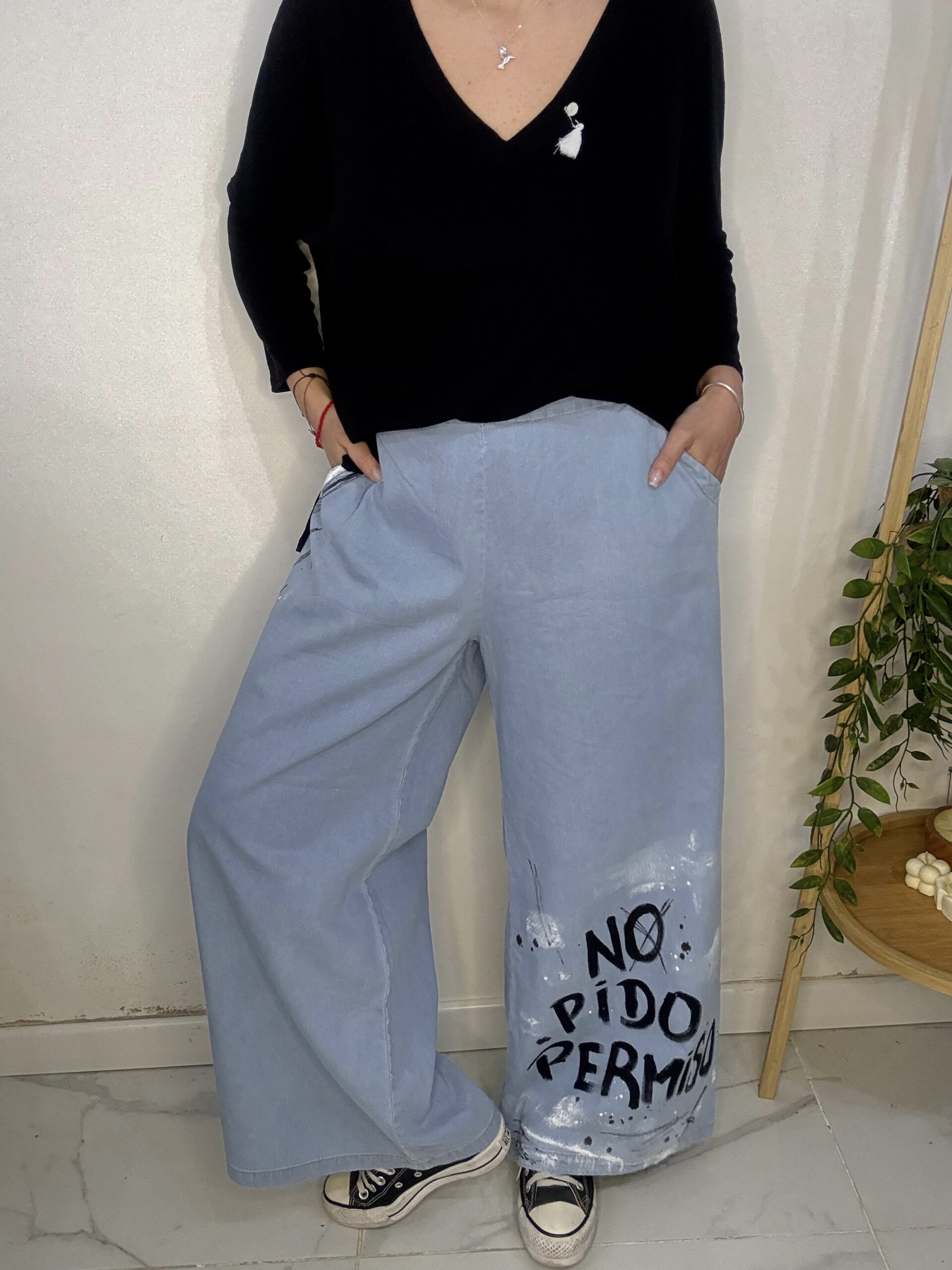 Pantalón de JEAN pintado a mano con un diseño que la rompe ♥️🥰súper amplio Son sueltos por ende los talles no son tan Exactos♥️♥️ tienen detalles súper hermosos como la parte inferior LE DA UNA ONDA DIVINA 🔥tiene bolsillos lo que siempre lo hace super canchero 🔥