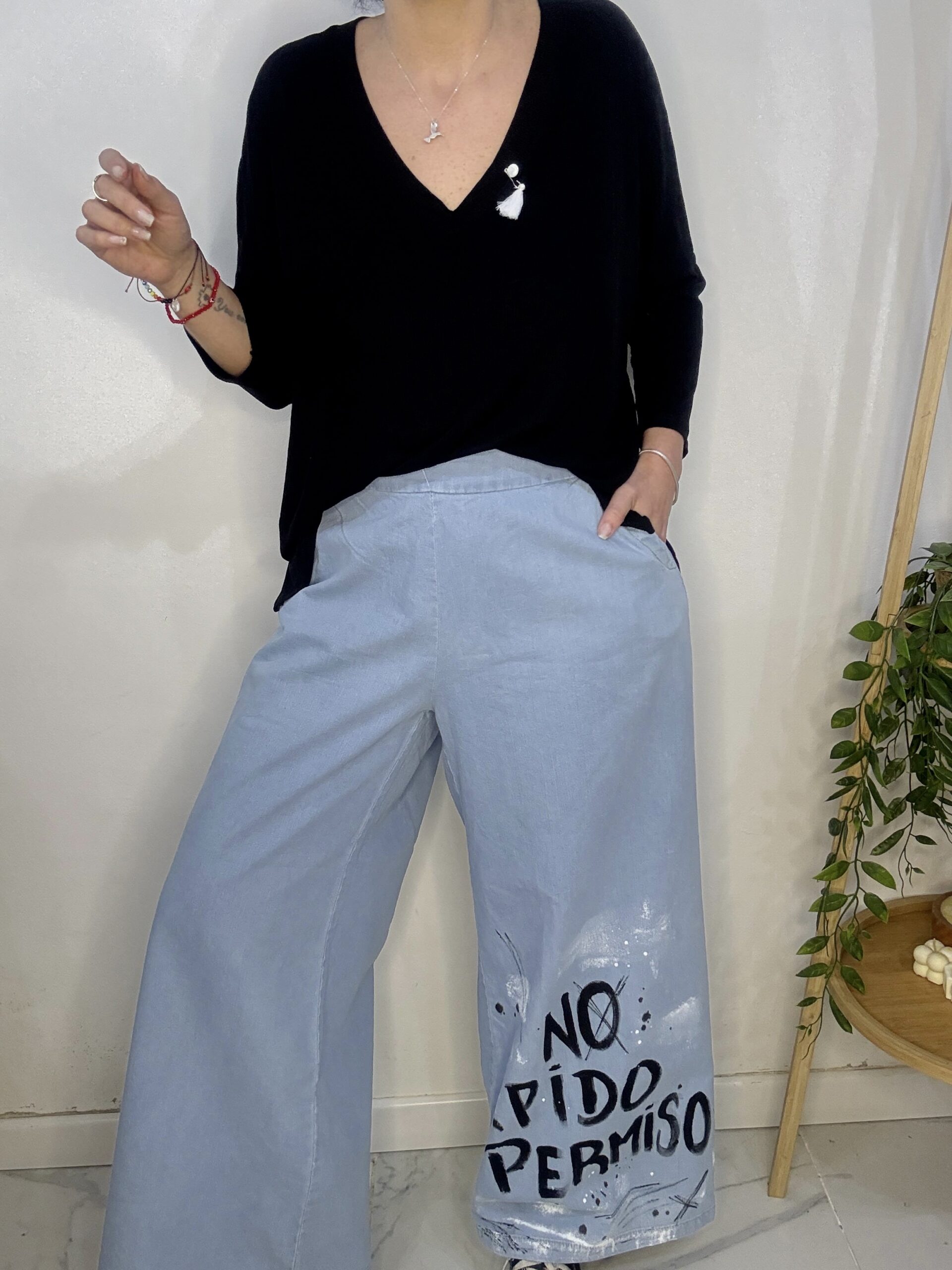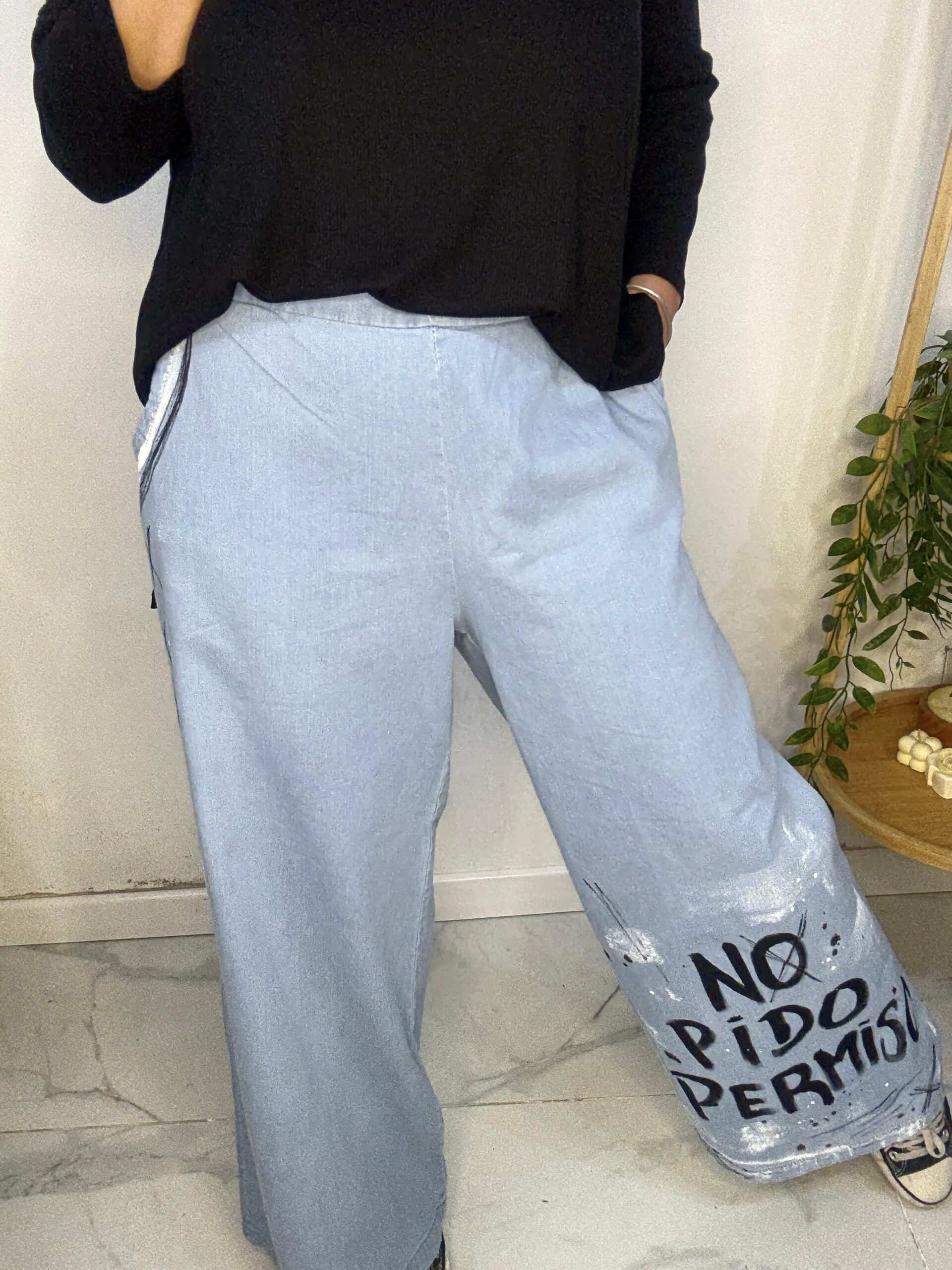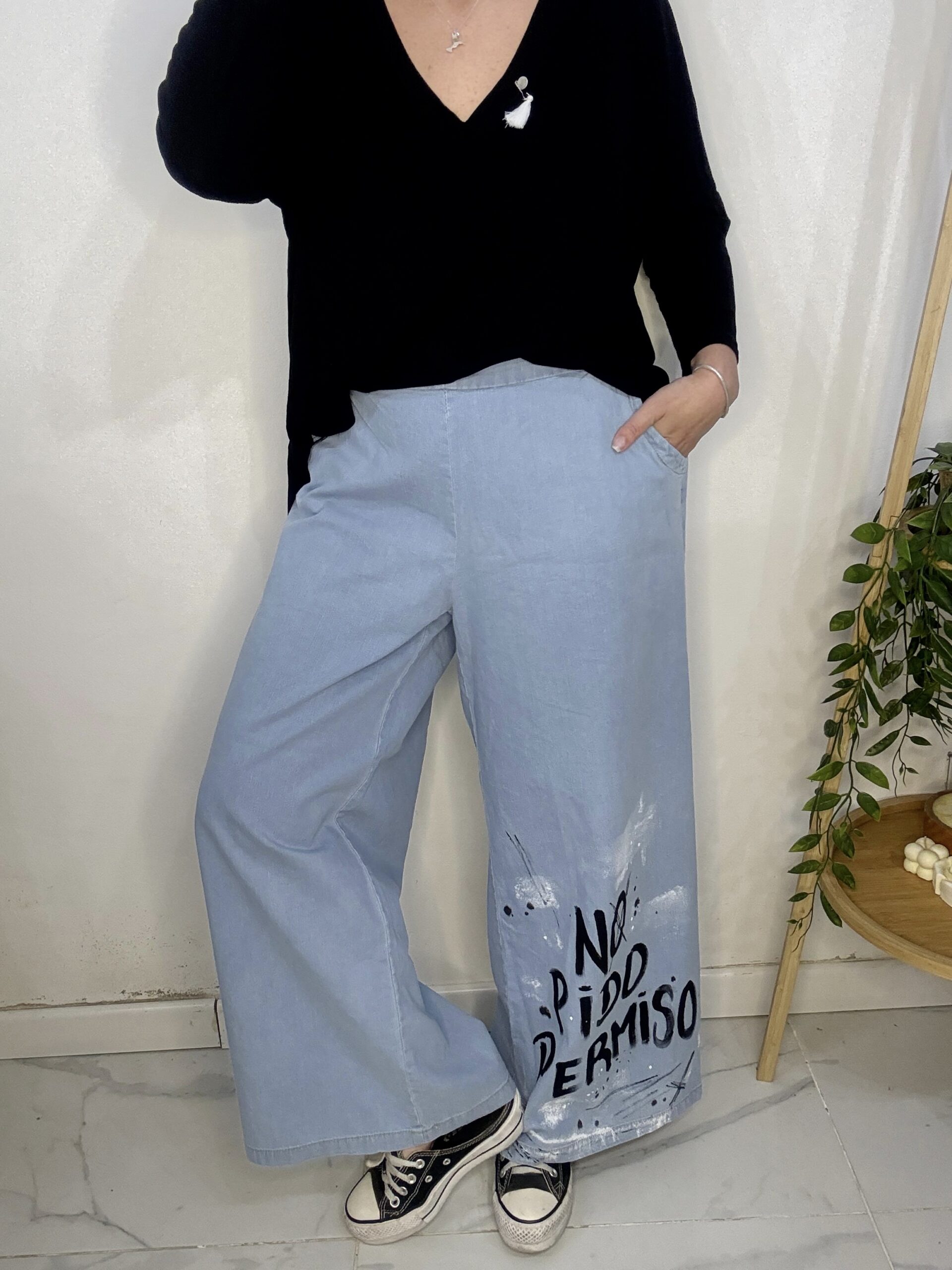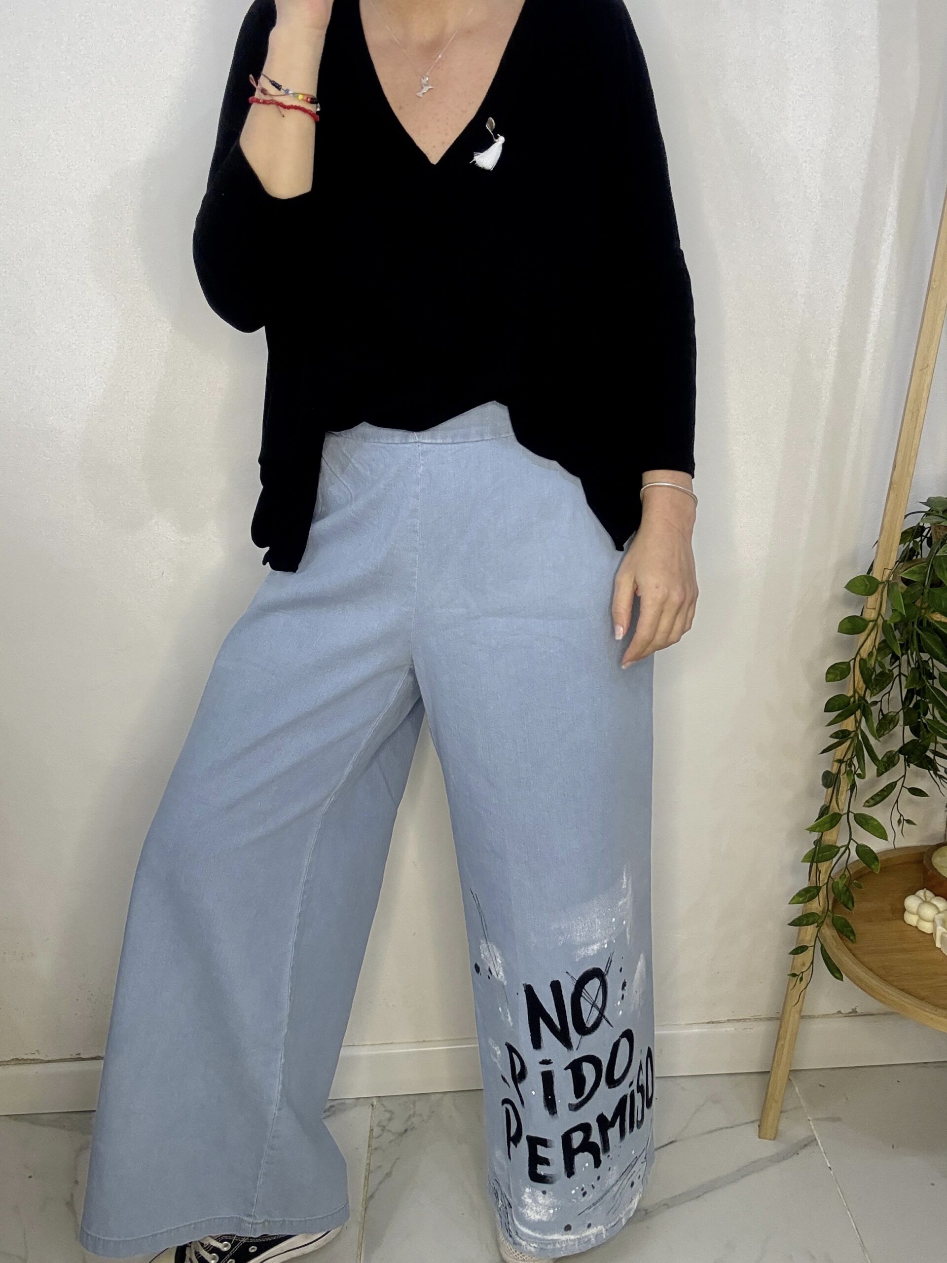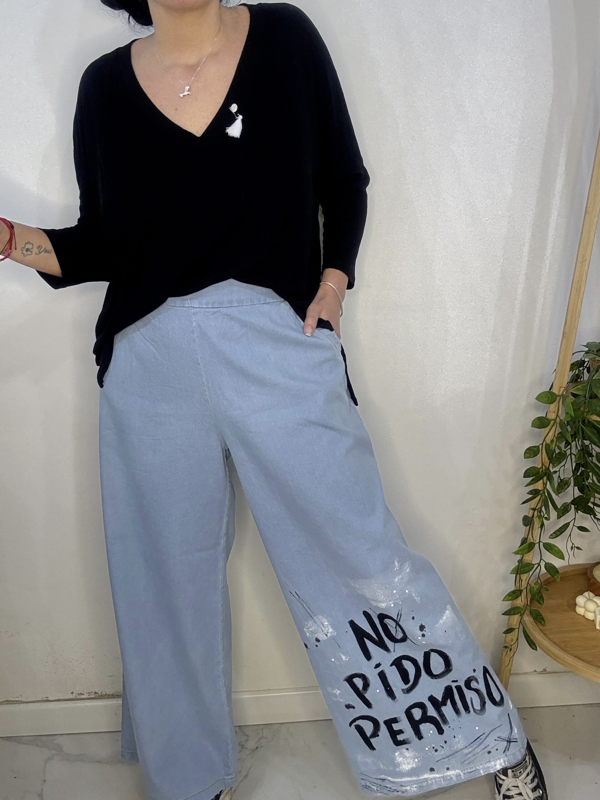 Pantalón de JEAN pintado a mano con un diseño que la rompe ♥️🥰súper amplio Son sueltos por ende los talles no son tan Exactos♥️♥️ tienen detalles súper hermosos como la parte inferior LE DA UNA ONDA DIVINA 🔥tiene bolsillos lo que siempre lo hace super canchero 🔥