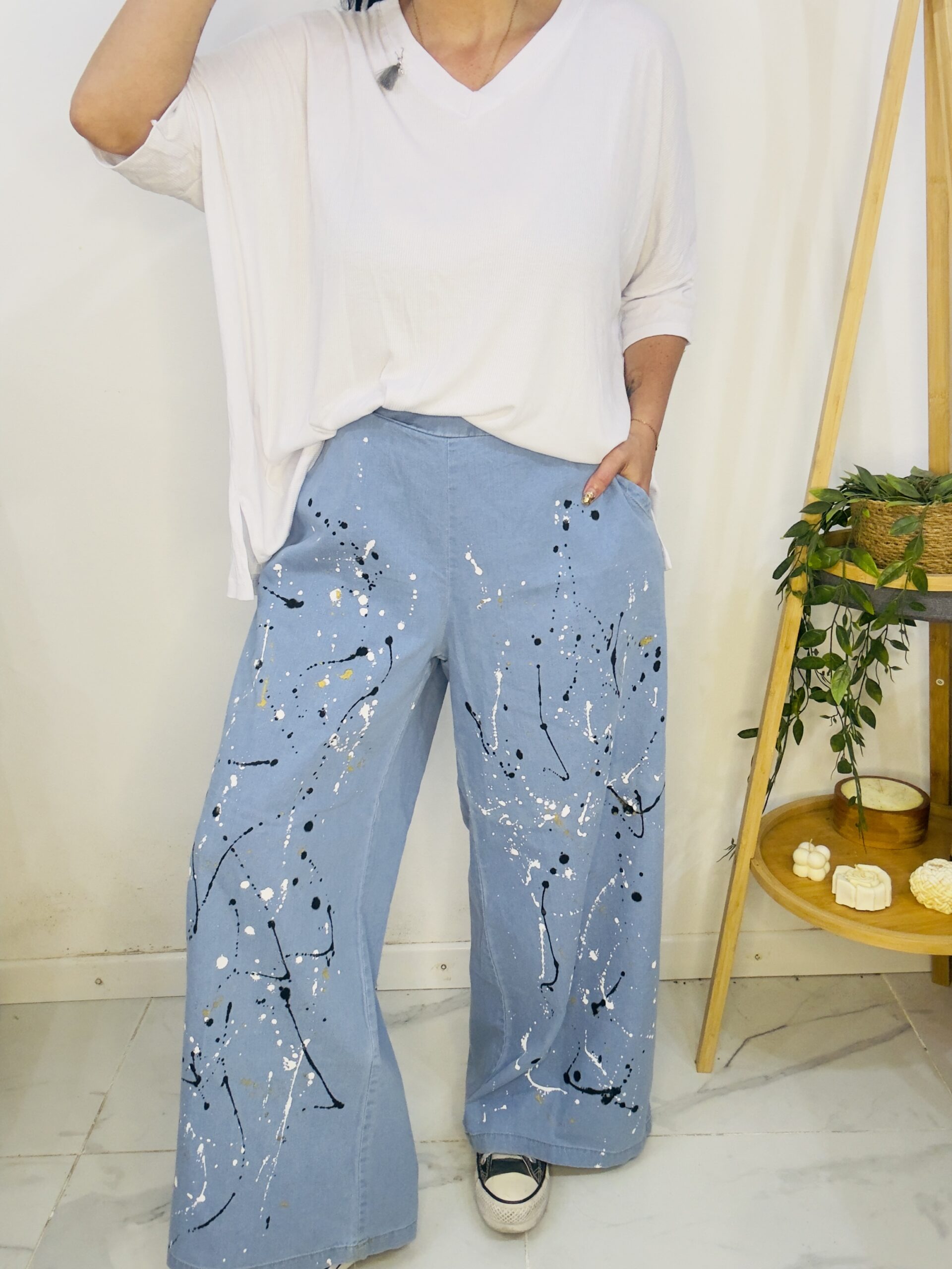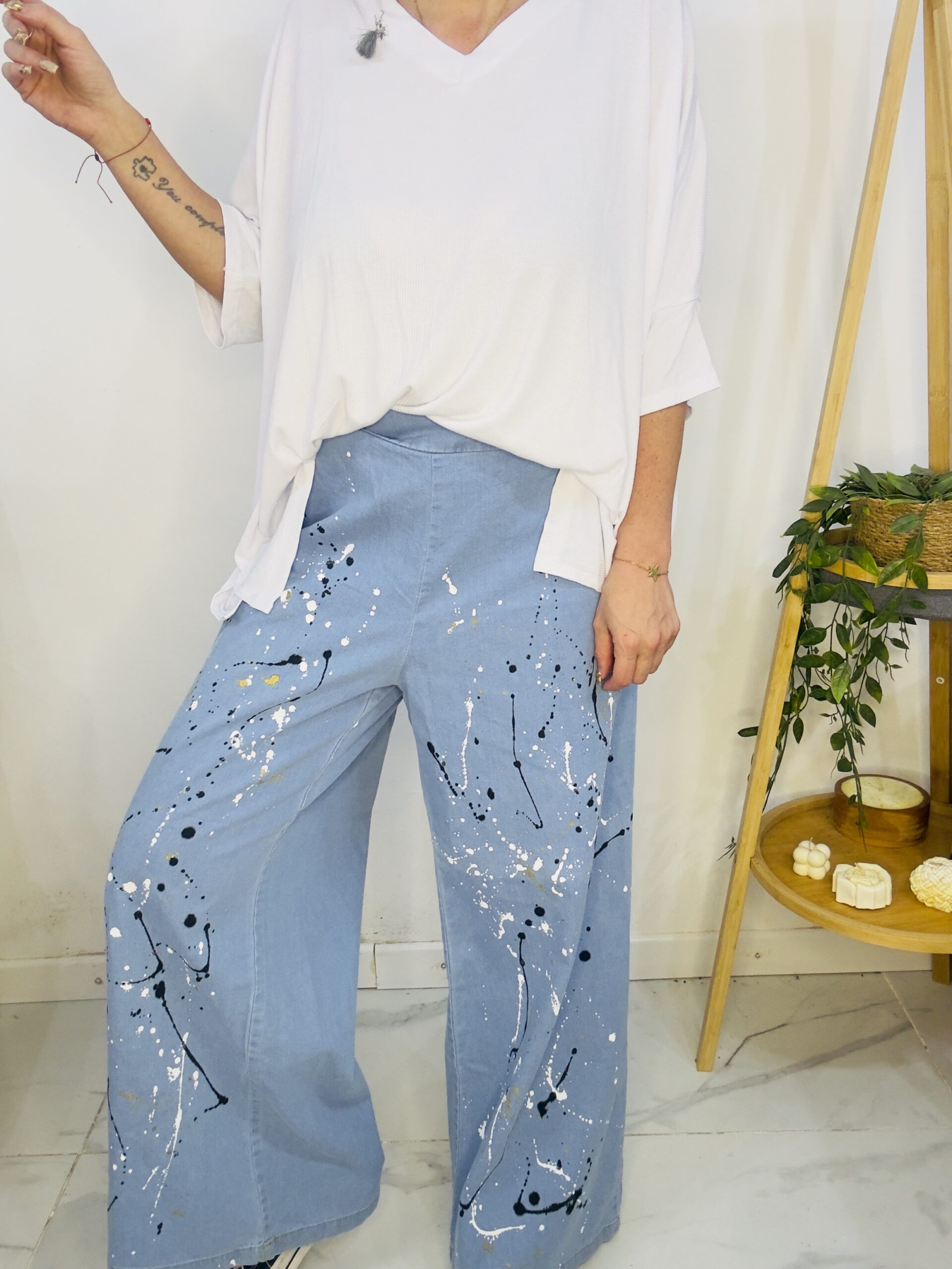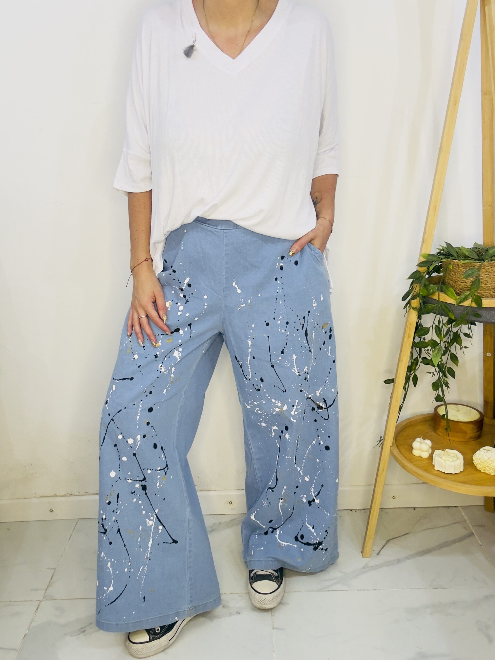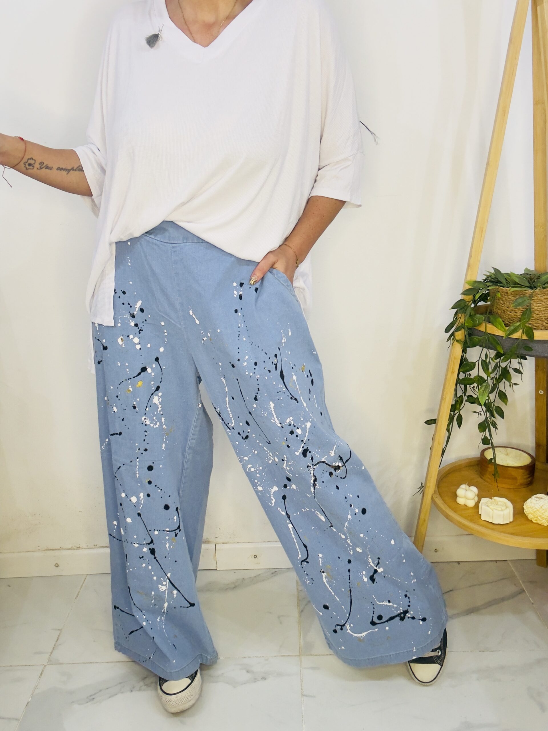 Pantalón de JEAN pintado a mano con un diseño que la rompe ♥️🥰súper amplio Son sueltos por ende los talles no son tan Exactos♥️♥️ tienen detalles súper hermosos como la parte inferior LE DA UNA ONDA DIVINA 🔥tiene bolsillos lo que siempre lo hace super canchero 🔥