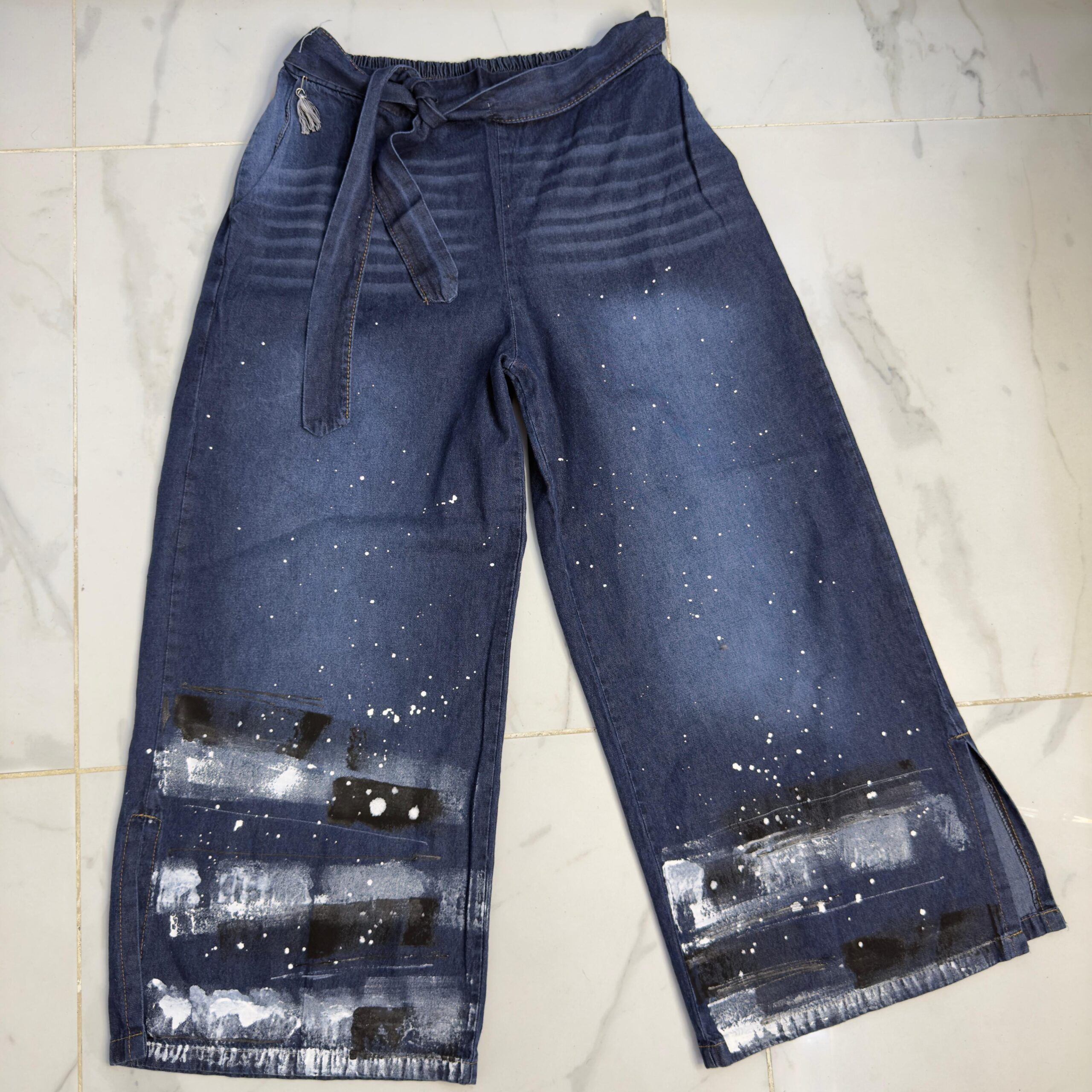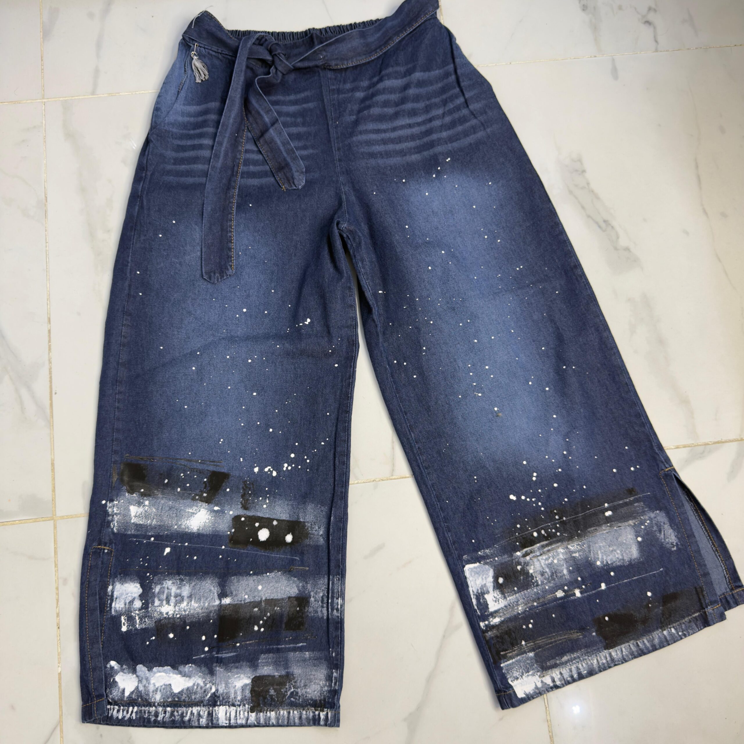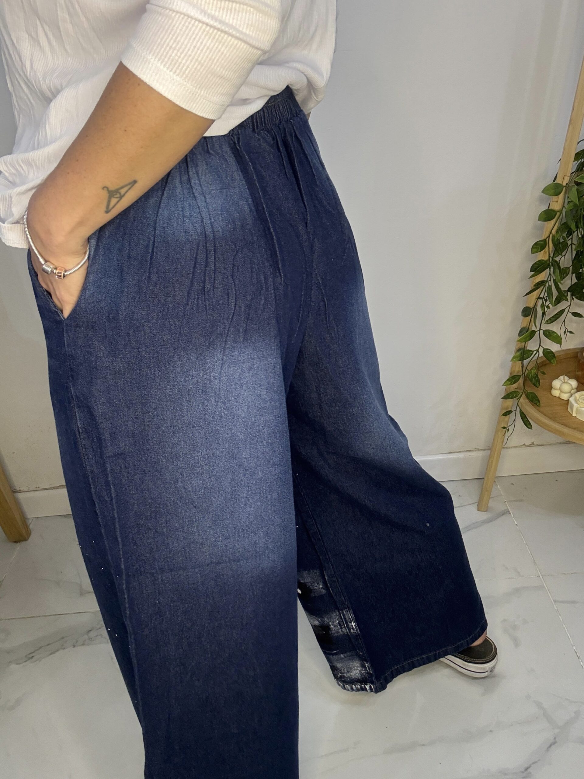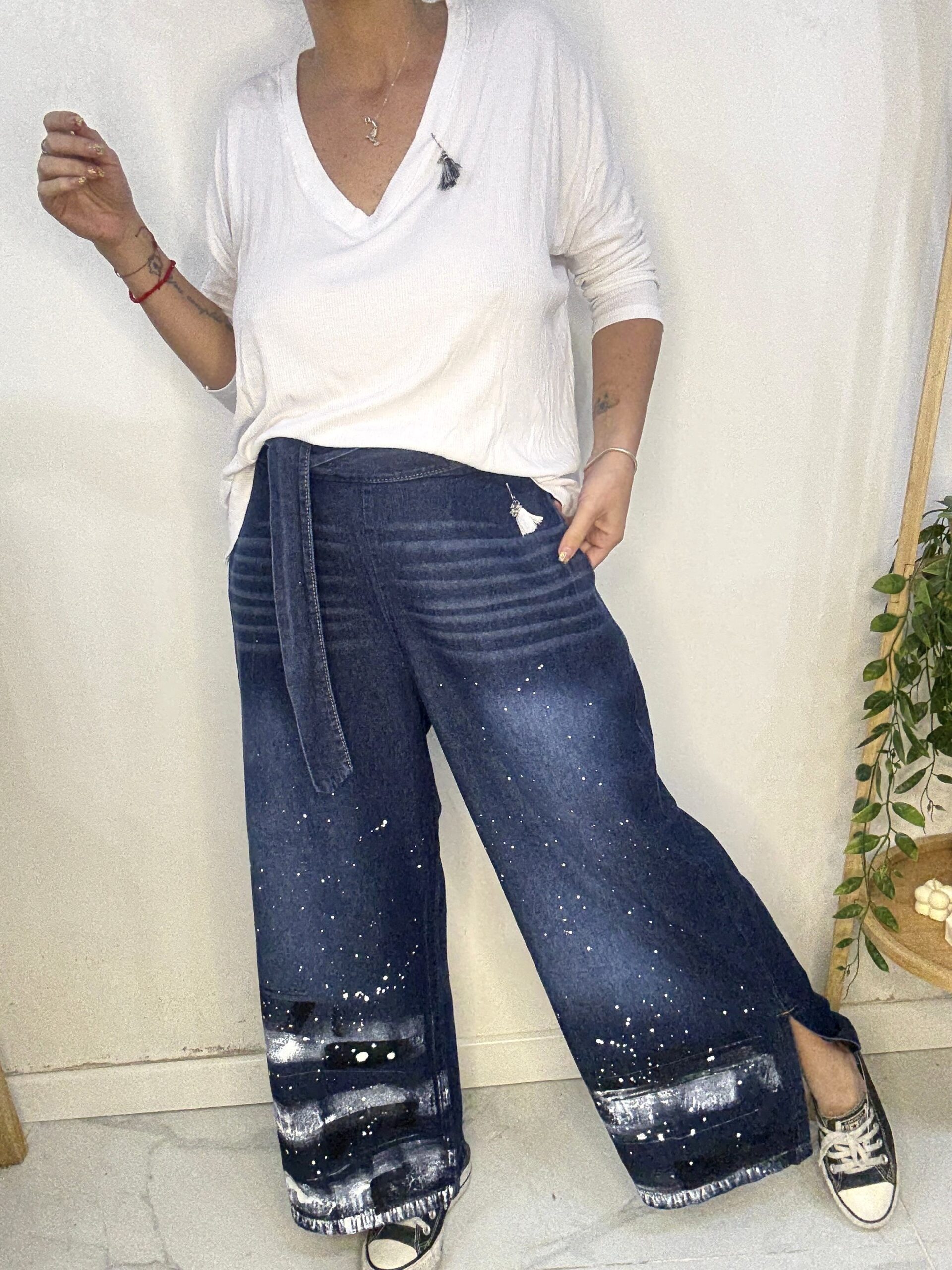 Pantalón de JEAN 😍 súper amplio con una caida que la rompe 🤍 son pintados a mano por ende, son artesanales hechos 1 × 1, tratándose de una prenda de diseño completamente exclusiva y única