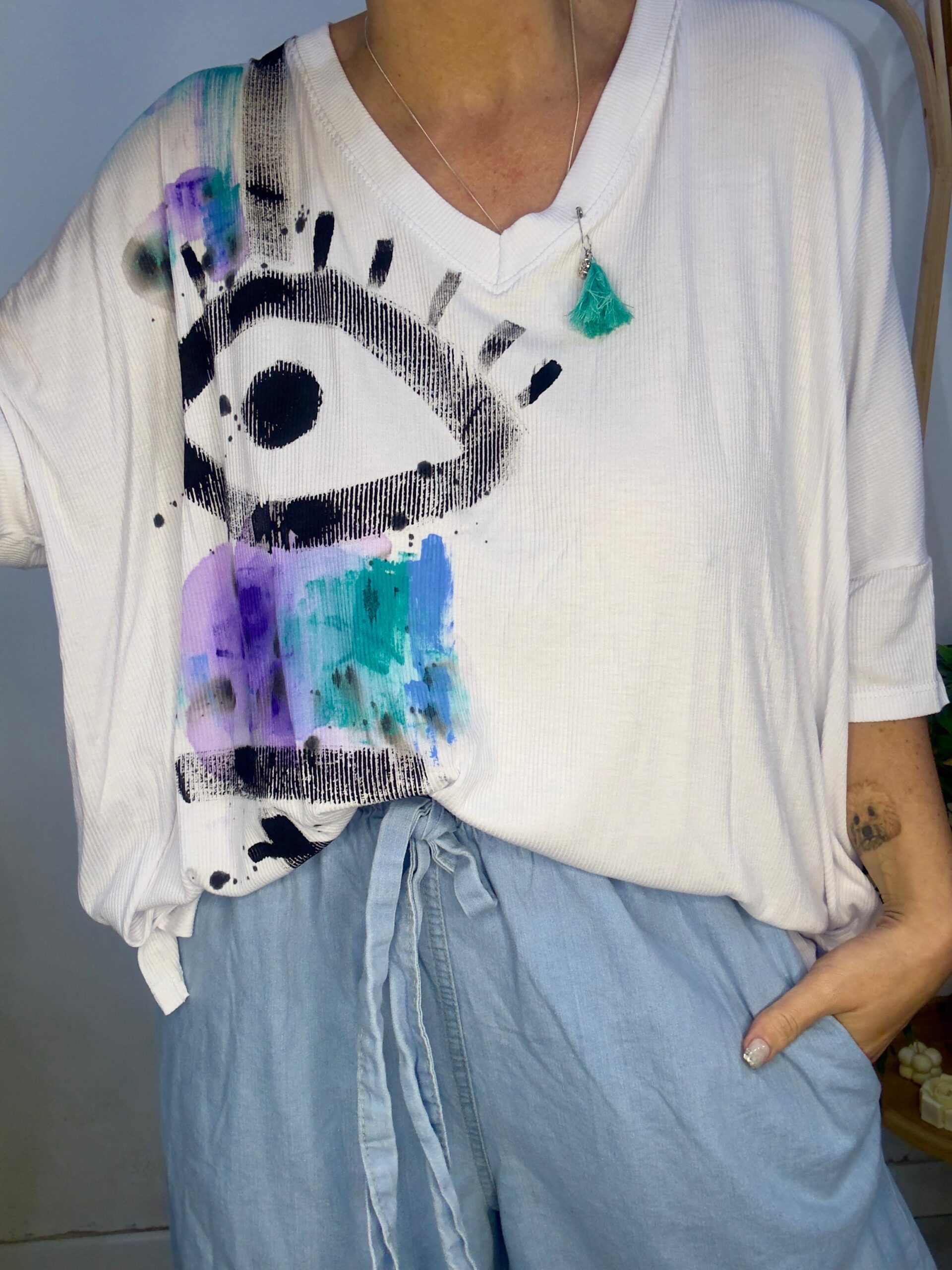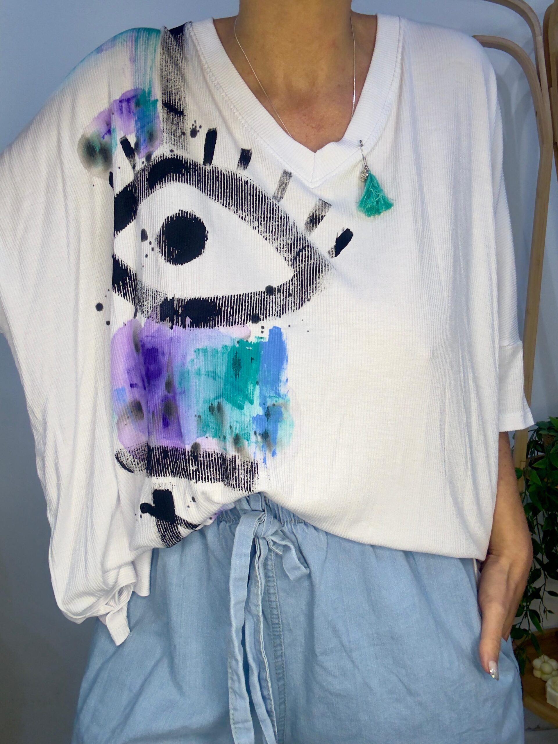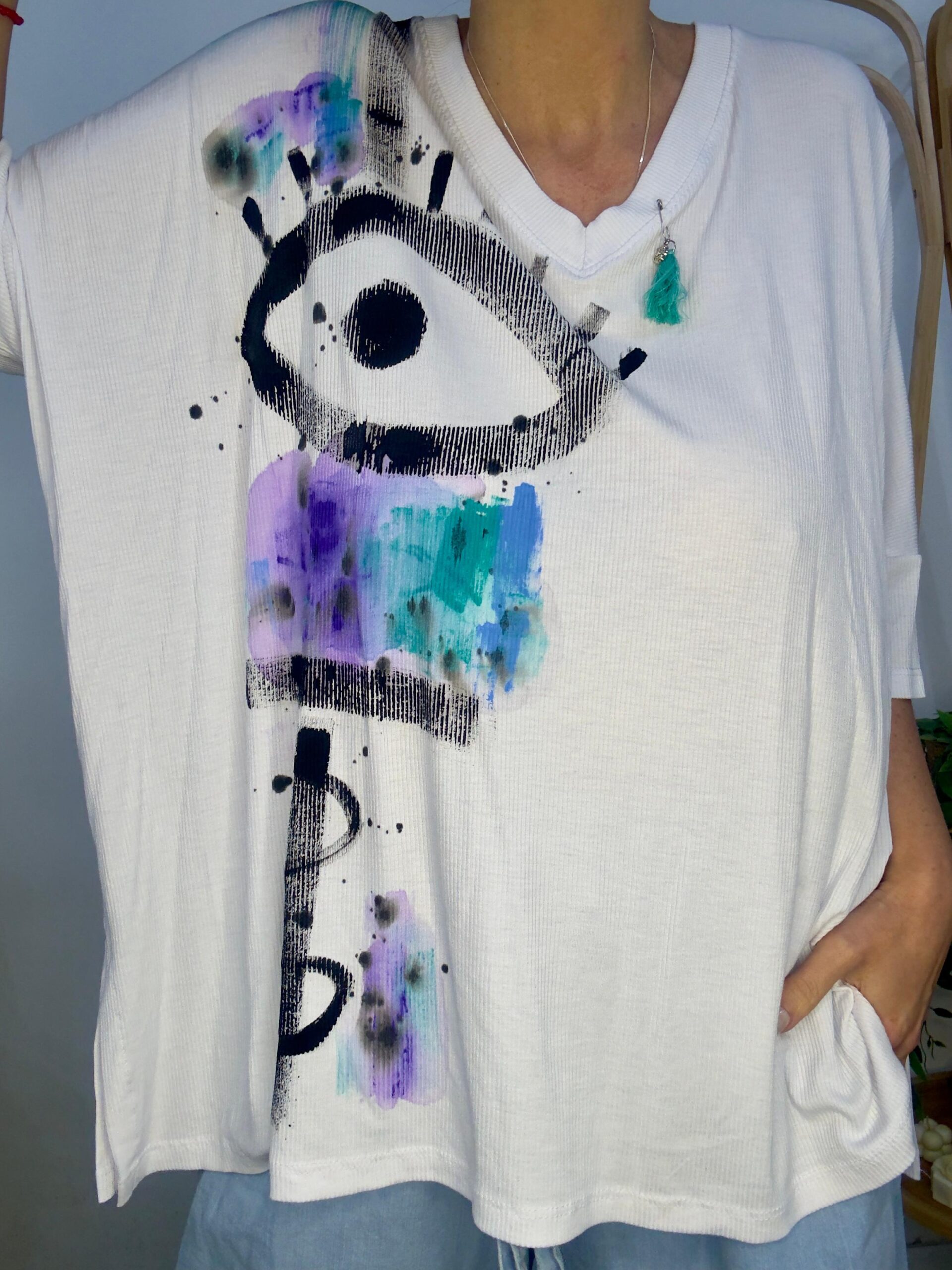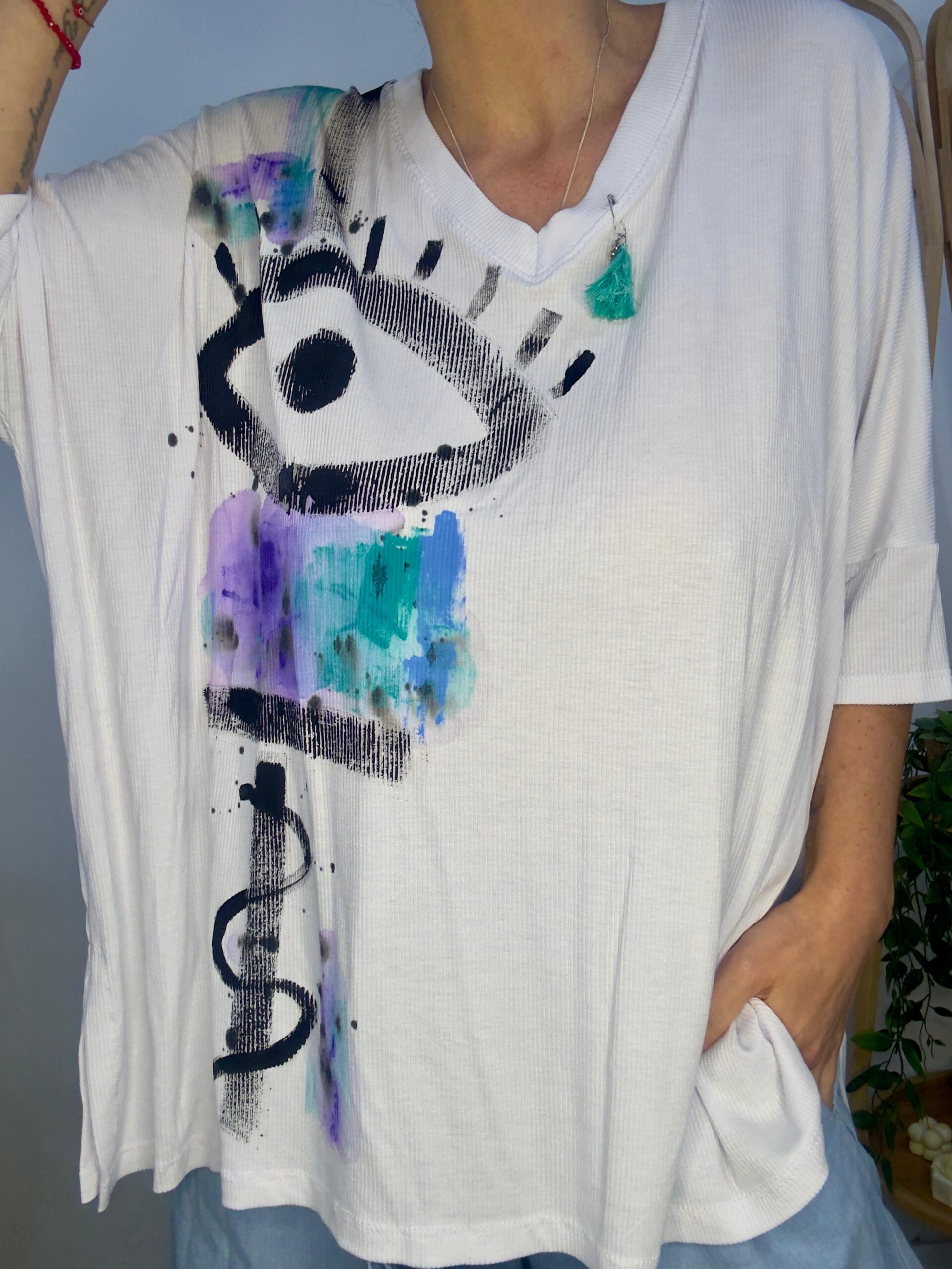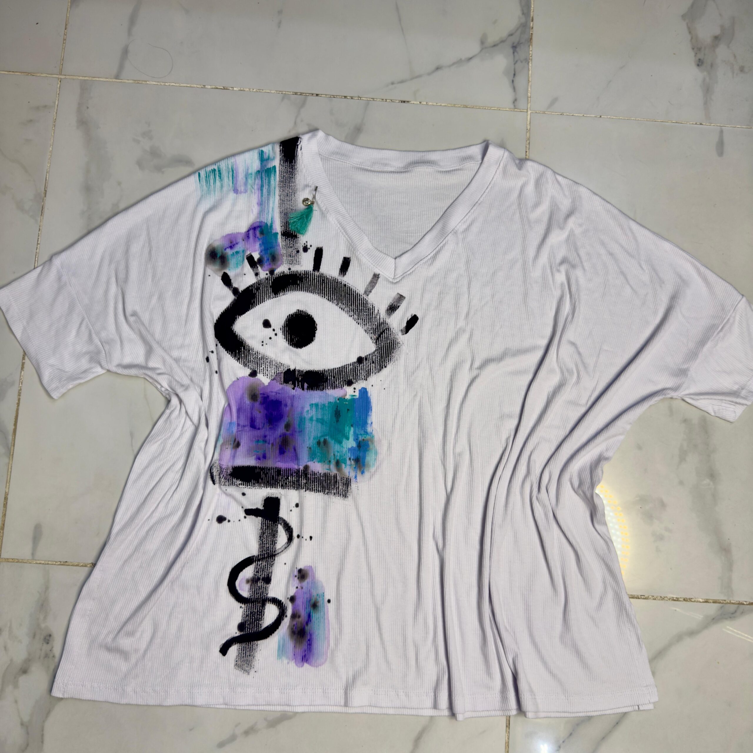 Remeron cuello V ♥️🪐 Está reme quedó tremenda es amplia LA TELA LA ROMPE LA AMAMOS 🤜🏼🤛🏻 con una calidad de la ostia♥️ posta tienen mucho corazón y amor nuestra pilchita es pintada a mano !!! La reme es de morley súper fresca 🥰♥️ Es súper original amplia y no marca nada se adapta a diferentes cuerpos de manera perfecta 🤩 como la desees acomodar ♥️ !! Si bien es talle único Cede es grandecita! Ósea se adapta a dif cuerpos!🔥