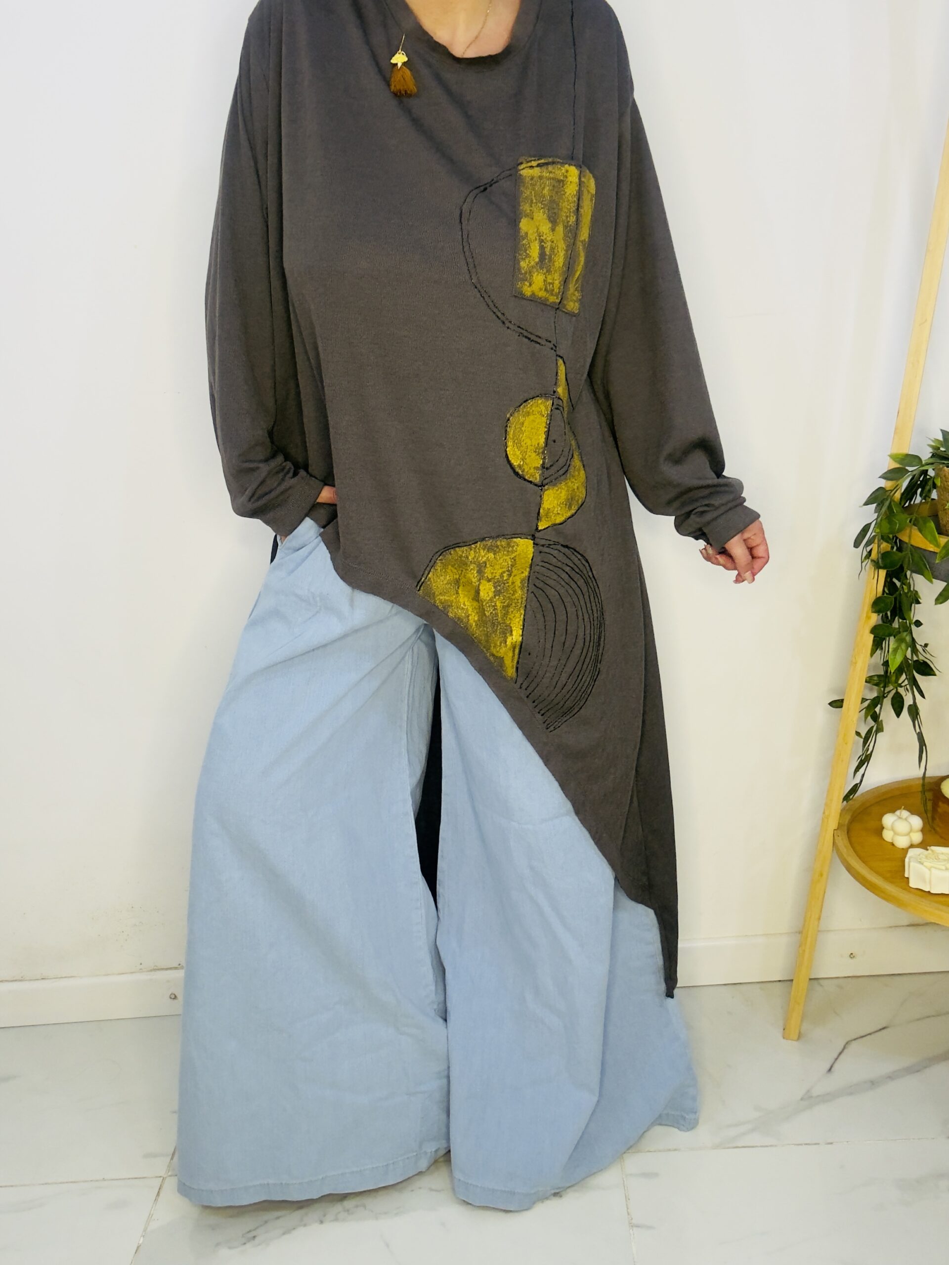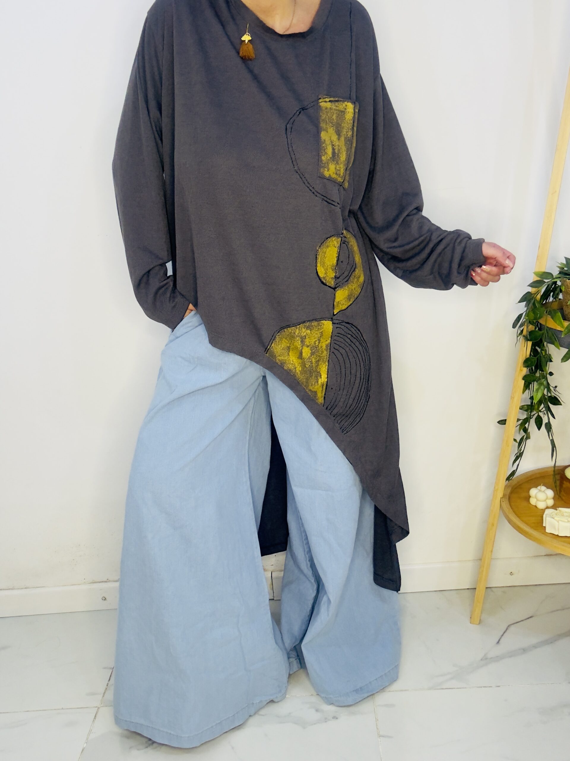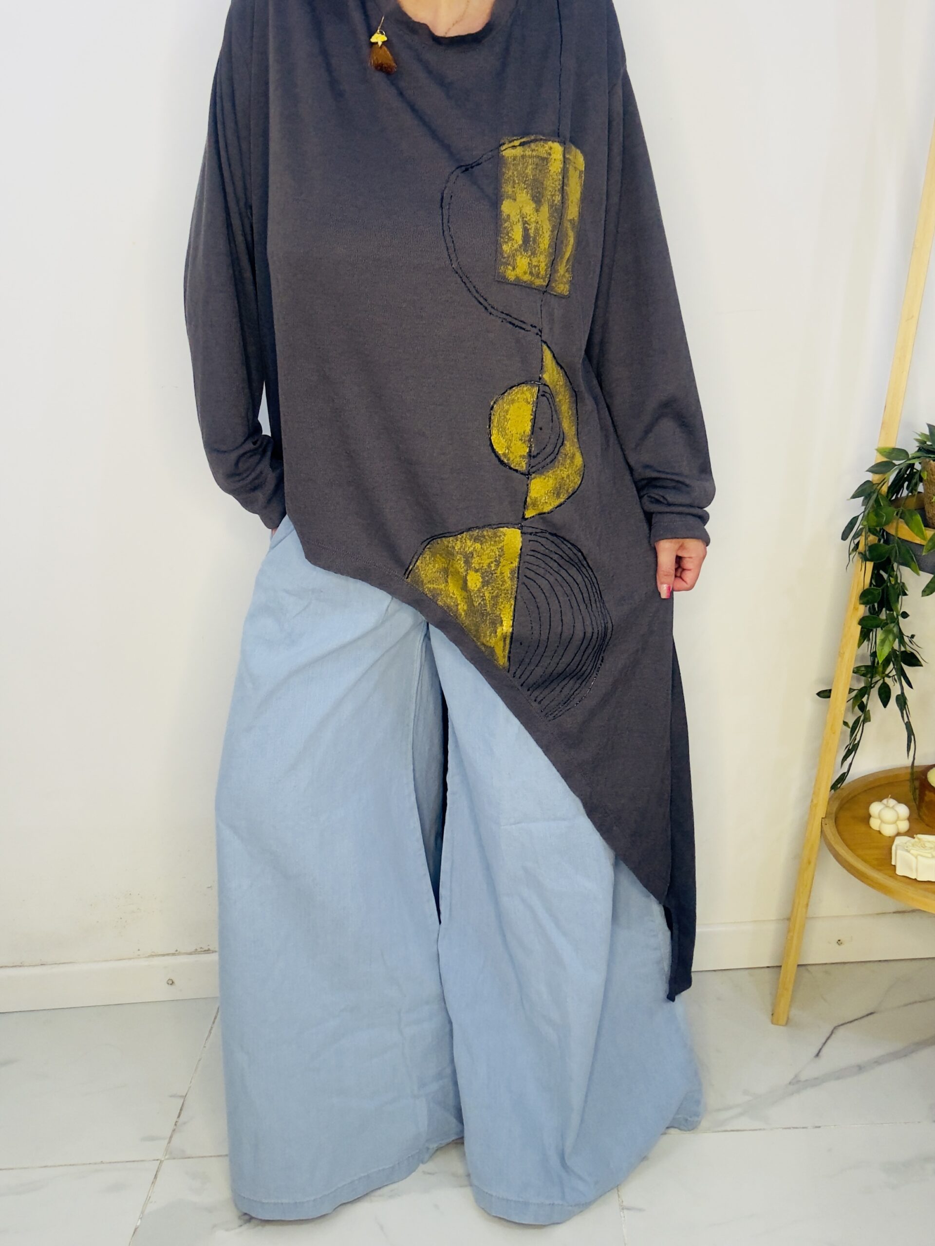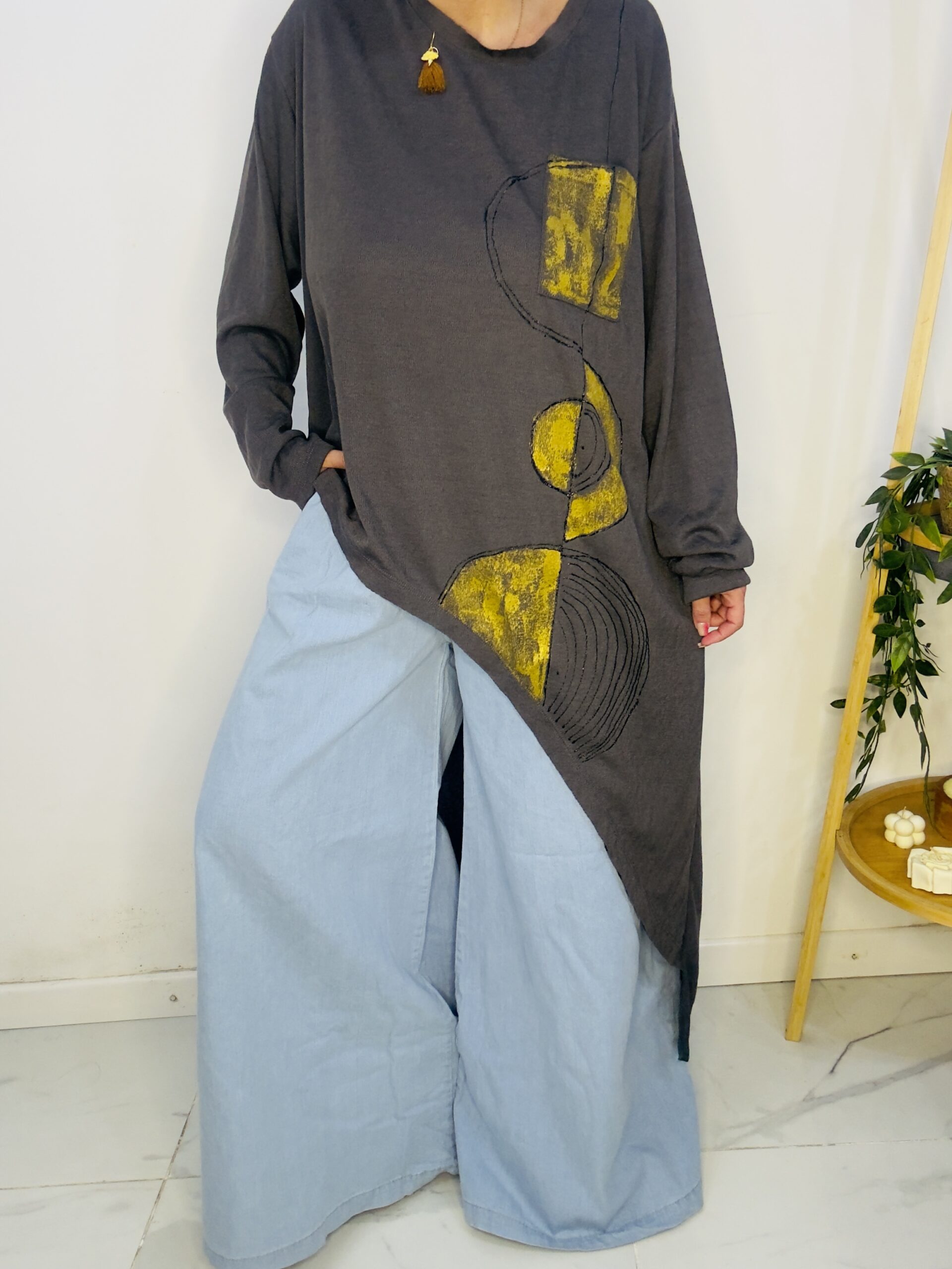 Remeron irregular de lanilla ♥️ es amplia con una calidad de la ostia 🥰♥️ no se arruga!! Es súper original amplia y no marca nada y adaptandose a diferentes cuerpos de manera perfecta🤩 como la desees acomodar ♥️ !! Hablamos sobre su hermosa pintura a mano Porq realmente termina de coronar el modelito con un detalle súper estético que te permite combinarla con varias opciones 🪐Si bien es talle único es grandecita! Ósea se adapta a dif cuerpos!🔥🔥