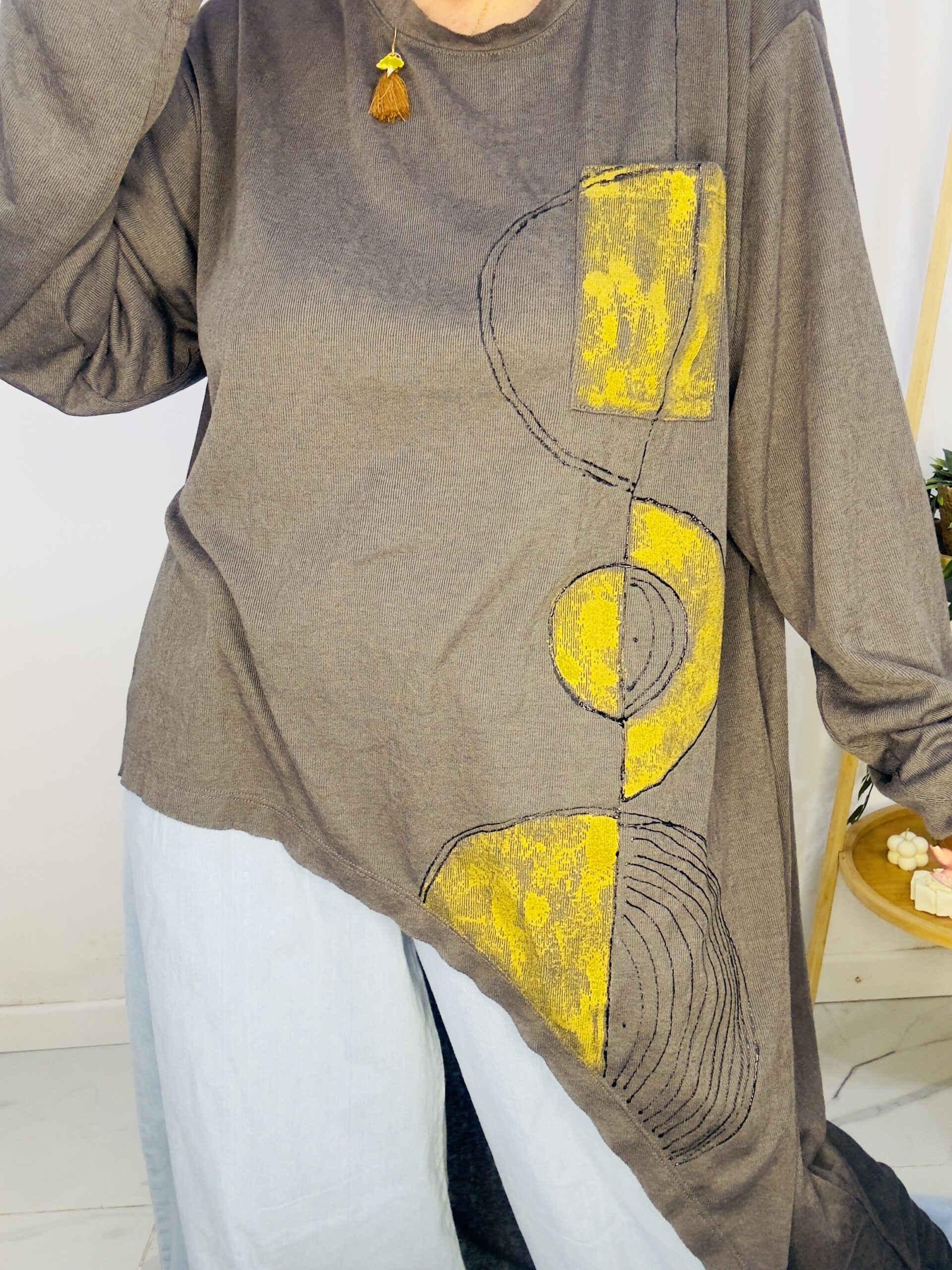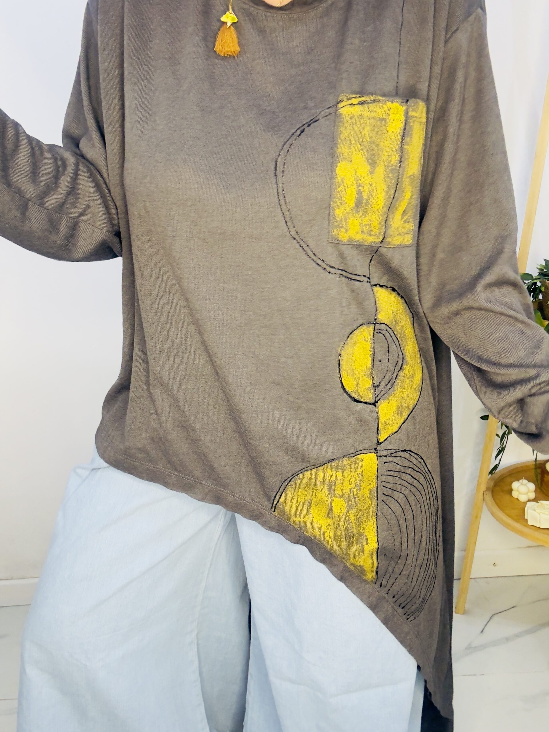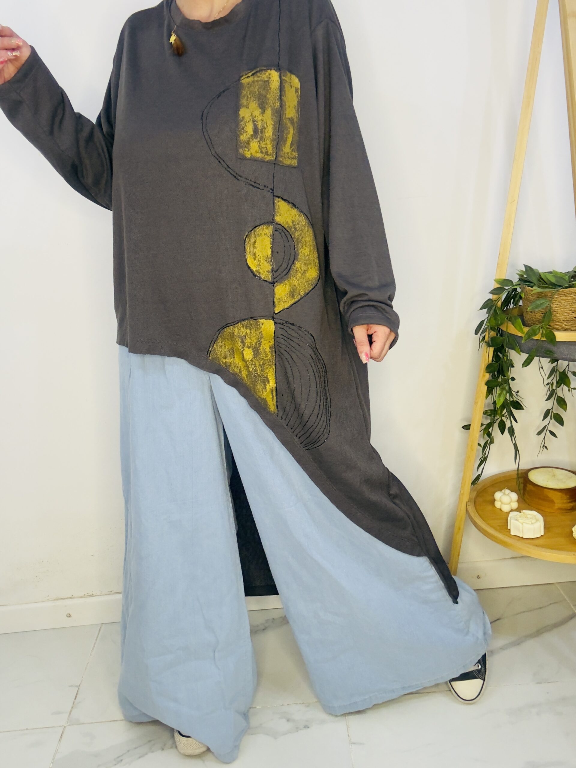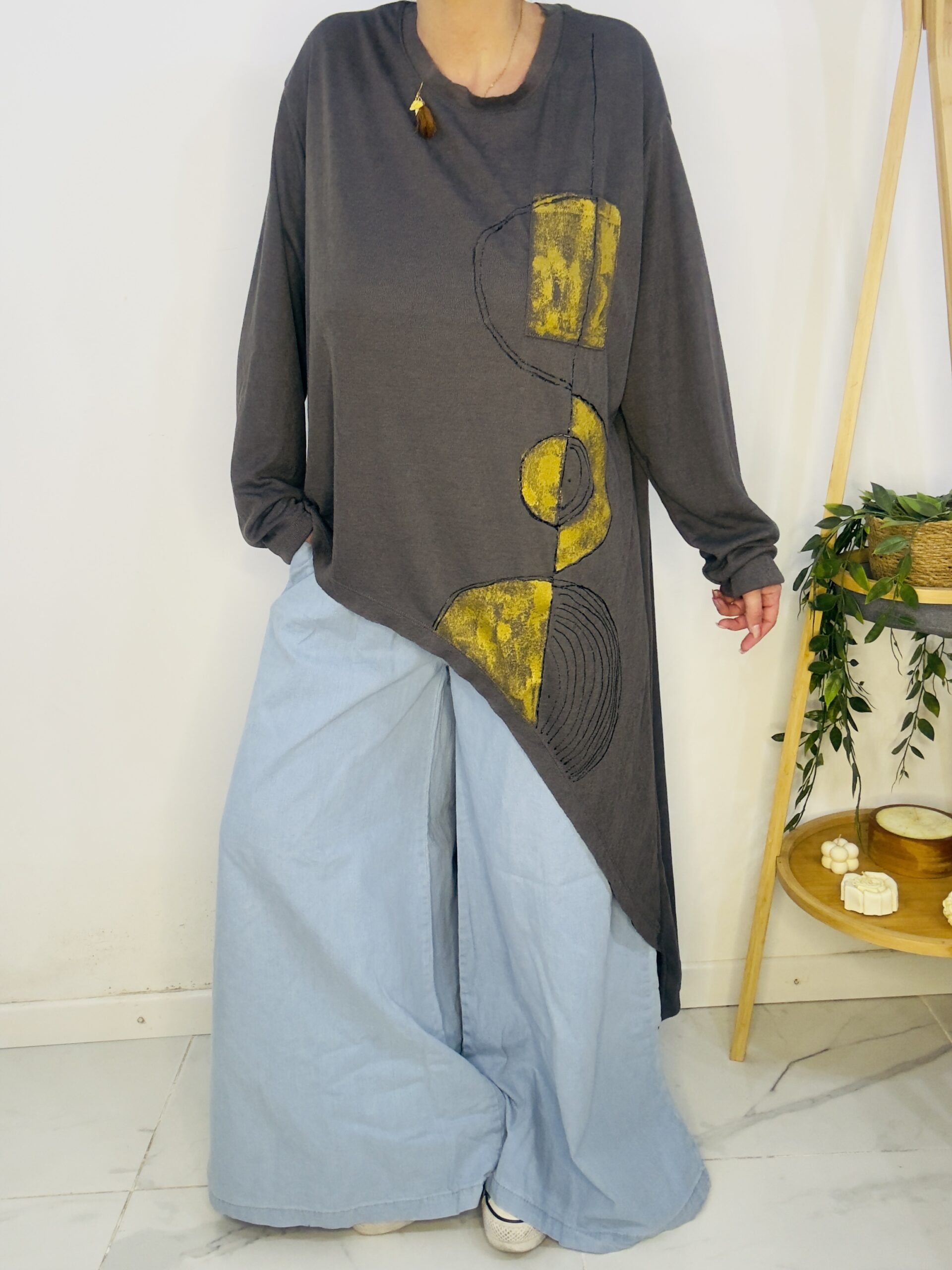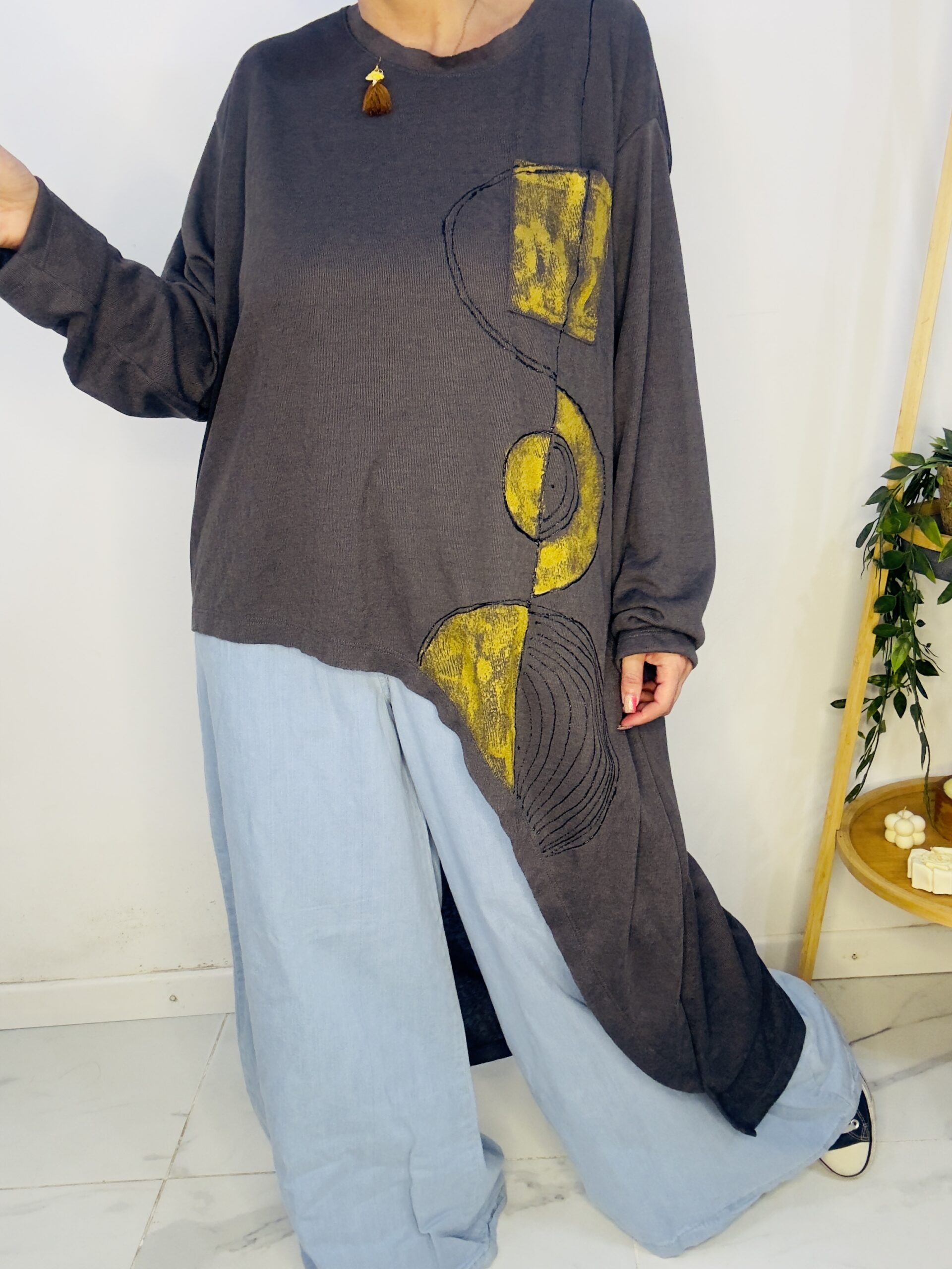 Remeron irregular de lanilla ♥️ es amplia con una calidad de la ostia 🥰♥️ no se arruga!! Es súper original amplia y no marca nada y adaptandose a diferentes cuerpos de manera perfecta🤩 como la desees acomodar ♥️ !! Hablamos sobre su hermosa pintura a mano Porq realmente termina de coronar el modelito con un detalle súper estético que te permite combinarla con varias opciones 🪐Si bien es talle único es grandecita! Ósea se adapta a dif cuerpos!🔥🔥