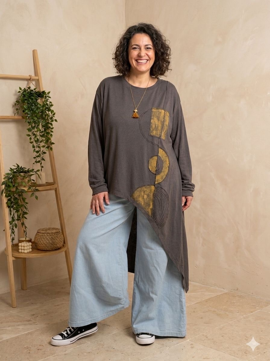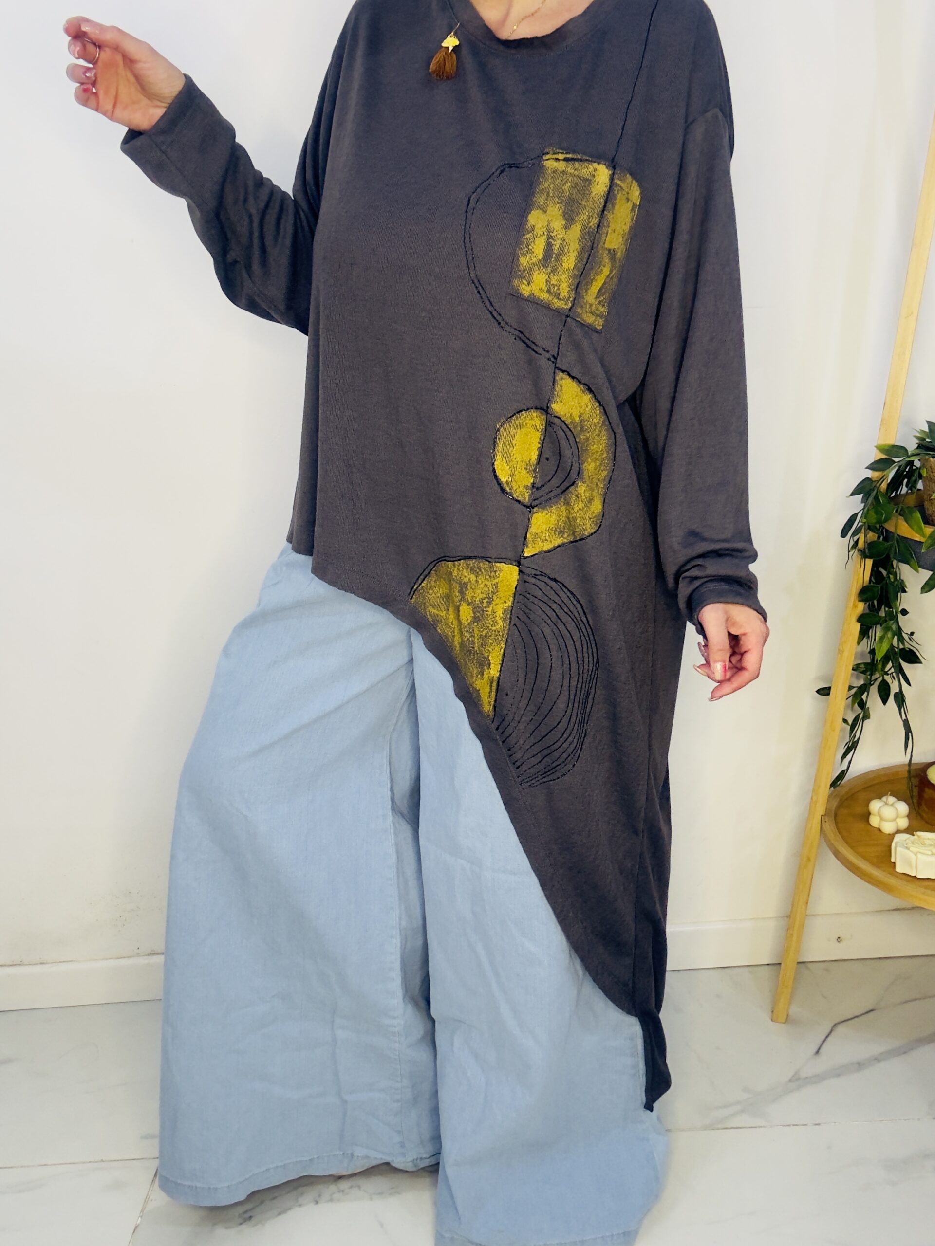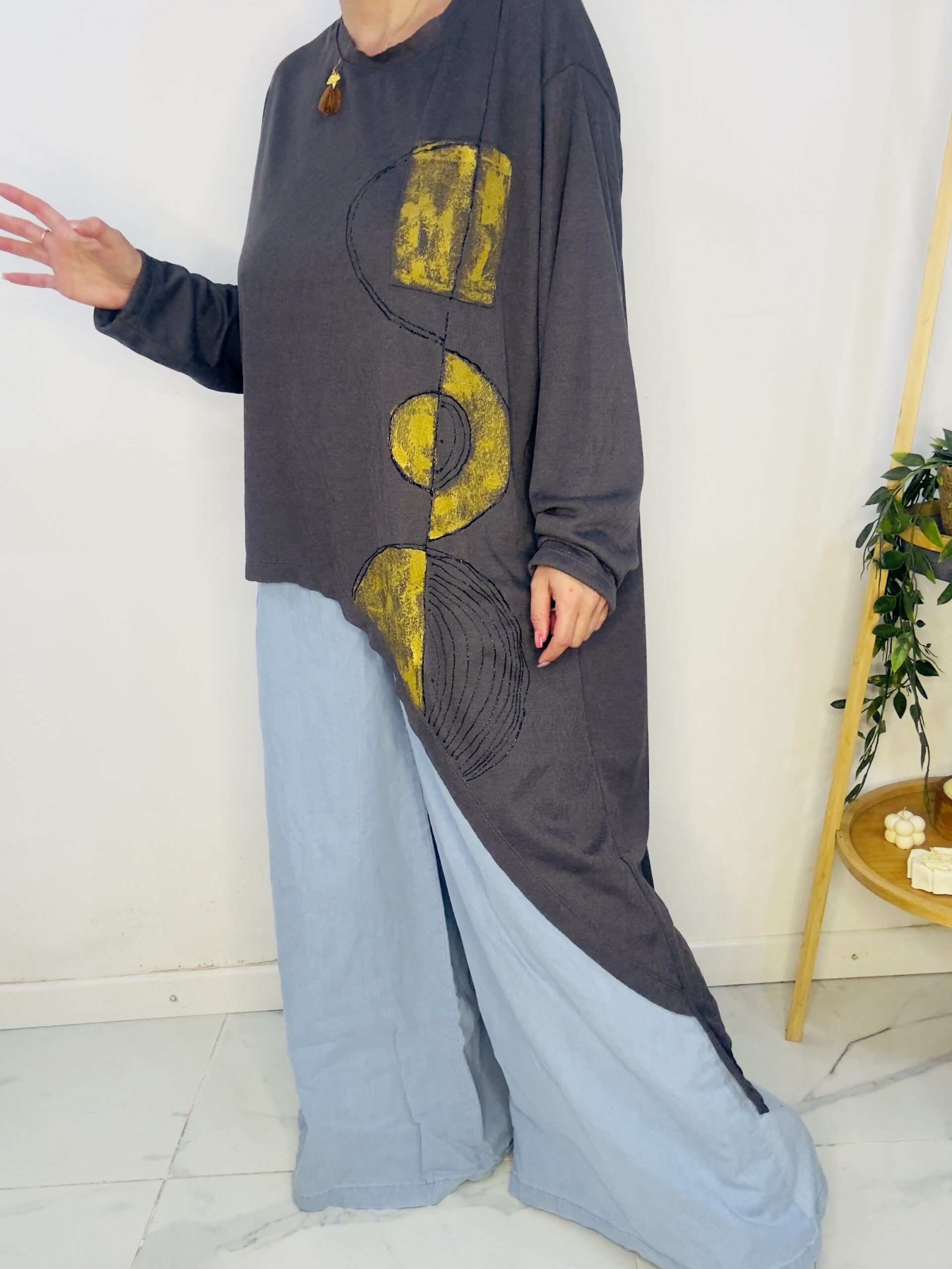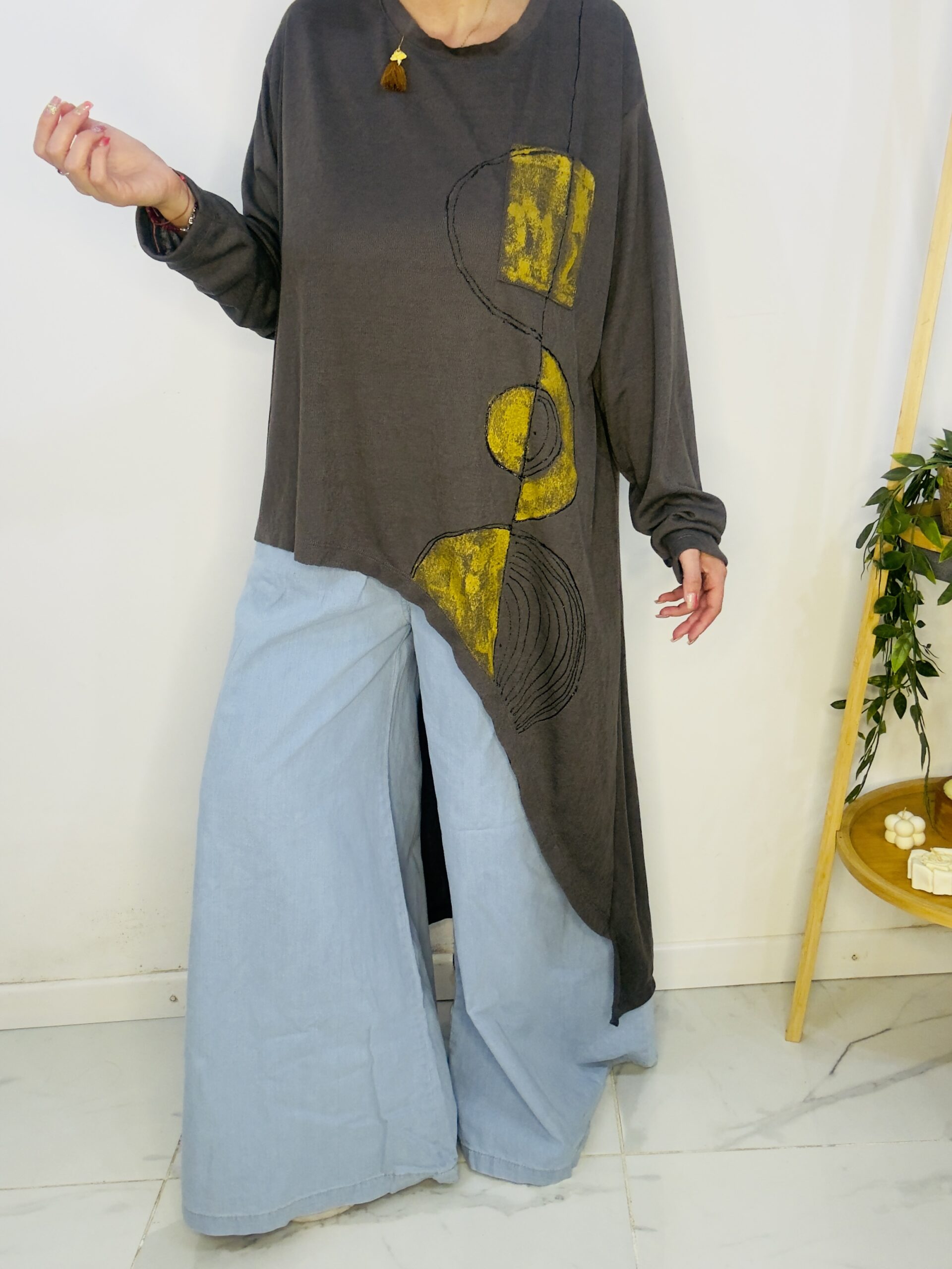 Remeron irregular de lanilla ♥️ es amplia con una calidad de la ostia 🥰♥️ no se arruga!! Es súper original amplia y no marca nada y adaptandose a diferentes cuerpos de manera perfecta🤩 como la desees acomodar ♥️ !! Hablamos sobre su hermosa pintura a mano Porq realmente termina de coronar el modelito con un detalle súper estético que te permite combinarla con varias opciones 🪐Si bien es talle único es grandecita! Ósea se adapta a dif cuerpos!🔥🔥