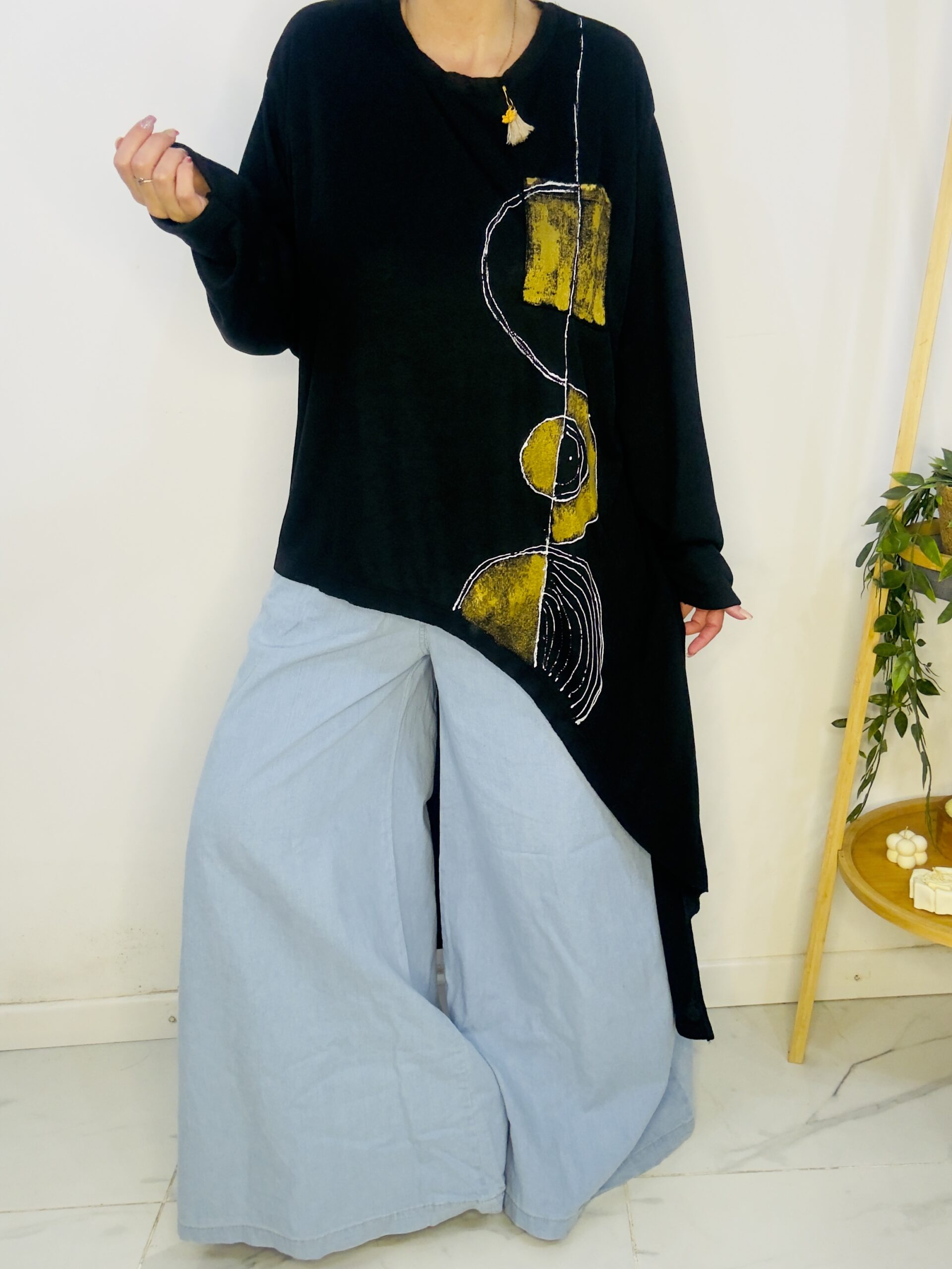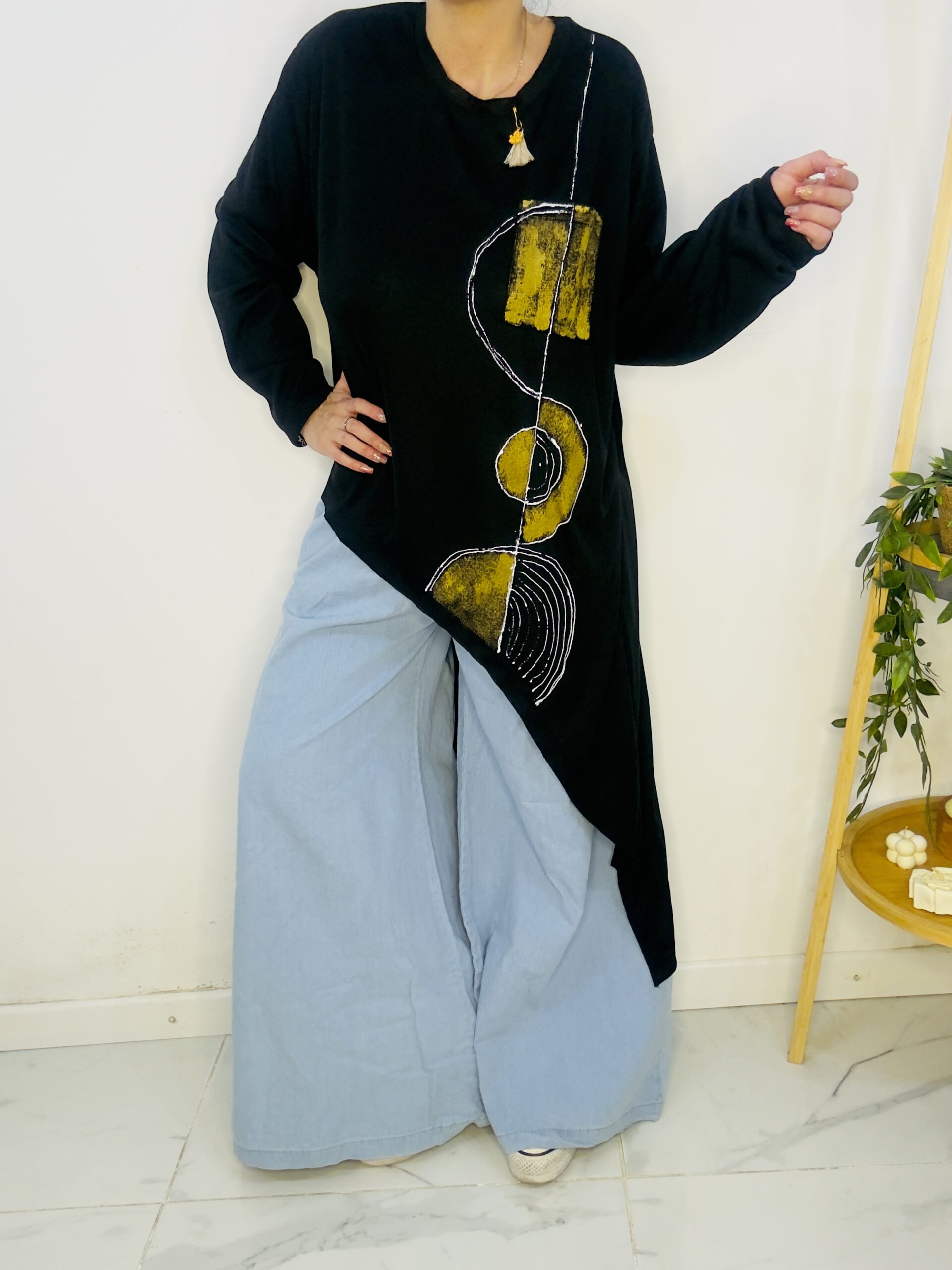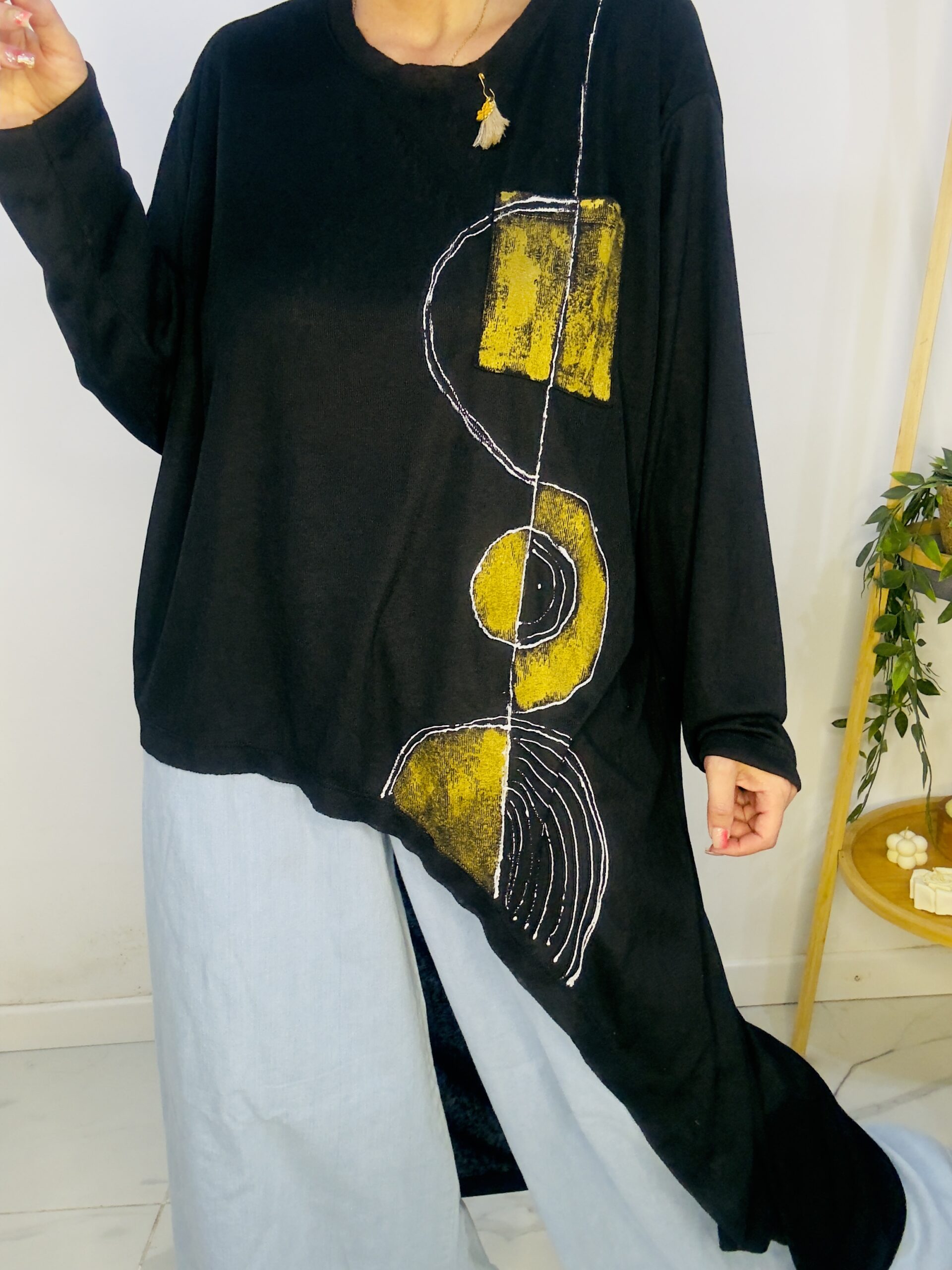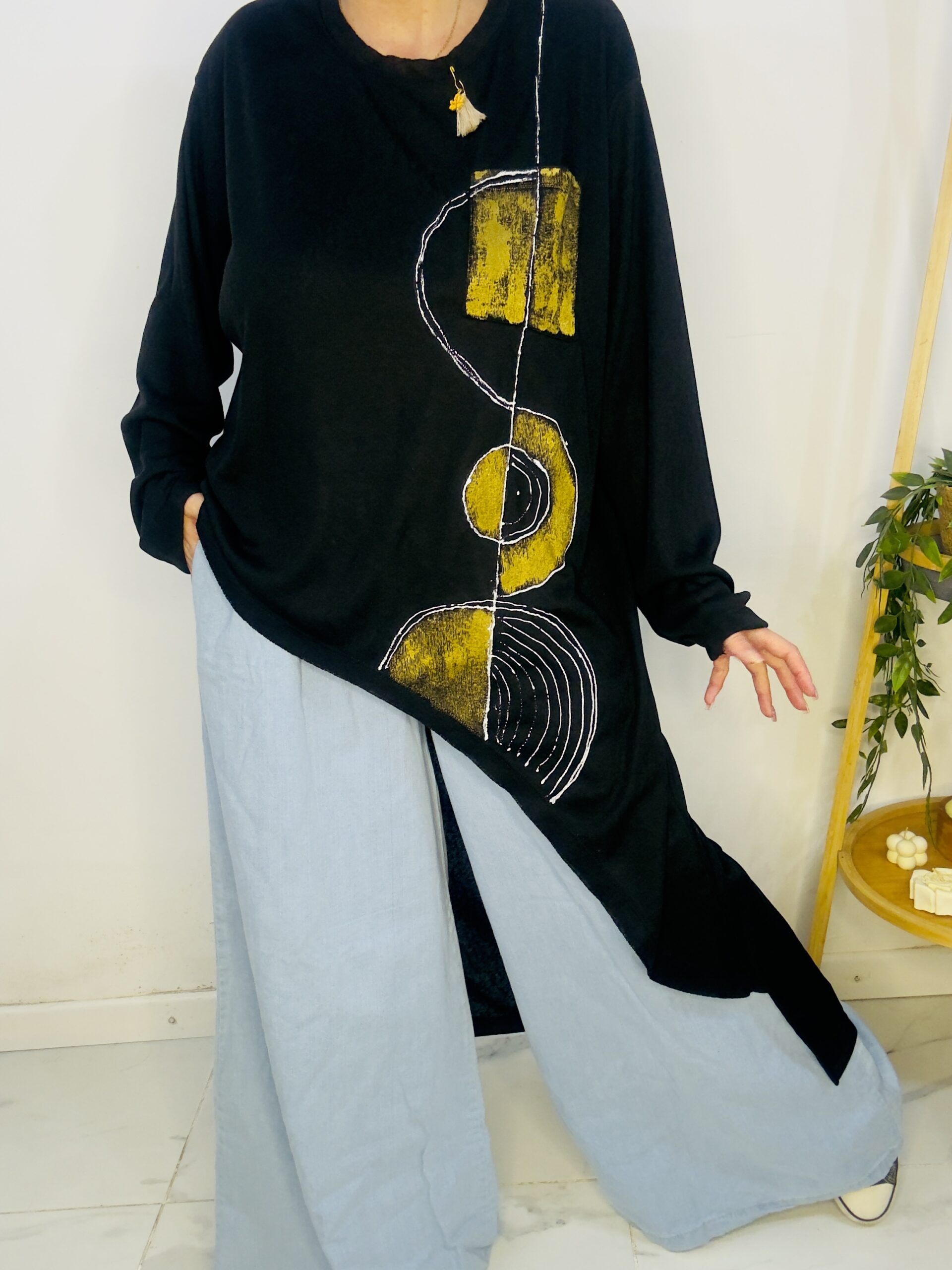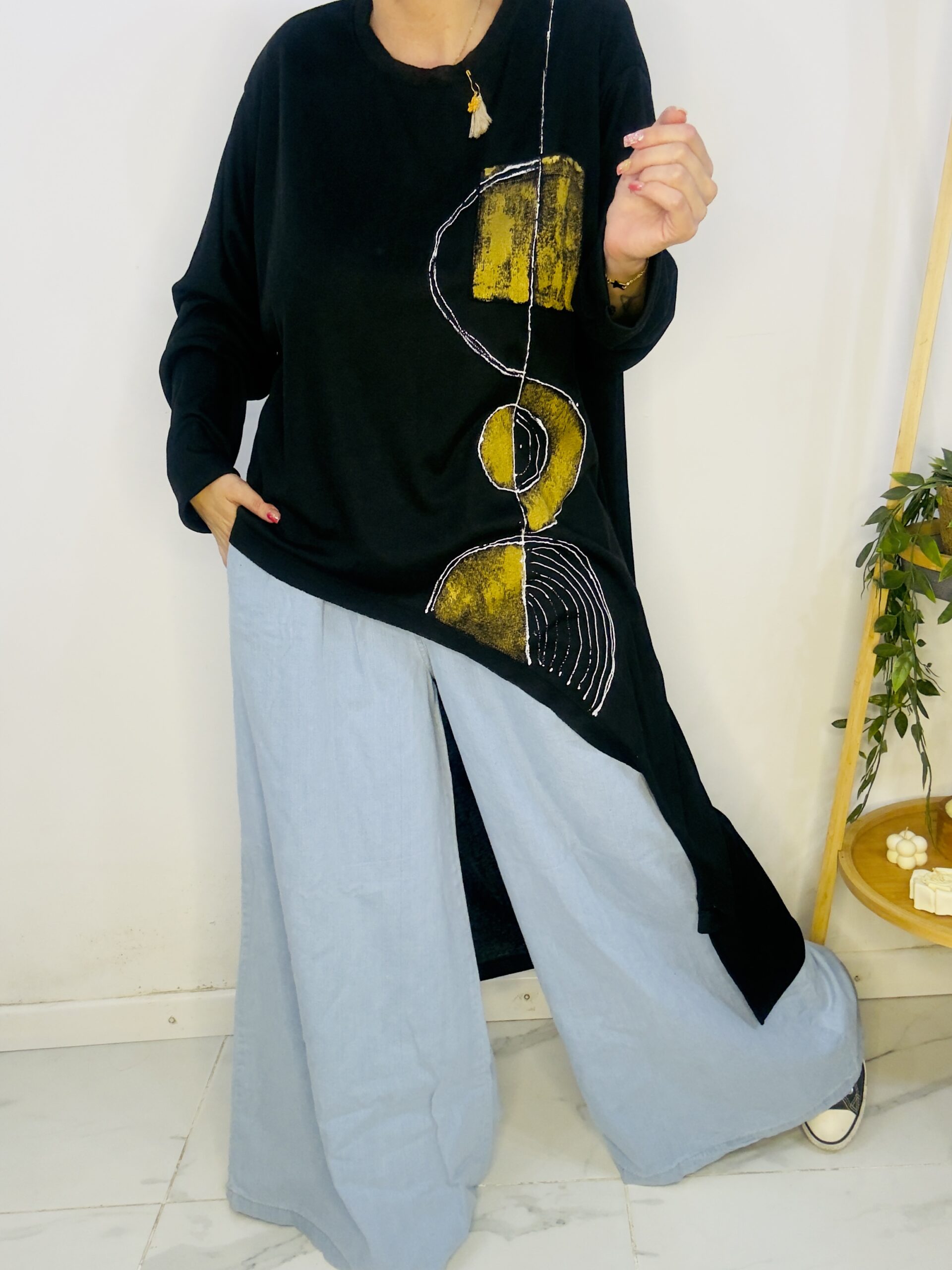 Remeron irregular de lanilla ♥️ es amplia con una calidad de la ostia 🥰♥️ no se arruga!! Es súper original amplia y no marca nada y adaptandose a diferentes cuerpos de manera perfecta🤩 como la desees acomodar ♥️ !! Hablamos sobre su hermosa pintura a mano Porq realmente termina de coronar el modelito con un detalle súper estético que te permite combinarla con varias opciones 🪐Si bien es talle único es grandecita! Ósea se adapta a dif cuerpos!🔥🔥