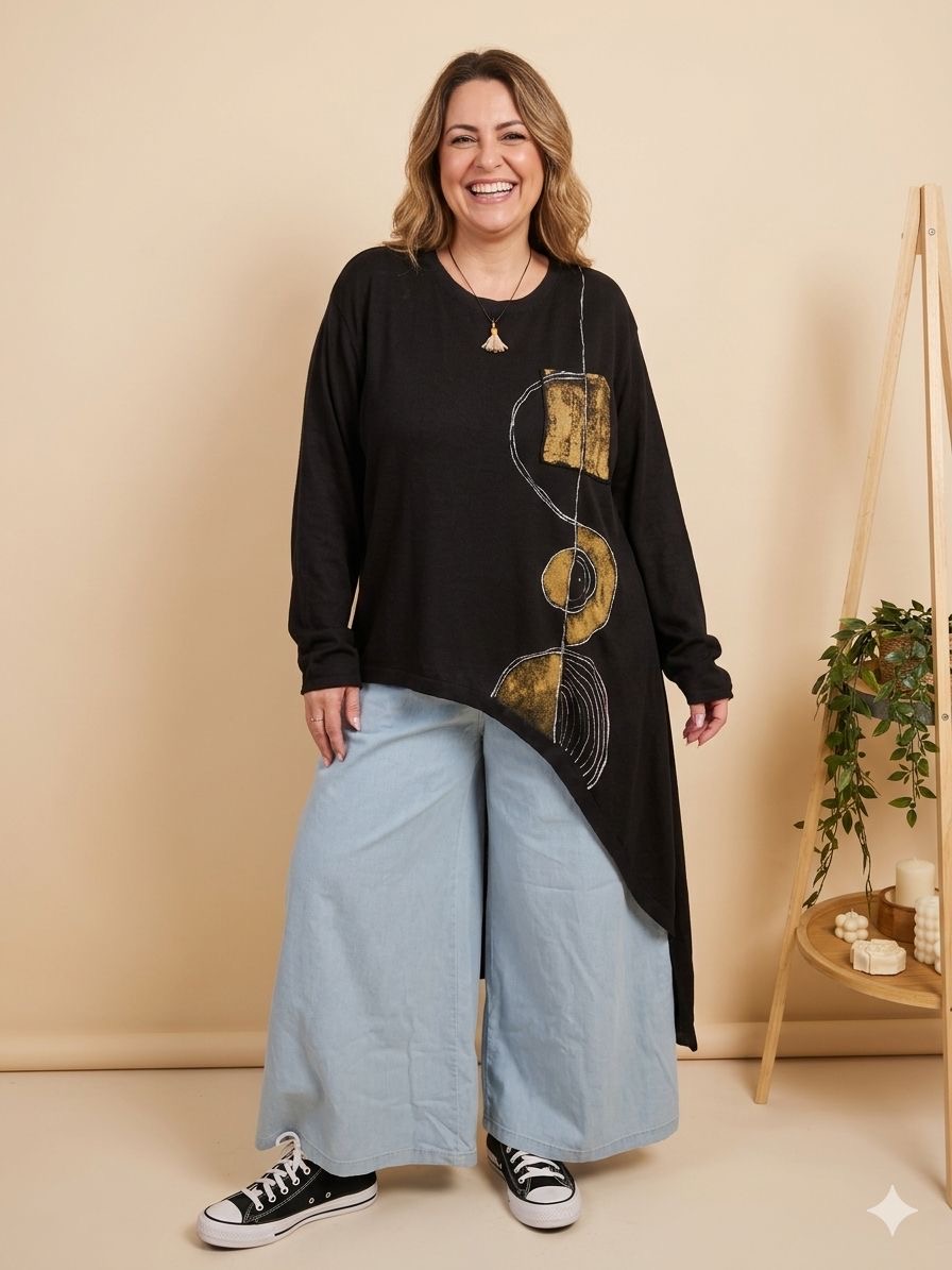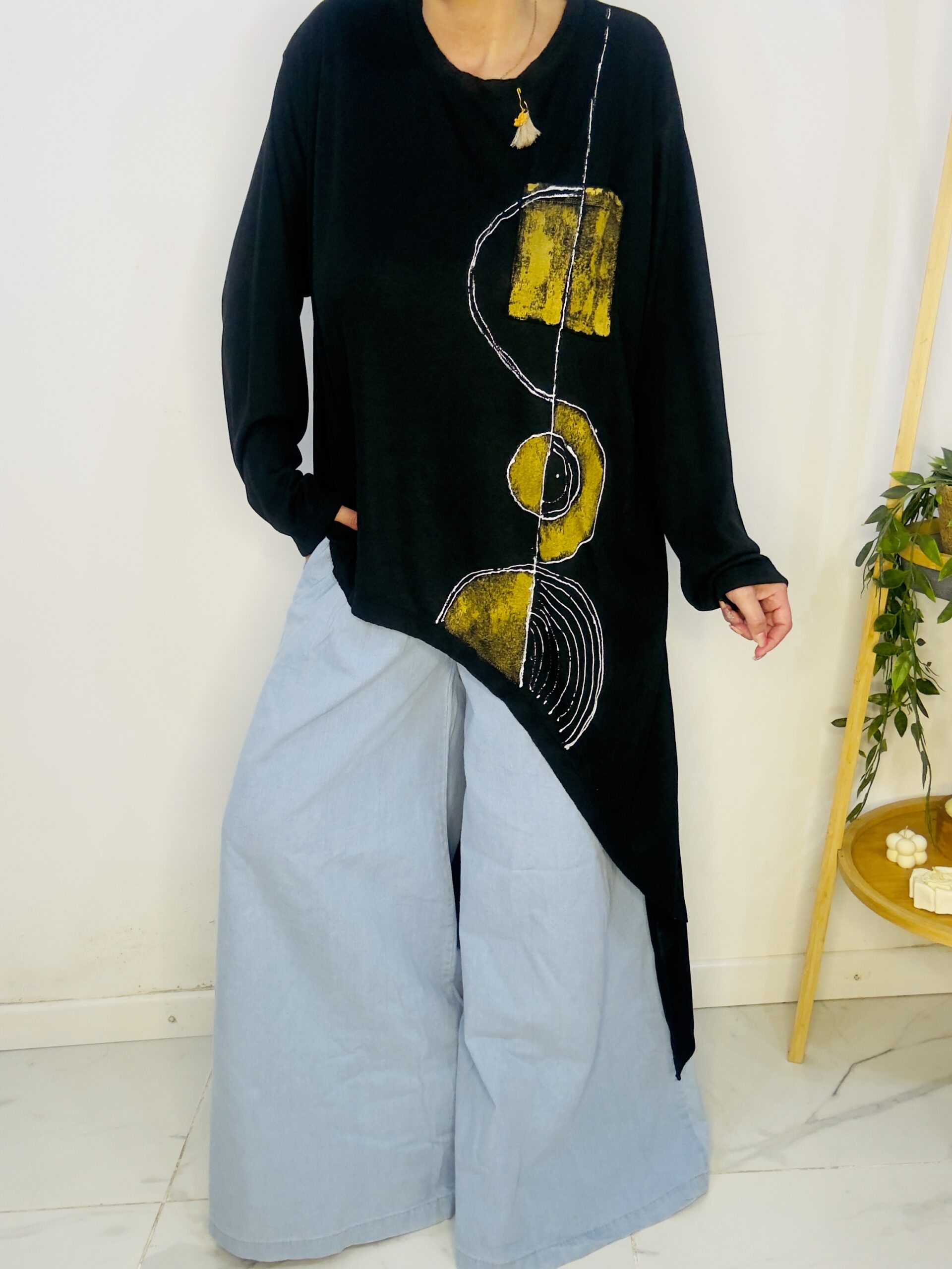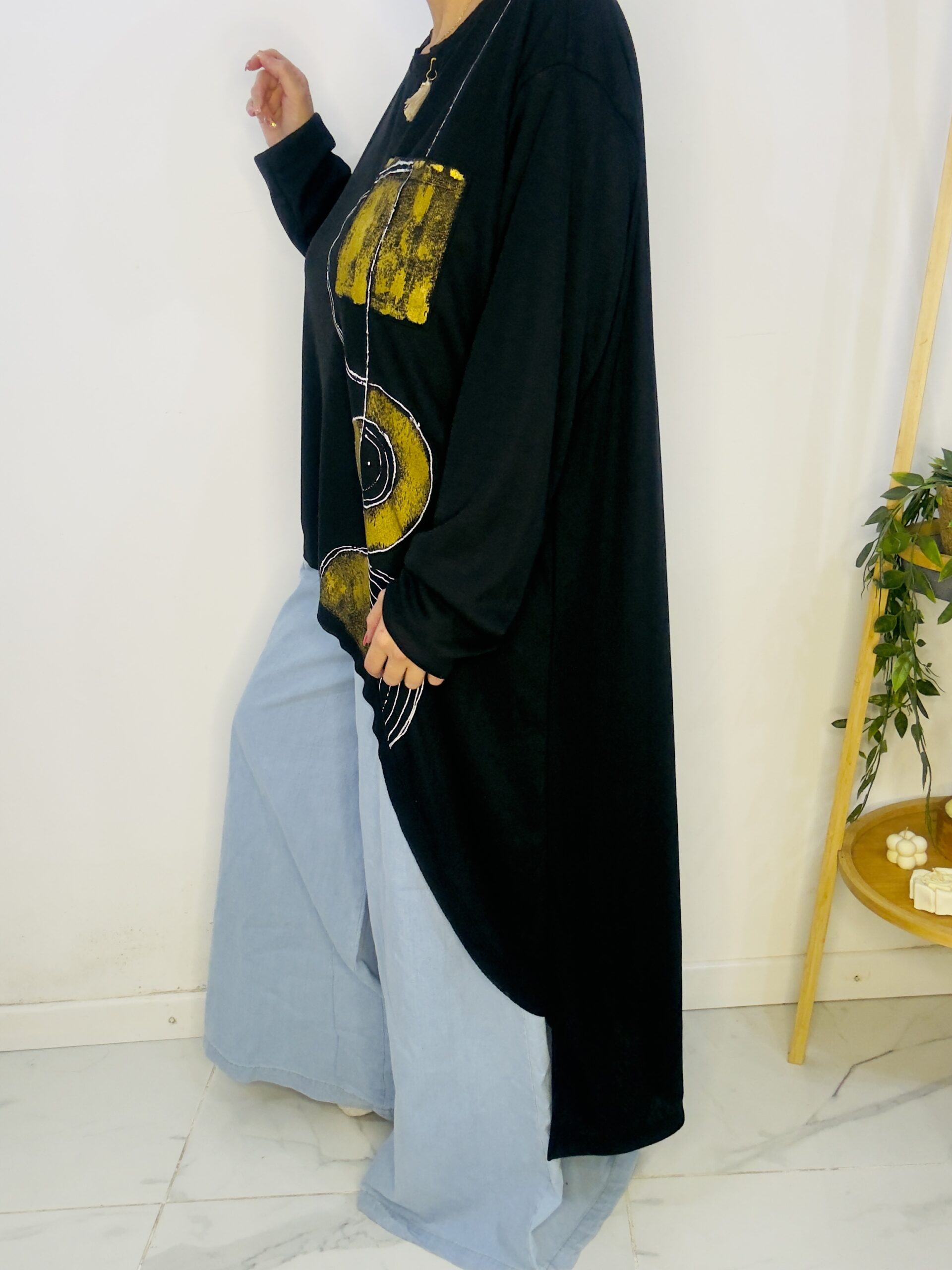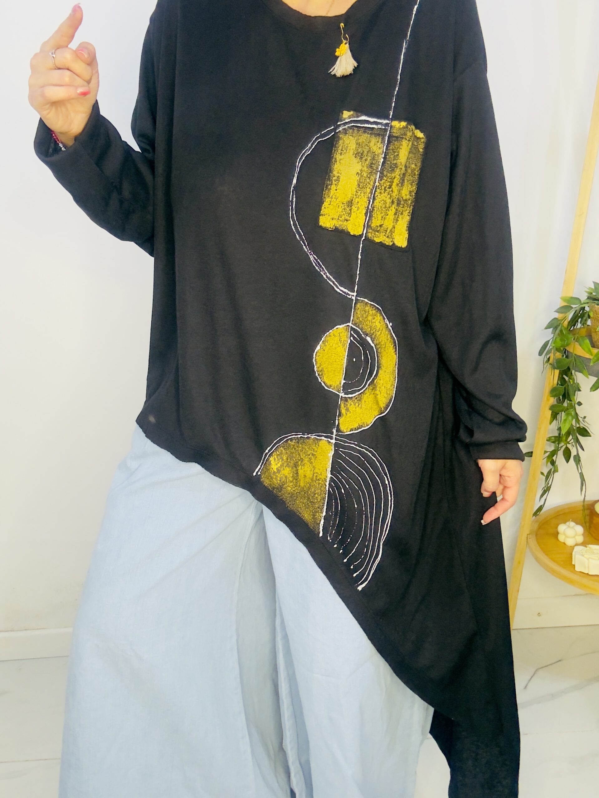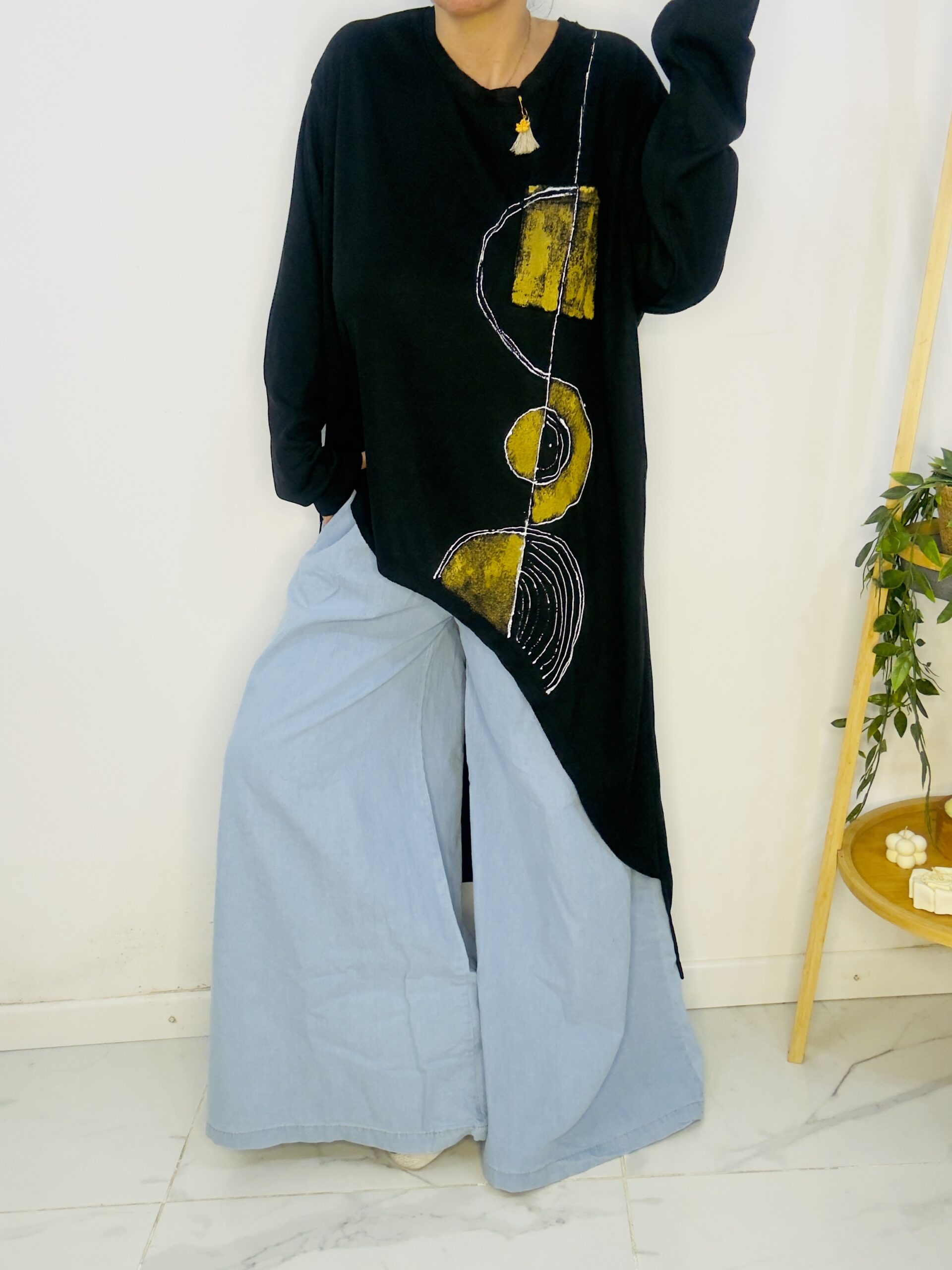 Remeron irregular de lanilla ♥️ es amplia con una calidad de la ostia 🥰♥️ no se arruga!! Es súper original amplia y no marca nada y adaptandose a diferentes cuerpos de manera perfecta🤩 como la desees acomodar ♥️ !! Hablamos sobre su hermosa pintura a mano Porq realmente termina de coronar el modelito con un detalle súper estético que te permite combinarla con varias opciones 🪐Si bien es talle único es grandecita! Ósea se adapta a dif cuerpos!🔥🔥