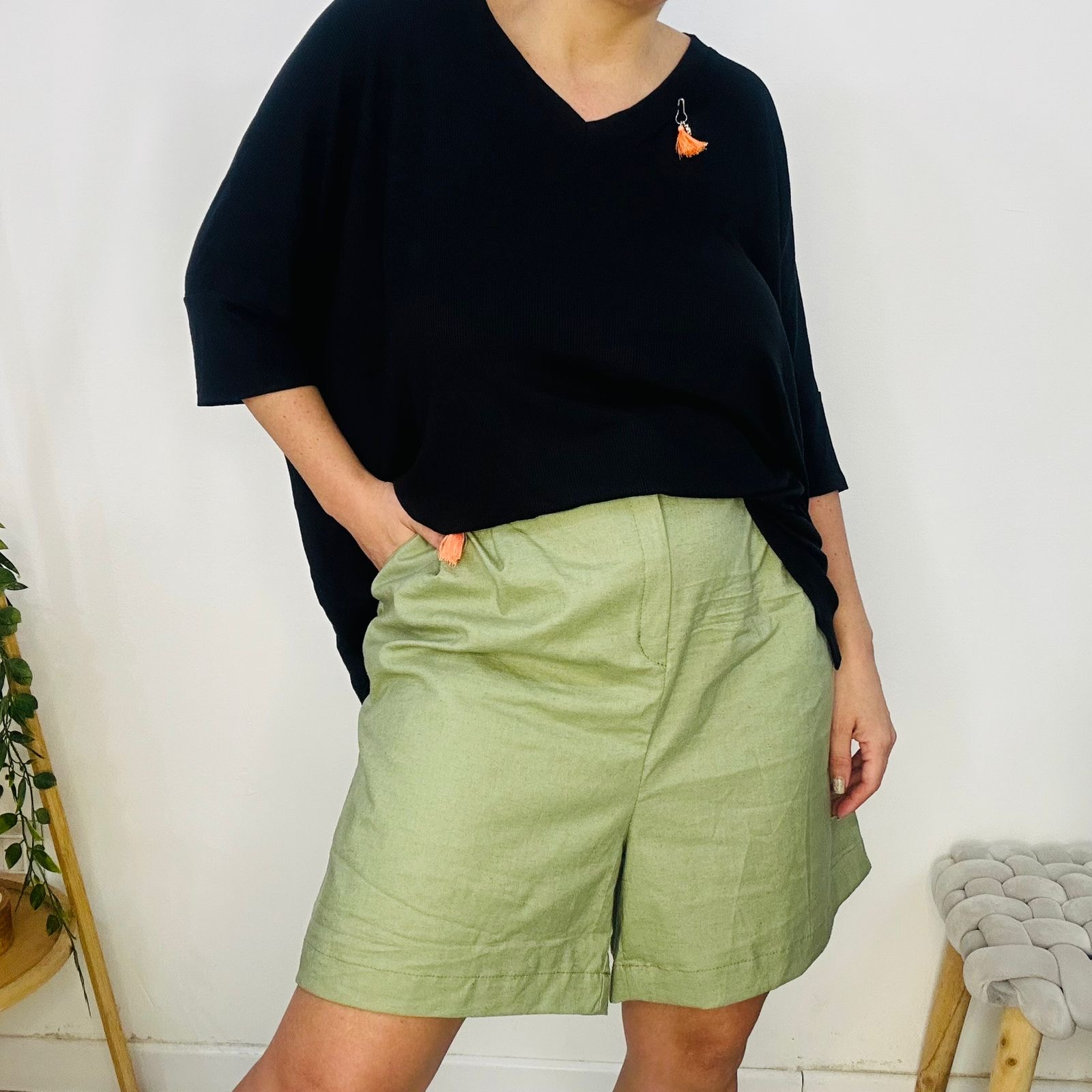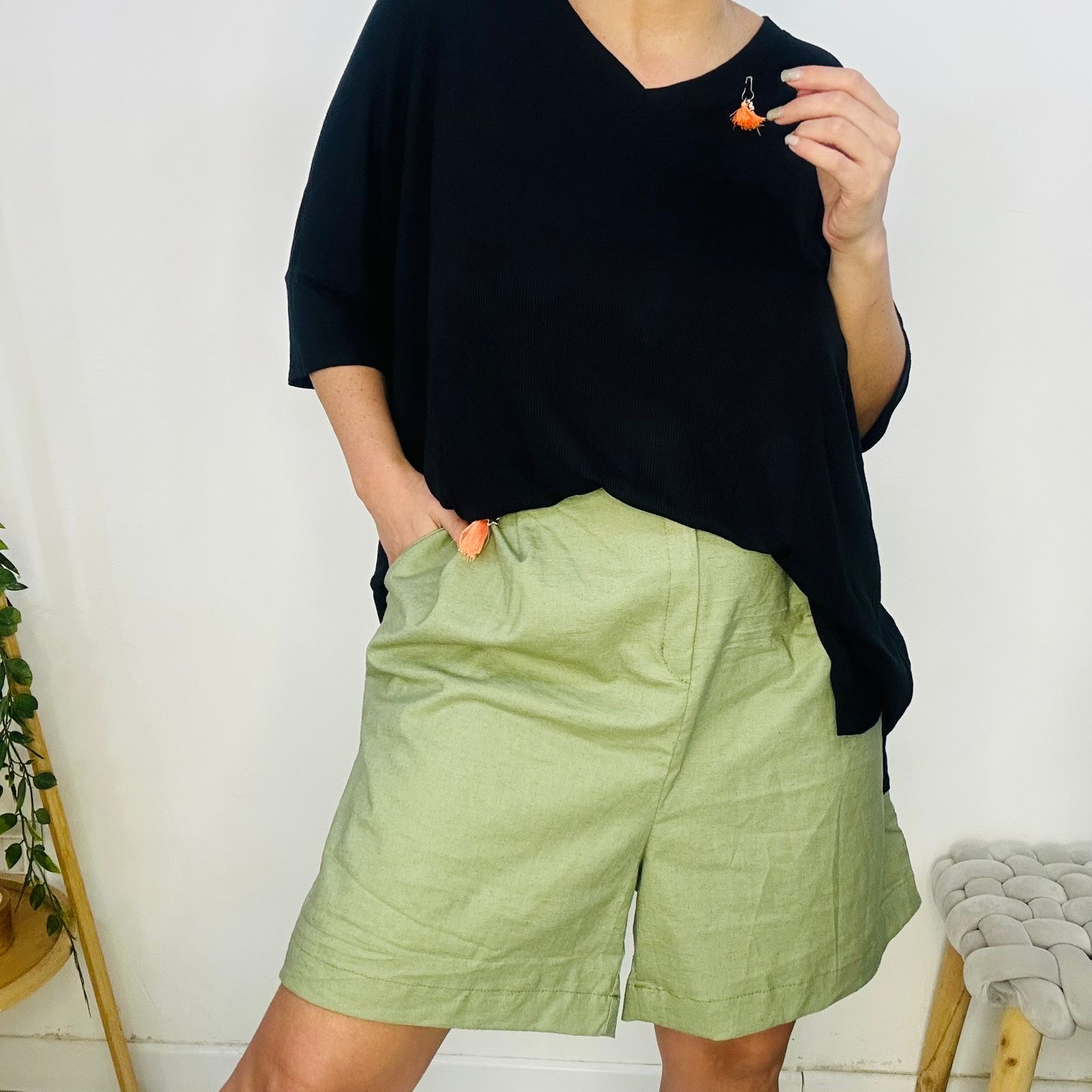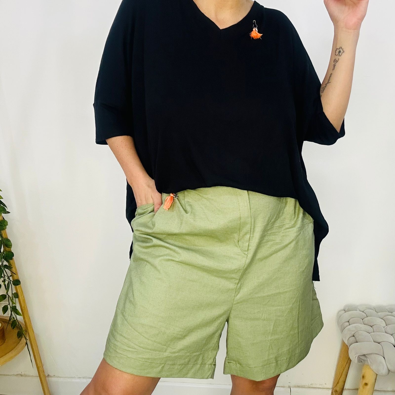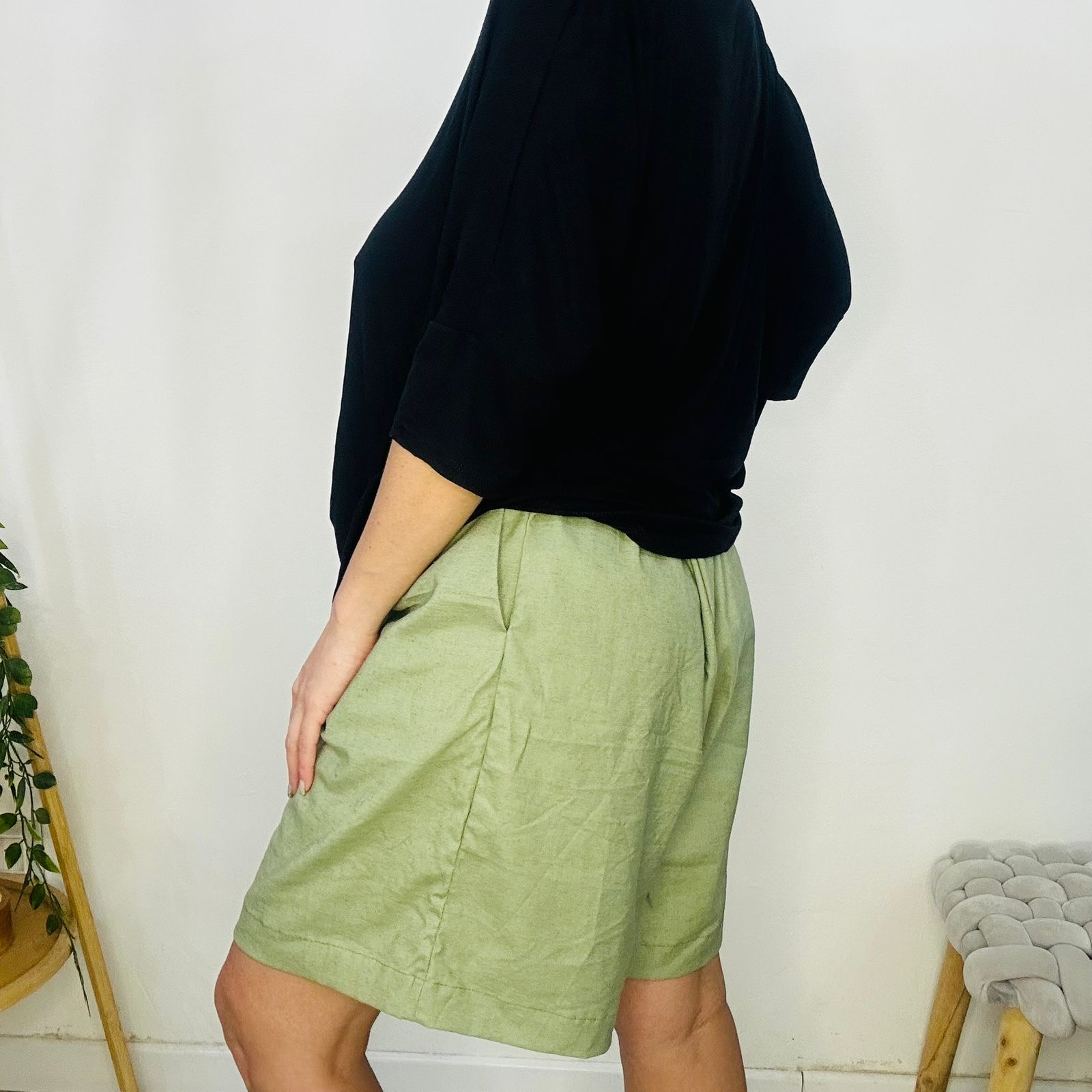 short de lino elasTizado 😍🥰súper amplio con una caida que la rompe 🤍🤍🤍 🤍ok son sueltos por ende los talles no son tan Exactos♥️♥️ lo podes hacer monocromo 🤍o mandarle algún color que corte🤍 en liso 🤍 tene en cuenta el Bello detalle de su tela de lino elastizado es lo más 🔥sirve para darle loockete de día y de noche 🙏🏼♥️