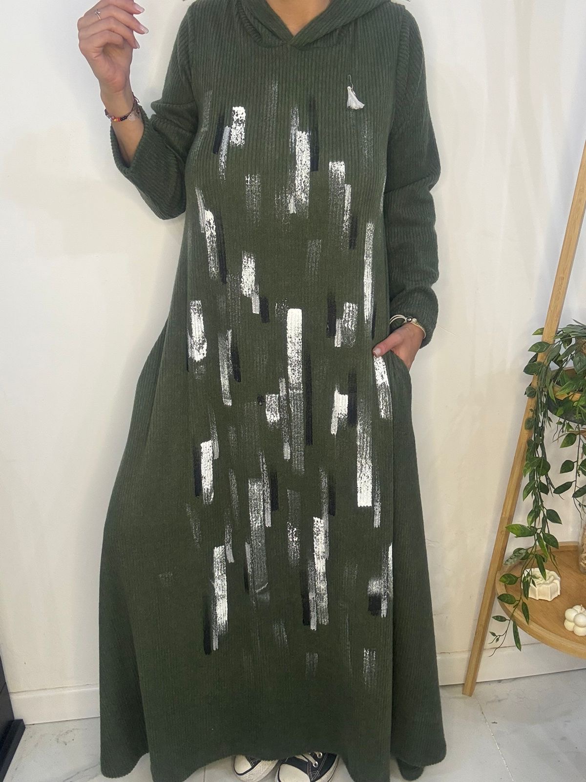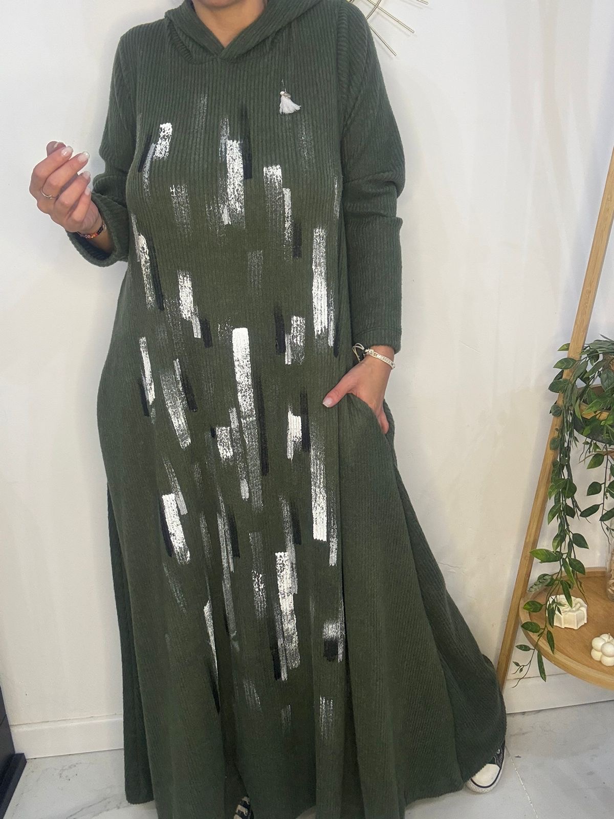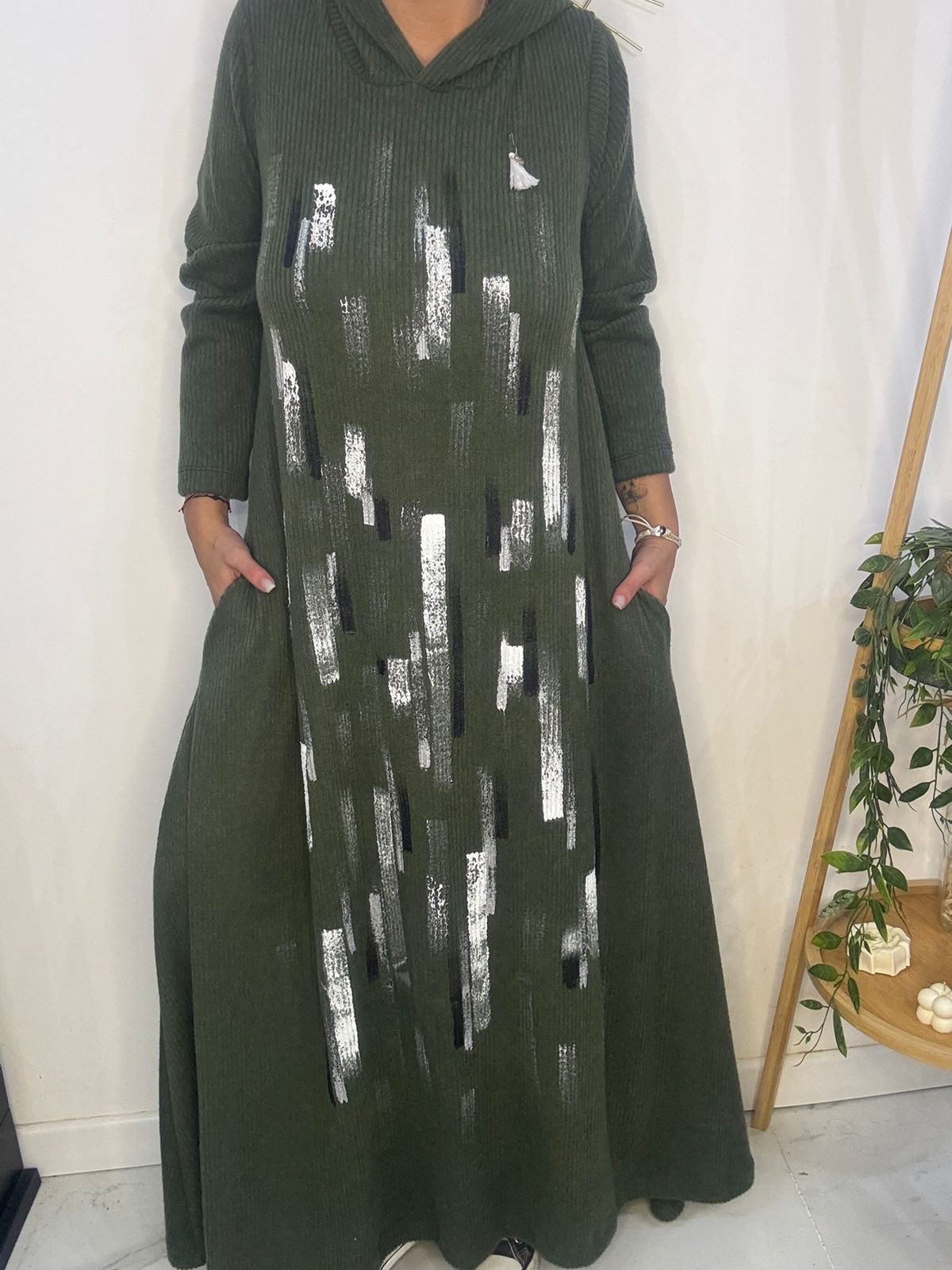 Un bello modelo una onda tremenda con mangas largas    💜 es amplio son sueltos permite adaptarse a más de un talle 🦋🥳Estos vestidos son lo más!!🥳🥳🦋 el detalle artesanal  es moyyyyy lindo ♥️ la pintura queda en cada prenda diferente, ya que se trata de una prenda hecha artesanalmente a mano y no tiene procesos industriales♥️✨