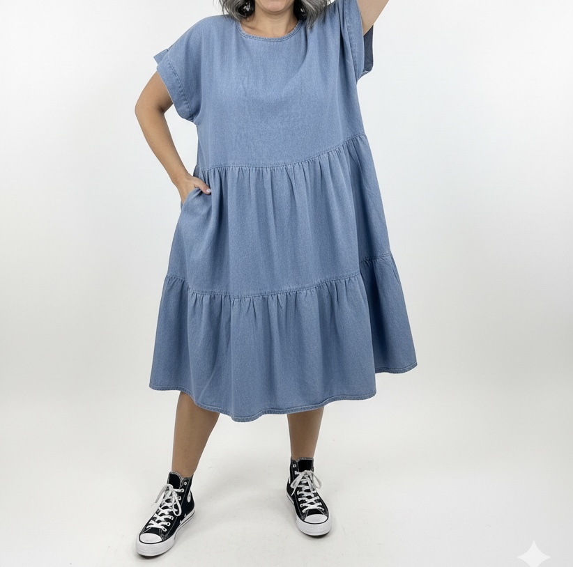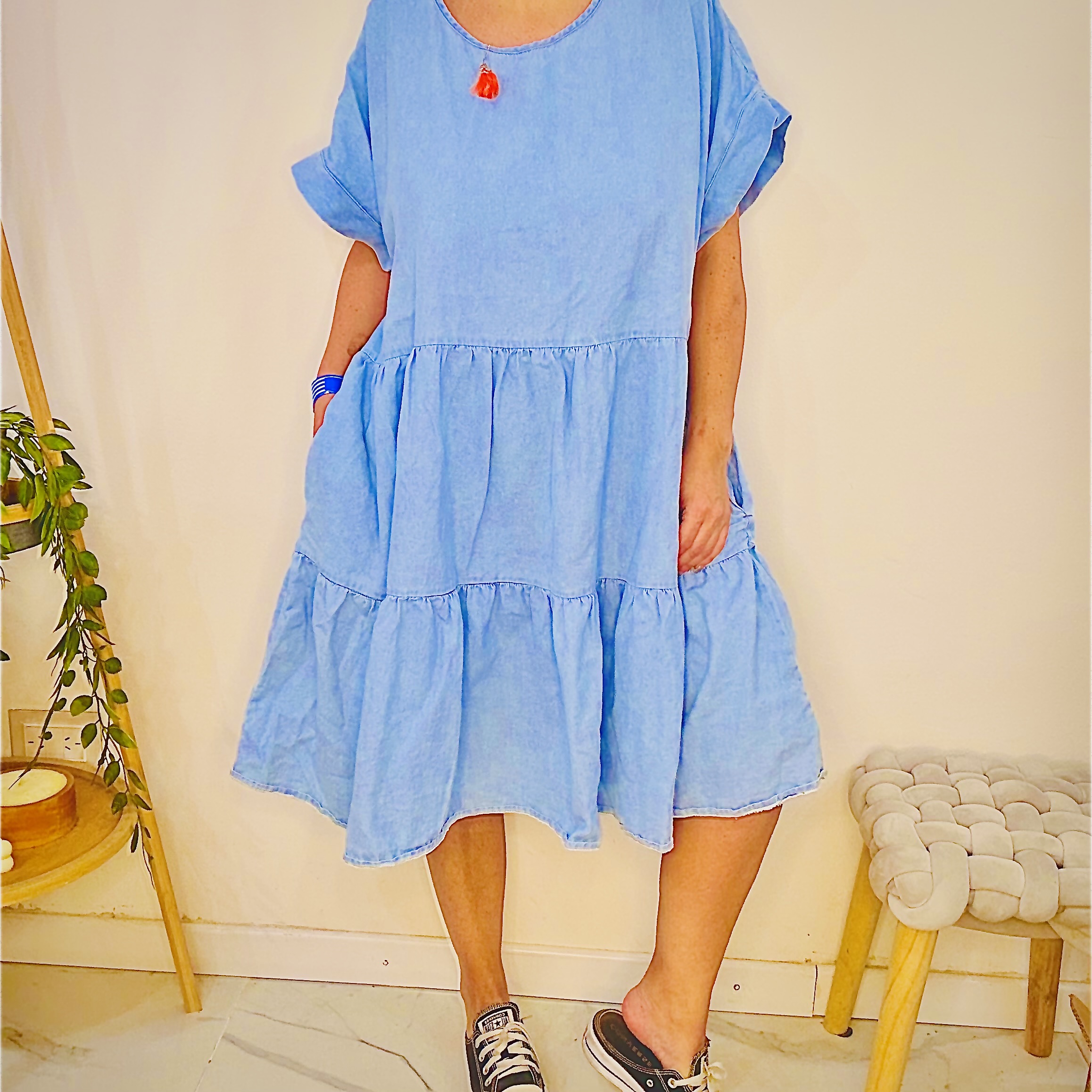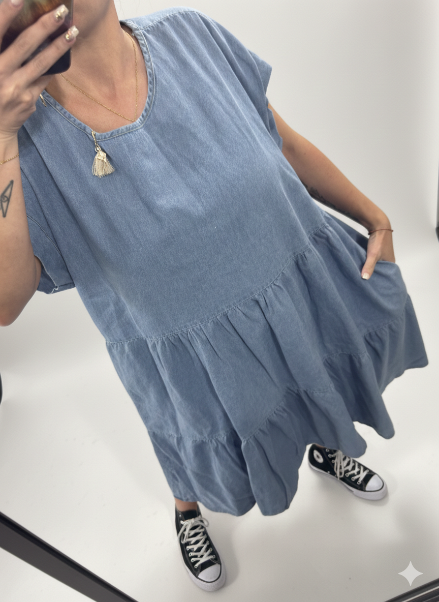 VESTIDITO 👗de jean STOCK LIMITADO 🫢 hermoso y diferente es amplio como se ve en las fotitos✔️ ♥️♥️es súper AMPLIO👉🏻 los talles también lo son ♥️Hablamos de su detalle de los voladitos le dan un Ondon tremendo ♥️🤩 nuestras prendas son de diseño 💛 y sus detalles le dan la idea de prenda única♥️ ya que cada prenda se va con su detalle diferente 💜🥰💜😍 tienen un prendedor que se puede sacar y poner tanto para lavar la prenda como para usarlo en otra que les cope! ♥️😍