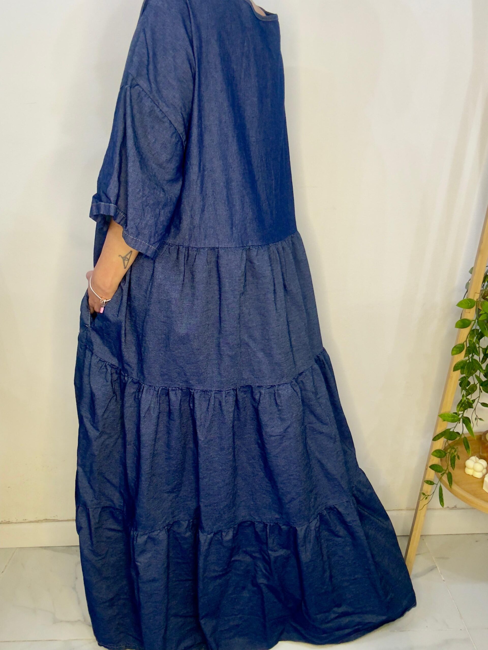 VESTIDITO 👗de jean STOCK LIMITADO 🫢 hermoso y diferente es amplio como se ve en las fotitos✔️ ♥️♥️es súper AMPLIO👉🏻 los talles también lo son ♥️Hablamos de su detalle de los voladitos le dan un Ondon tremendo ♥️🤩 nuestras prendas son de diseño 💛 y sus detalles le dan la idea de prenda única♥️ ya que cada prenda se va con su detalle diferente 💜🥰💜😍 tienen un prendedor s se puede sacar y poner tanto para lavar la prenda como para usarlo en otra que les cope! ♥️😍